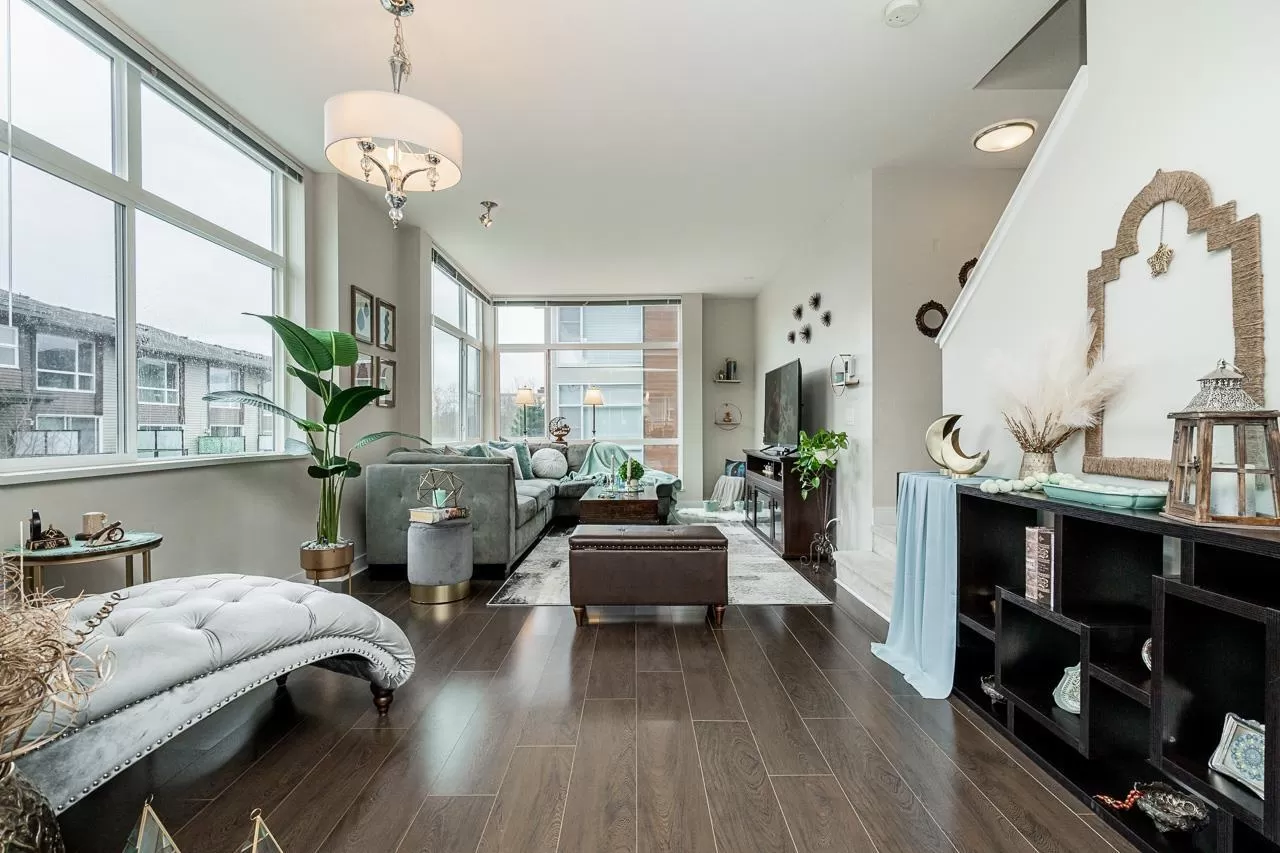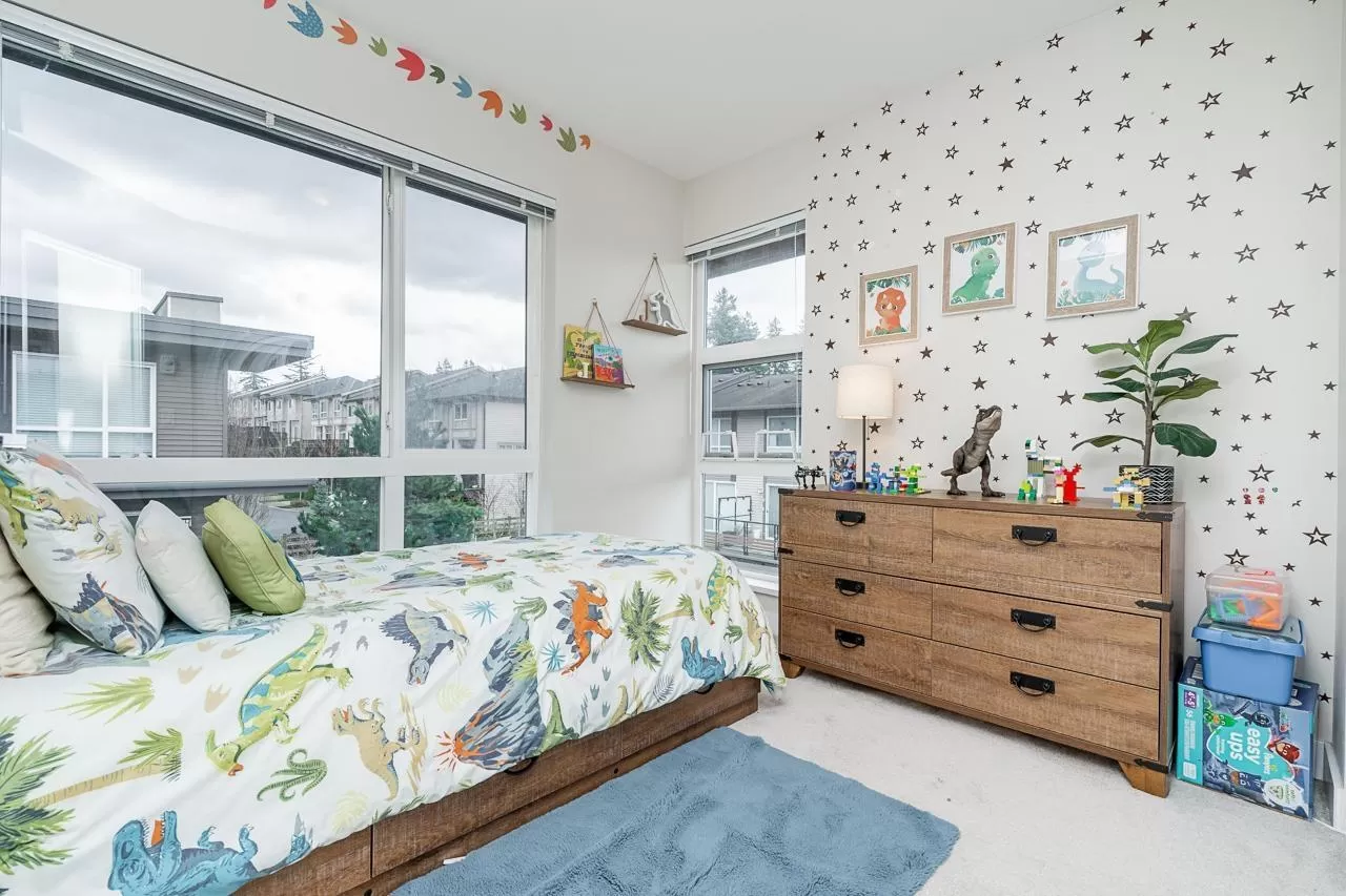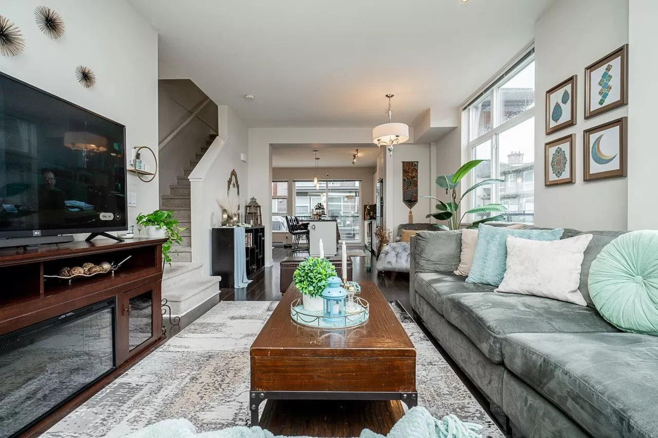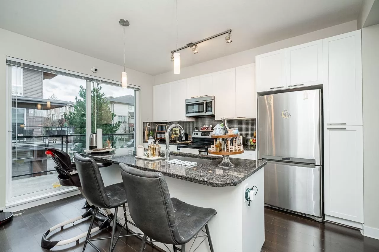The Breeze by Adera, a Georgie Award winning complex, centrally located in Grandview Corners! Walking distance to everything including shops, restaurants, recreation and schools. This well kept CORNER UNIT features an EXTRA LARGE balcony for your outdoor use. Very functional floorplan with one bedroom or office and full bathroom on ground floor level. Sunshine bright open concept main floor with 9' ceilings and oversized windows. Spacious kitchen with quartz counter and sit up bar, stainless steel appliances. An L shape balcony right off the living room. Upper level has one primary bedroom with ensuite, and two more bedrooms plus a full bathroom. The Breeze's West Coast Club features great amenities including a gym, yoga studio, entertainment room and sauna. (id:27476)