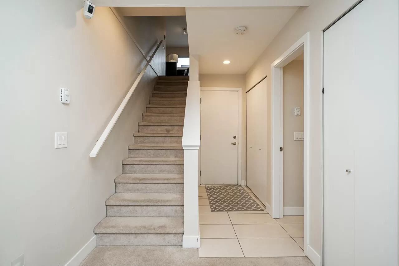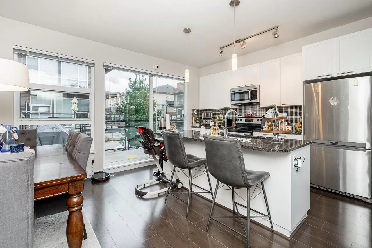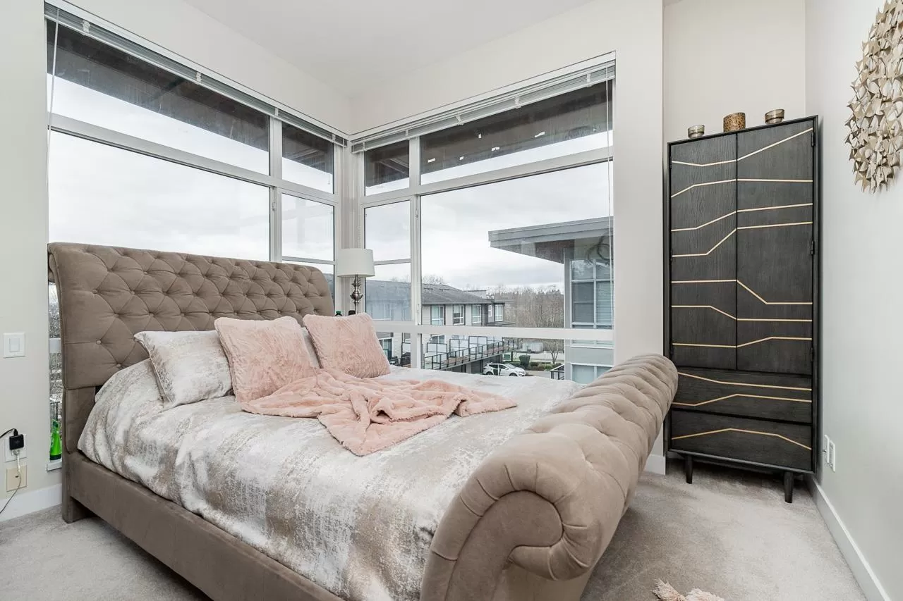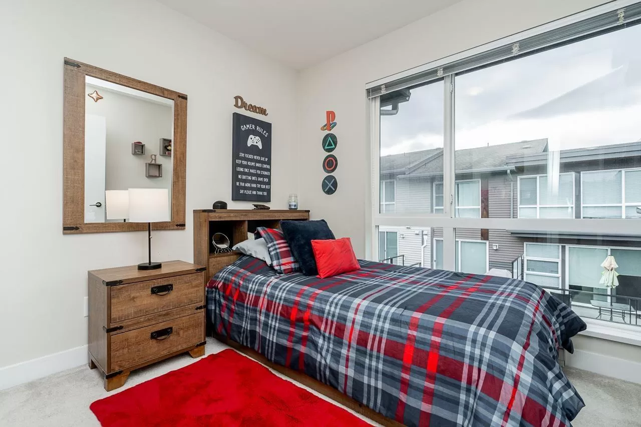 The Breeze by Adera, a Georgie Award winning complex, centrally located in Grandview Corners! Walking distance to everything including shops, restaurants, recreation and schools. This well kept CORNER UNIT features an EXTRA LARGE balcony for your outdoor use. Very functional floorplan with one bedroom or office and full bathroom on ground floor level. Sunshine bright open concept main floor with 9' ceilings and oversized windows. Spacious kitchen with quartz counter and sit up bar, stainless steel appliances. An L shape balcony right off the living room. Upper level has one primary bedroom with ensuite, and two more bedrooms plus a full bathroom. The Breeze's West Coast Club features great amenities including a gym, yoga studio, entertainment room and sauna. (id:27476)