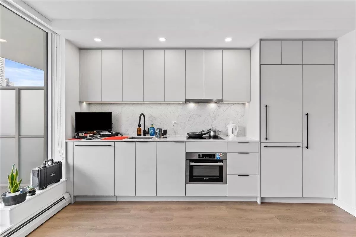 Welcome to Georgetown One by Anthem Properties, a well designed master planned community located in the heart of Surrey City Centre. This spacious studio with a functional layout to maximize space and natural light. It offers a modern kitchen with quartz counters & integrated European appliances, a convenient built-in murphy bed, roller blinds throughout and a spacious 101 sqft balcony with expansive city mountain views, pet friendly, rental allowed.This impressive new building offers indoor/outdoor amenity space which includes lounge area, theatre, gym, study room, guest suite, social lounge and concierge (Mon-Fri,9-5). Steps to Skytrain, public transit, shopping, restaurants, SFU campus and all your desired amenities. (id:27476)