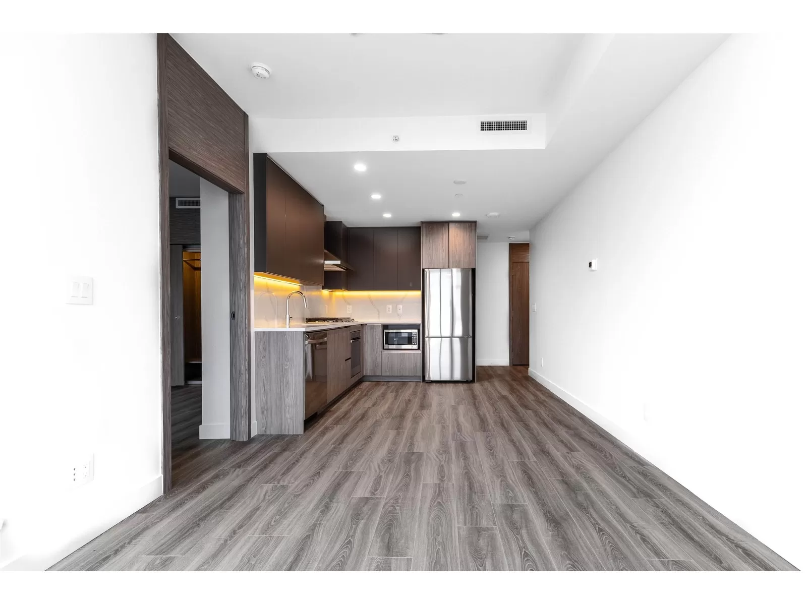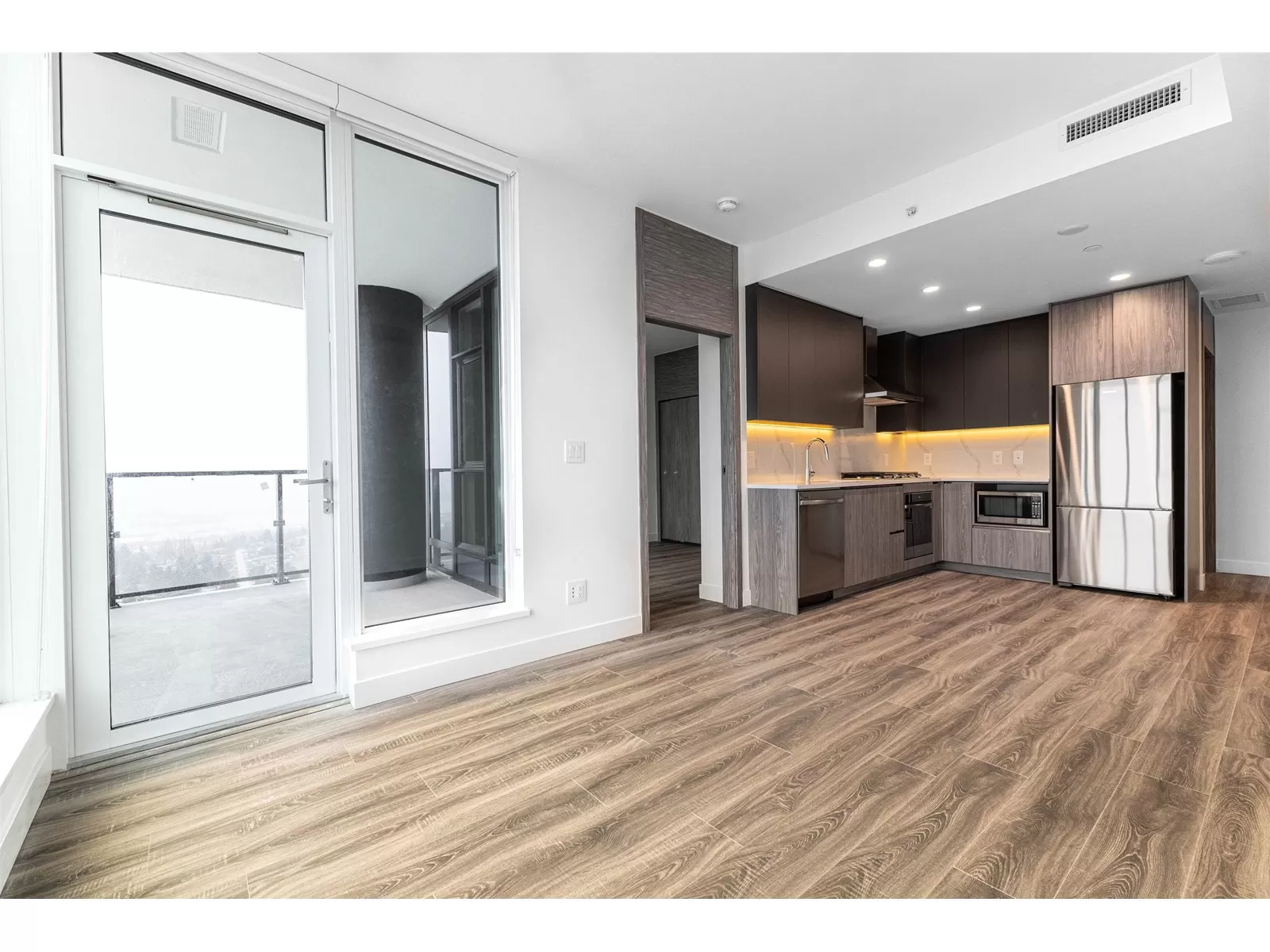 BRAND NEW spacious 2 bedroom 2 bathroom at The Grand, King George city center. Beautiful mountain, valley and city panoramic views. Furnished with GAS cooktop, Samsung washer/dryer, stainless steel appliances and modern finishes. Building has Air Conditioning and 24 hour Concierge Service, gated parking with EV charging option, and bike storage. Luxury living with 23,000 sqft space of indoor/outdoor amenities, offering outdoor garden, yoga & dance studio, fitness center, office space, games room, BBQ and kids play area. Easy access to the highways and bridges. Gateway Skytrain Station is about 4 minute walk and within few blocks of the building. (id:27476)