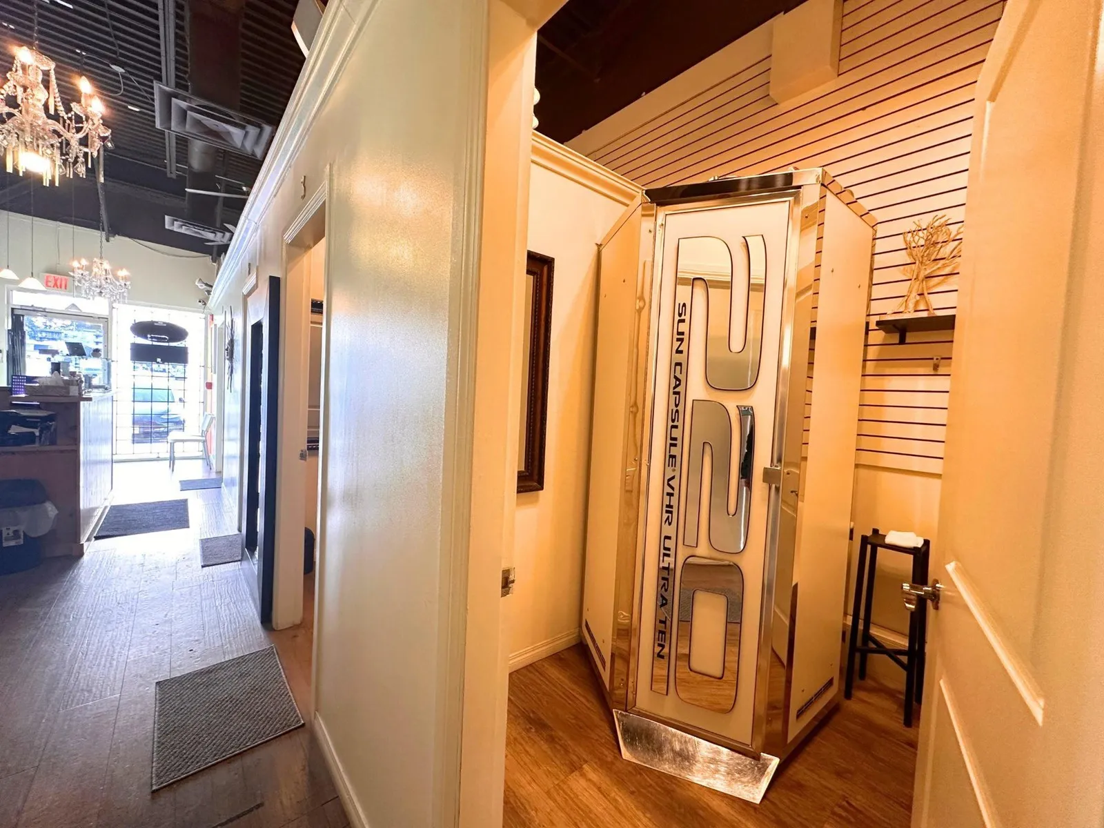 *Showing by appointment only, do not disturb staff.* Profitable Tanning & Spa Business for Sale! Located in the vibrant Peninsula Village Shopping Centre. Enjoys lots of foot traffic. 910 sqft. Includes 4 tanning beds and 4 spa rooms. There is also room to add nail services for extra profit. Services offered include laser hair removal, permanent makeup, tanning, waxing, and skincare. A computerized system streamlines operations, allowing the 5 staff members to focus on excellent customer service. With ample parking and full training and support from the current owner, this is a great opportunity for anyone wanting to enter the spa industry or expand their business. Please contact for more information today! (id:27476)