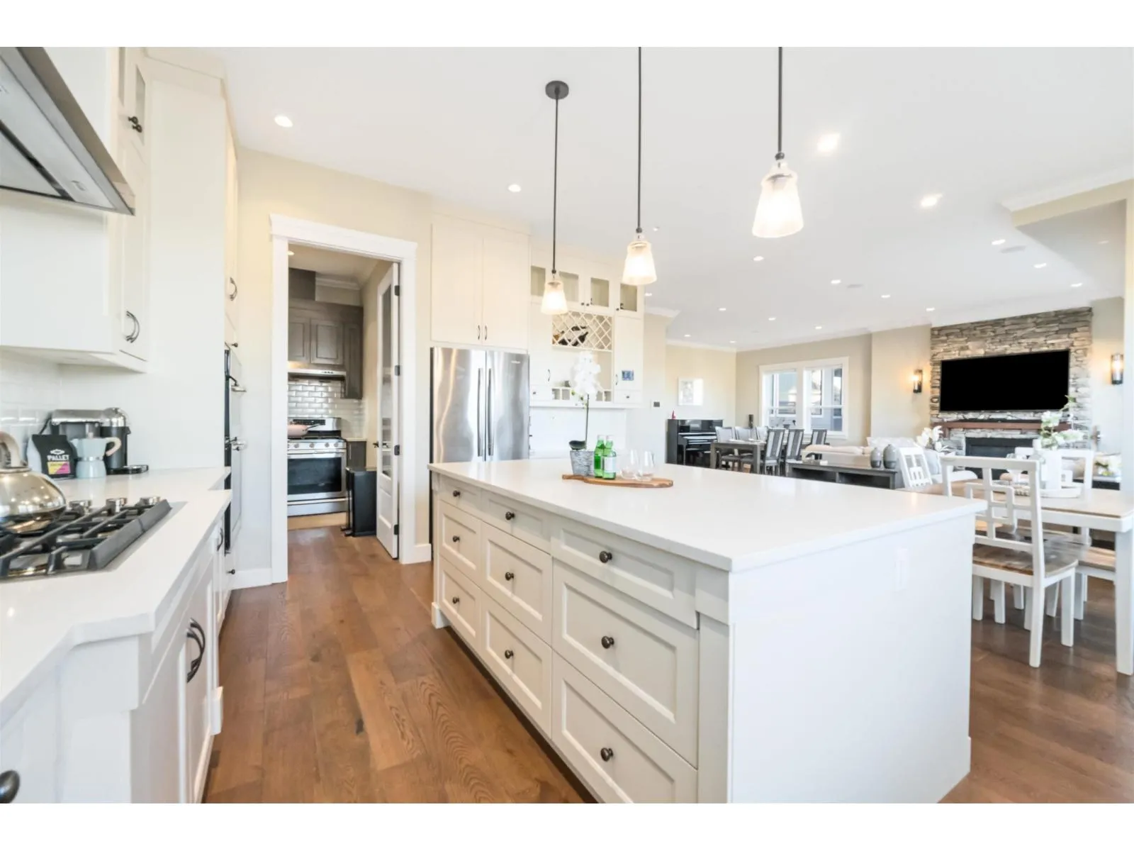Gorgeous home w/breathtaking Mountain valley view, quality-built w/2-5-10 warranty, just steps away from school catchment; located on a quiet street of Grandview heights. Home features: 2-storey with basement, 6 bedroom&5 bathroom, large lot 6,259 SF w/beautiful designing interior, extensive crown moulding, millworks and hardwood floor though out, wok kitchen,dream gourmet kitchen with stainless steel appliances & eating area open to rear large BBQ covered deck; perfect for entertaining. Upper: 4 bedroom and master bedroom with valley views & 5 pieces ensuite. Basement: home theatre, 2-bedroom suite with separate entrance.Only minutes to all amenities: Morgan Crossing shopping, restaurants, Morgan Creek Golf Course, and convenient access to Vancouver via Hwy 99. (id:27476)