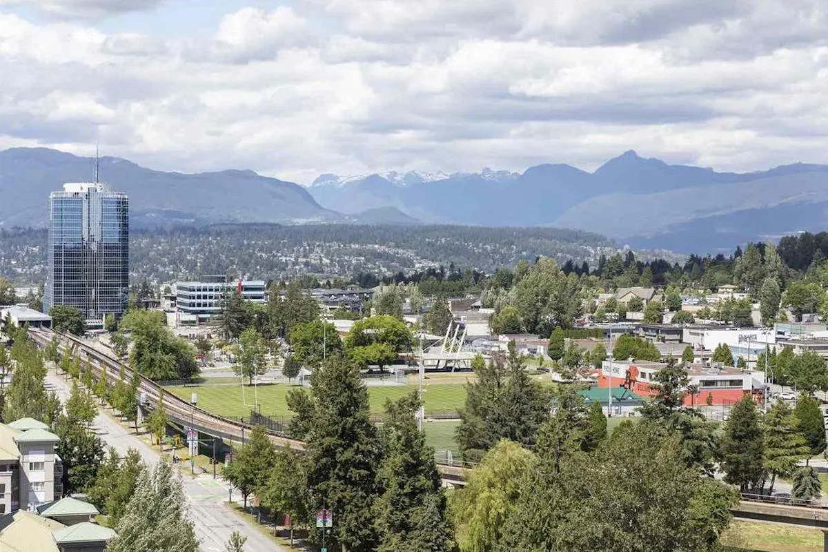 Stunning Views & Prime Location! Welcome to D'Corize, where style meets convenience! This bright and airy 1-bedroom. Features floor-to-ceiling windows, soaring 9ft ceilings, sleek laminate flooring, and stainless steel appliances, all designed to complement an open-concept layout. Enjoy breathtaking North Shore Mountain views and stunning West-facing sunsets from your spacious balcony. This concrete high-rise offers exceptional amenities, including a fitness center, business center, theatre room, library, and an entertainment lounge with a full kitchen, pool table, & fireside seating. Located just steps from Central City Mall, SFU Surrey, top cafes, shopping, and dining, plus effortless access to Surrey Central SkyTrain, connecting you to the entire Metro Vancouver region. Open House, Sun, Mar 30th, 2-4 PM. (id:27476)