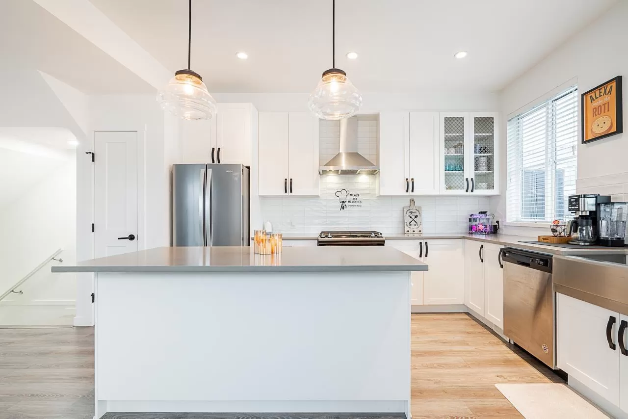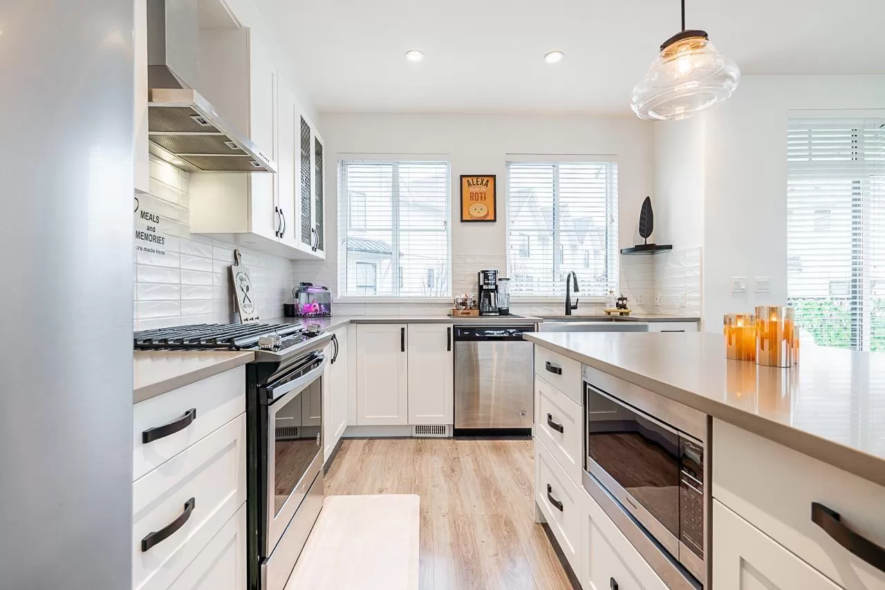 CORNER UNIT !!! Welcome to Crimson conveniently located in the heart of Cloverdale Village! This modern 4 Bedroom townhome features - DOUBLE WIDE garage, FORCED AIR heating, natural GAS stove. Beautiful open concept featuring island kitchen with large pantry and window over kitchen sink. Ample sunlight coming in from windows on 3 sides of the house. The SPACIOUS MASTER BEDROOM includes a full walk-in closet and deluxe master ensuite. BONUS - all of the Bedroom Closets have been upgraded. Walking distance to Cloverdale Recreation Center, Brickyard Station Shopping, Athletic & Millennium Parks and multiple schools! Don't miss out on this one! Wont last long. Book your showing now EASY TO SHOW !!! (id:27476)