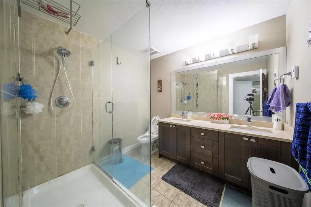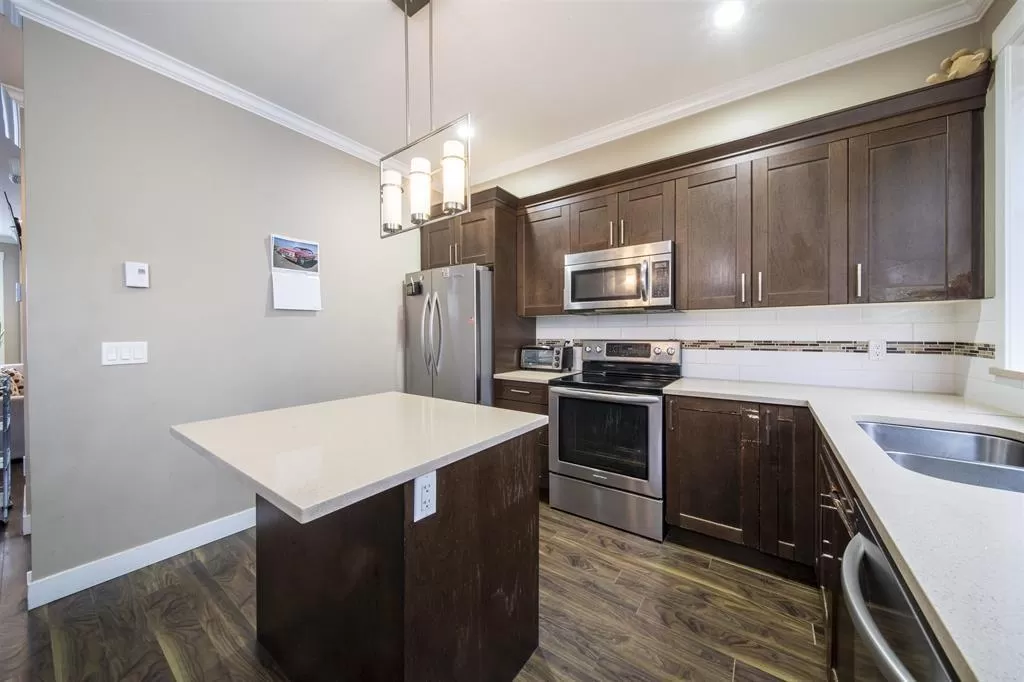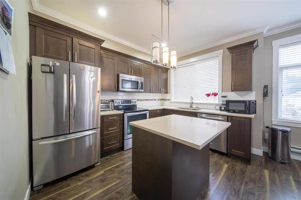 Grand Heights townhouses!!!! Very private location, 21 town homes, 4 bedrooms, side by side double garage. Great plans, 9' ceiling, on main floor, facing east, south and west with lots of natural lights. Plenty of extra street parking for guests & convenient front door access. Quartz countertops, crown mouldings, Maytag stainless steel appliances, bigger backyards, close to bus services, sky train. Private bedroom & bath on lower level is ideal for teens & in-laws, can be mortgage helper with separate entrance. Home is ready to view. Corner unit. (id:27476)