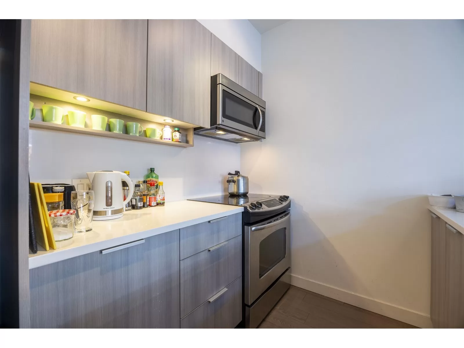Best Location in the core of Surrey center! The stunning 1-Bed +2 Bath loft-style townhouse is now here! Bright nature light flows into room via full-wall glass window. 24ft high ceiling, open gourmet kitchen with quartz counter top and SS appliances. Upstairs bedroom with ensuite bathroom, walk-in closet ,flex space for working and a fine private balcony for relax & extra entrance from patio.24 hrs concierge/security. A modern Gym & social room offer a healthy lifestyle. Most convenient for everything. Step to Skytrain station, shopping mall, SFU, KPU, Holland Park, etc. Perfect for first home buyer and investment. Welcome! (id:27476)