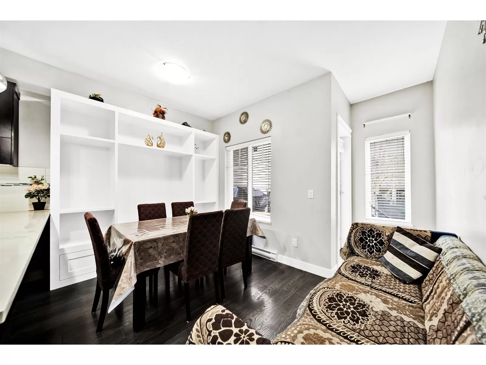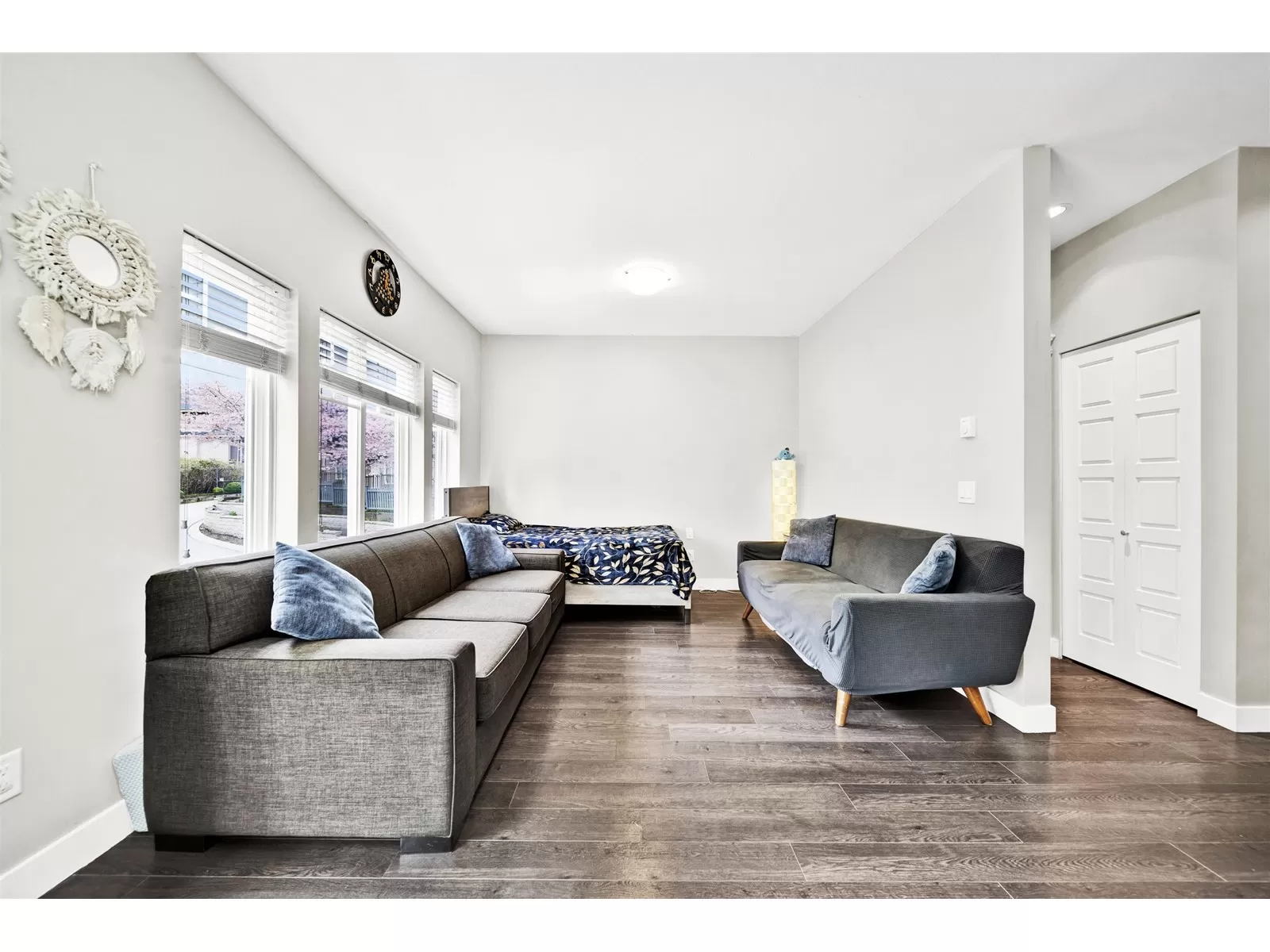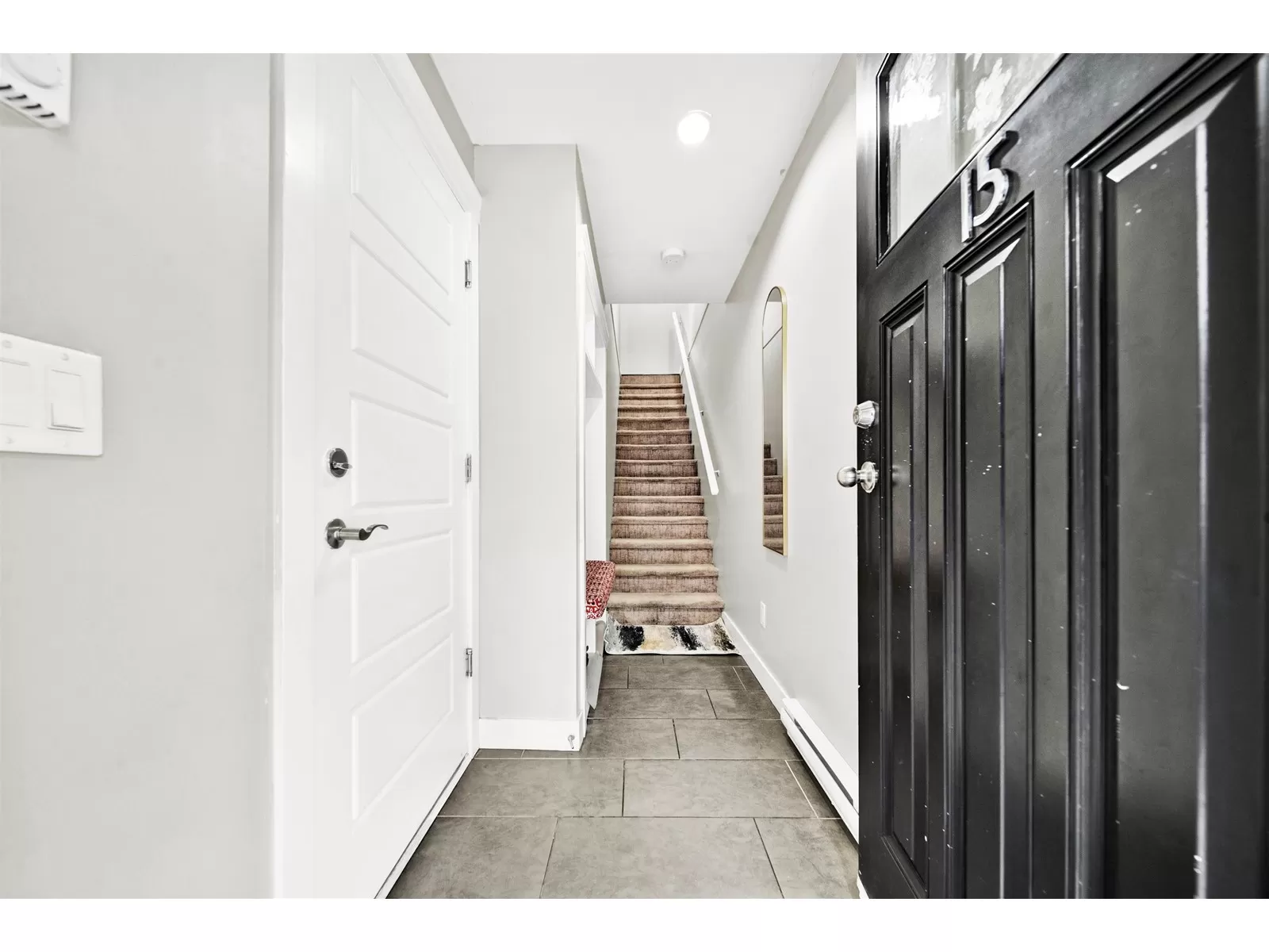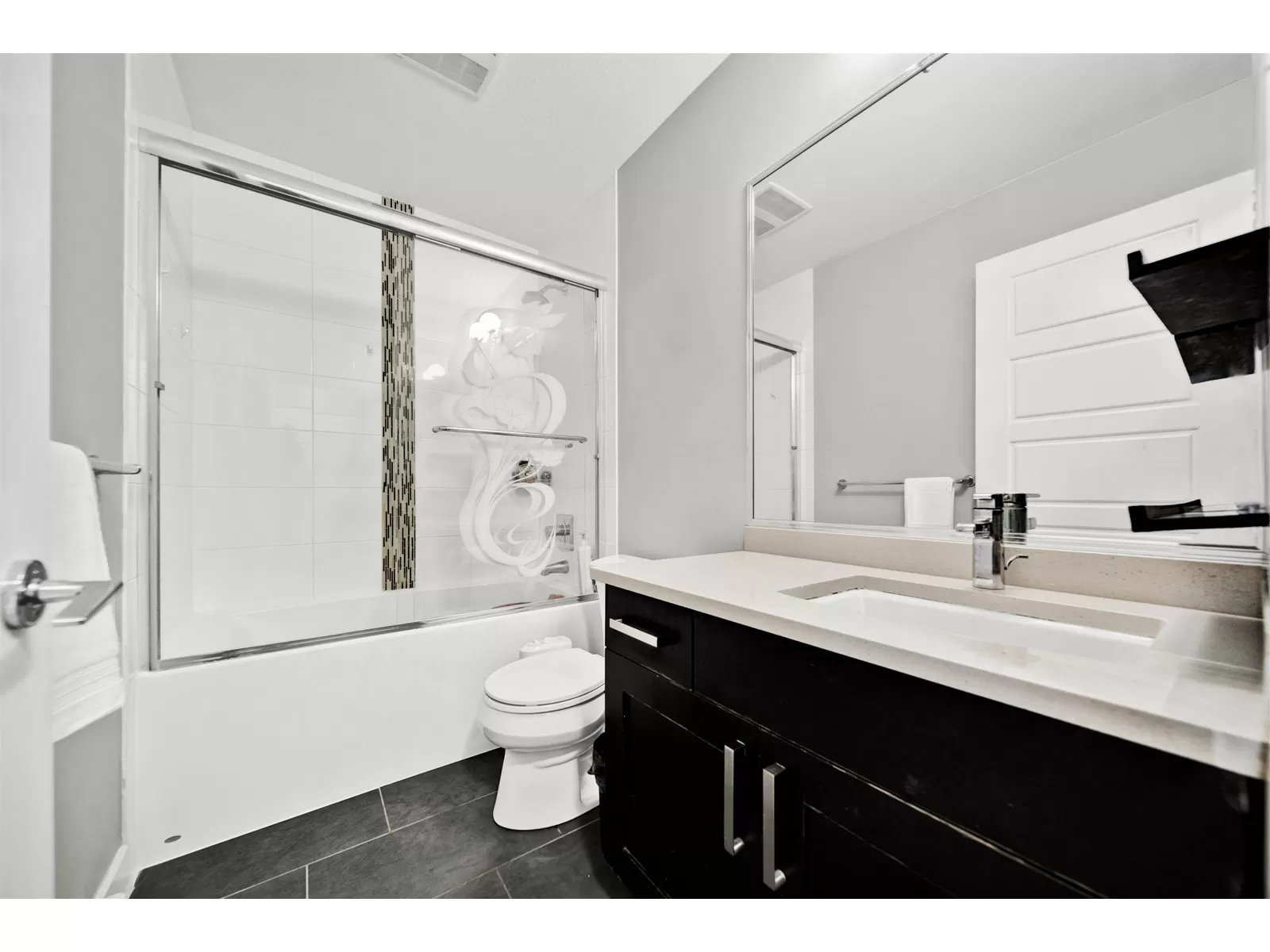 Former show home at Teo by the Creek. This 3 bed / 3 bath townhome faces a protected greenbelt and is situated on the quiet side of the complex. Features include a powder room on the main floor, quartz countertops throughout, soft-close shaker cabinets, stainless steel appliances, and a front-facing balcony. Walk out to a private yard directly from the living room. Freshly painted and well maintained. Convenient location near schools, shopping, transit, and recreation. (id:27476)