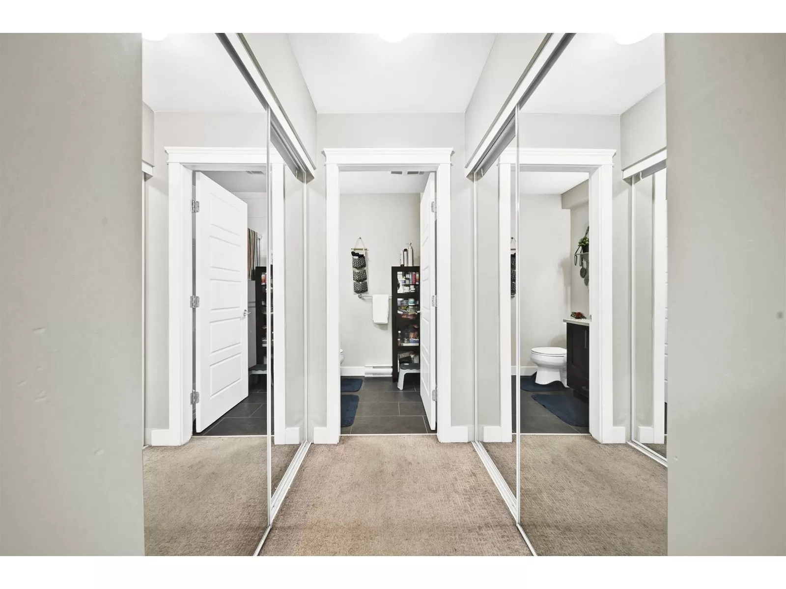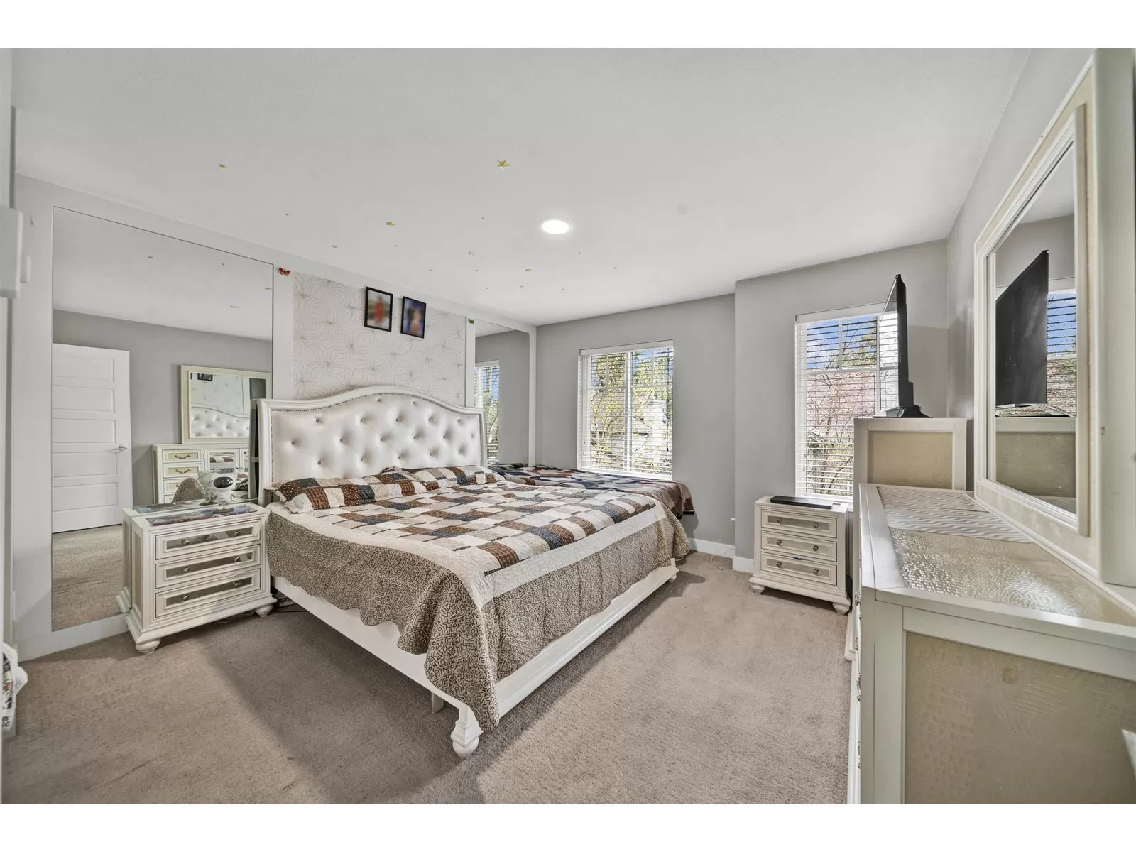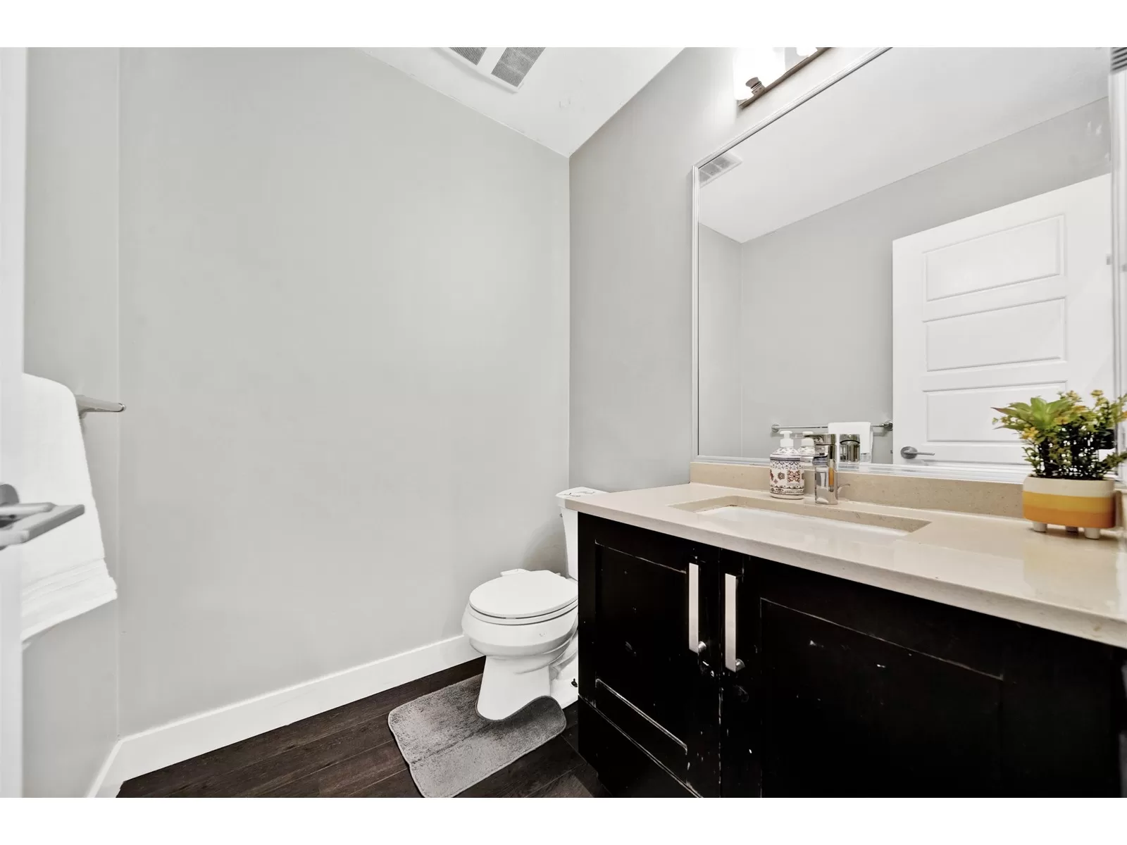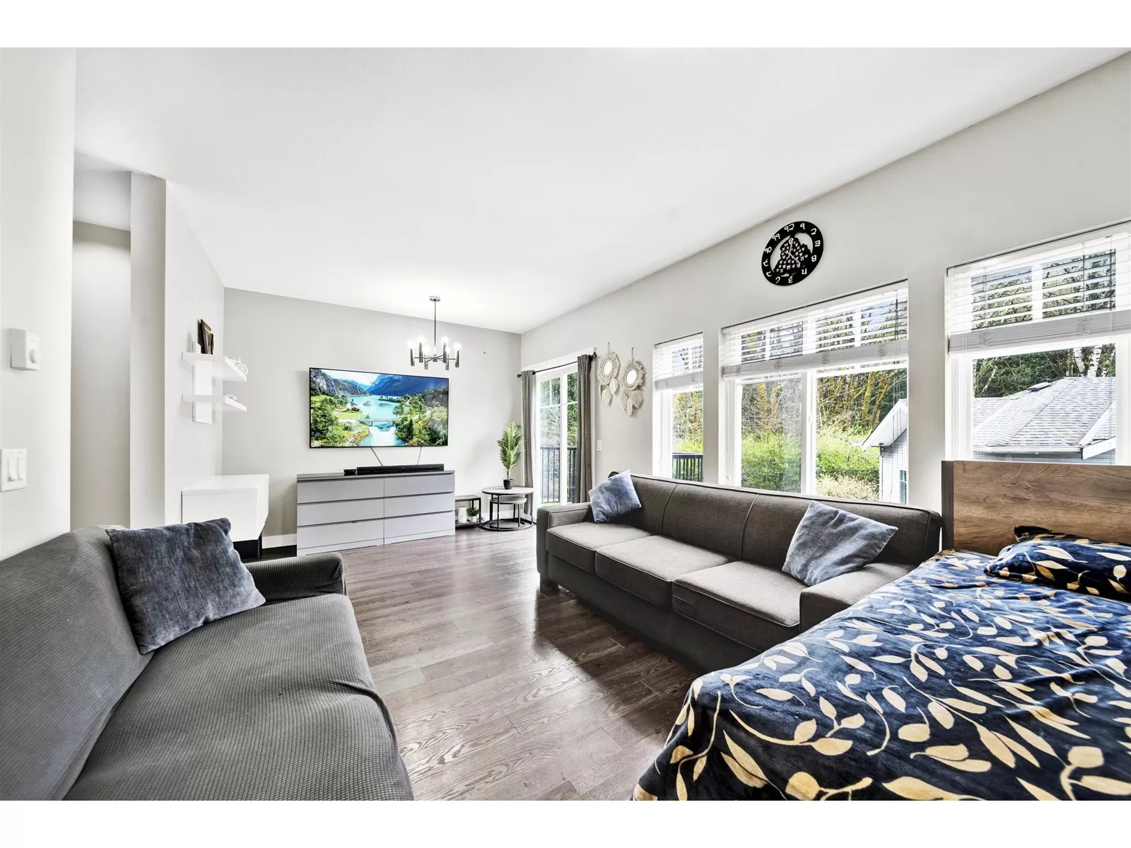 Former show home at Teo by the Creek. This 3 bed / 3 bath townhome faces a protected greenbelt and is situated on the quiet side of the complex. Features include a powder room on the main floor, quartz countertops throughout, soft-close shaker cabinets, stainless steel appliances, and a front-facing balcony. Walk out to a private yard directly from the living room. Freshly painted and well maintained. Convenient location near schools, shopping, transit, and recreation. (id:27476)
