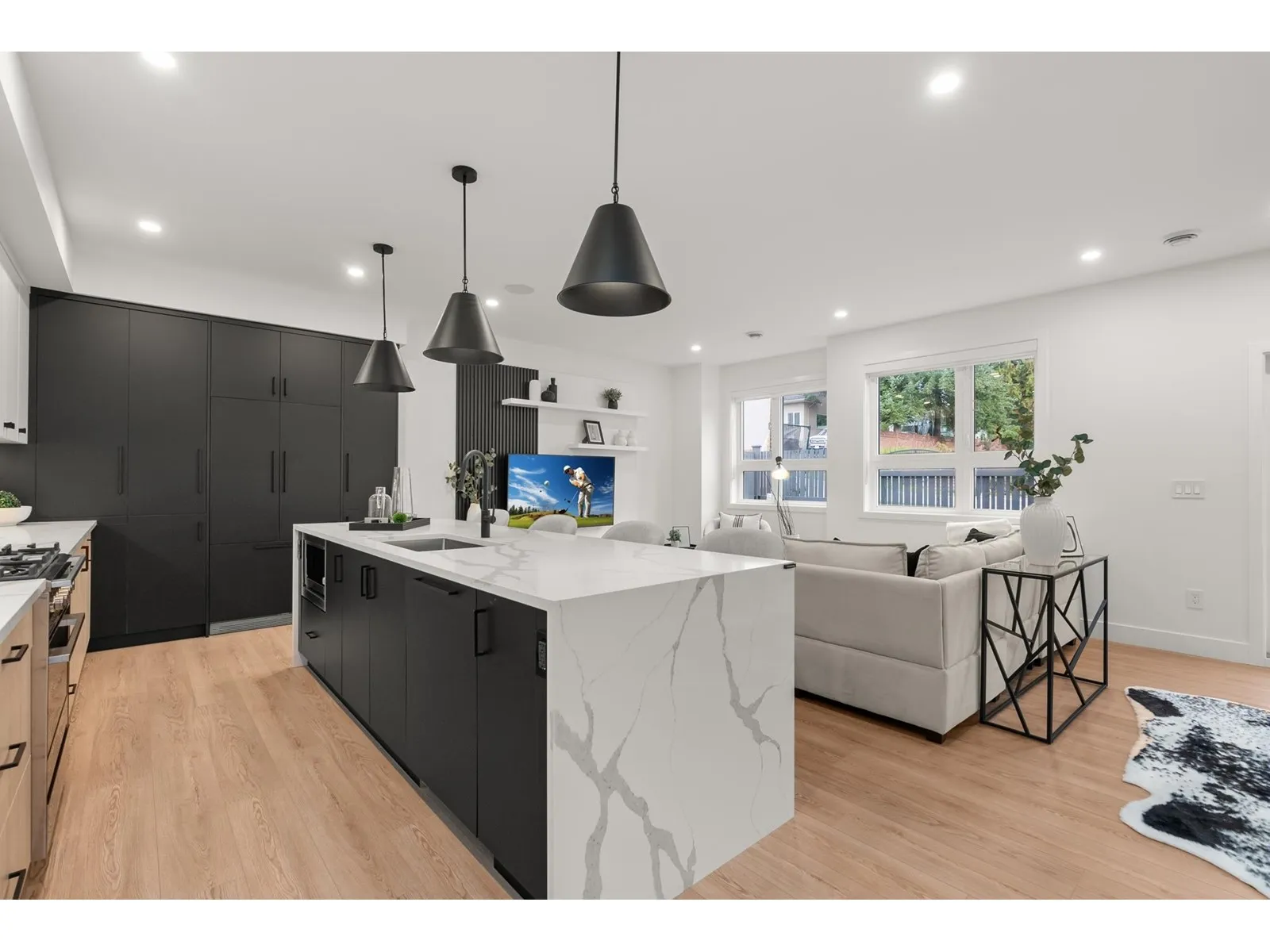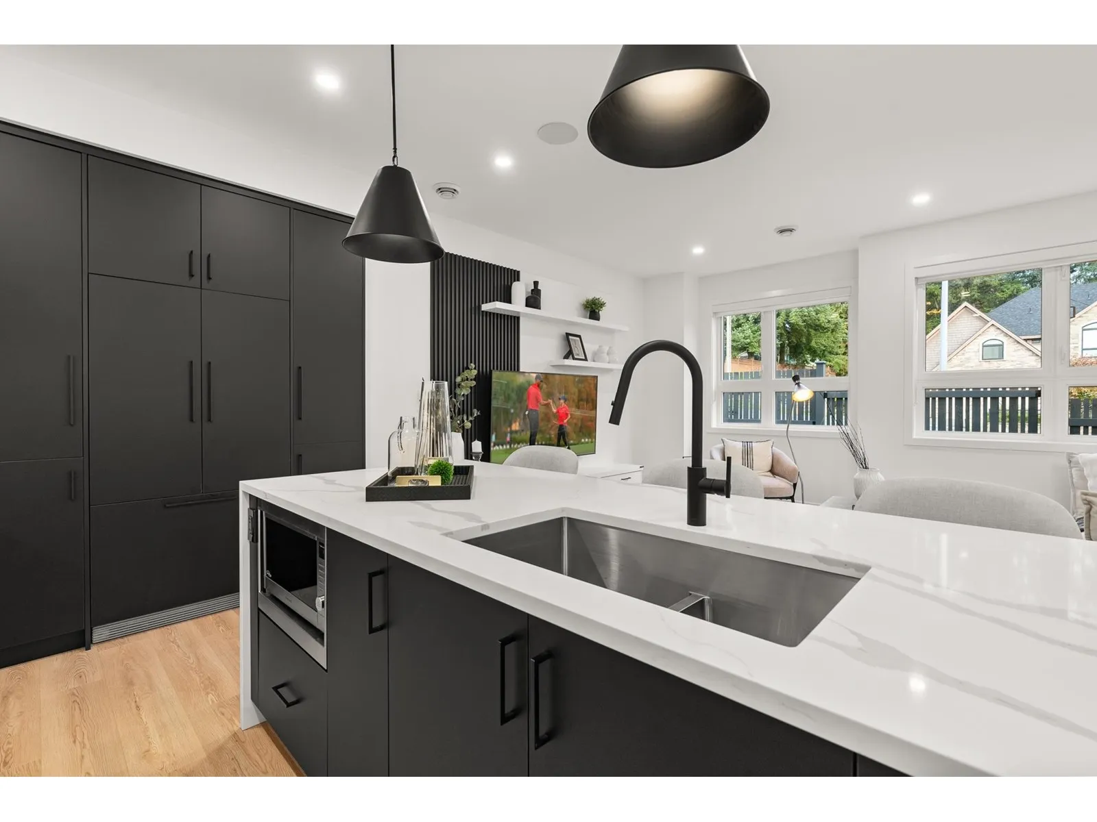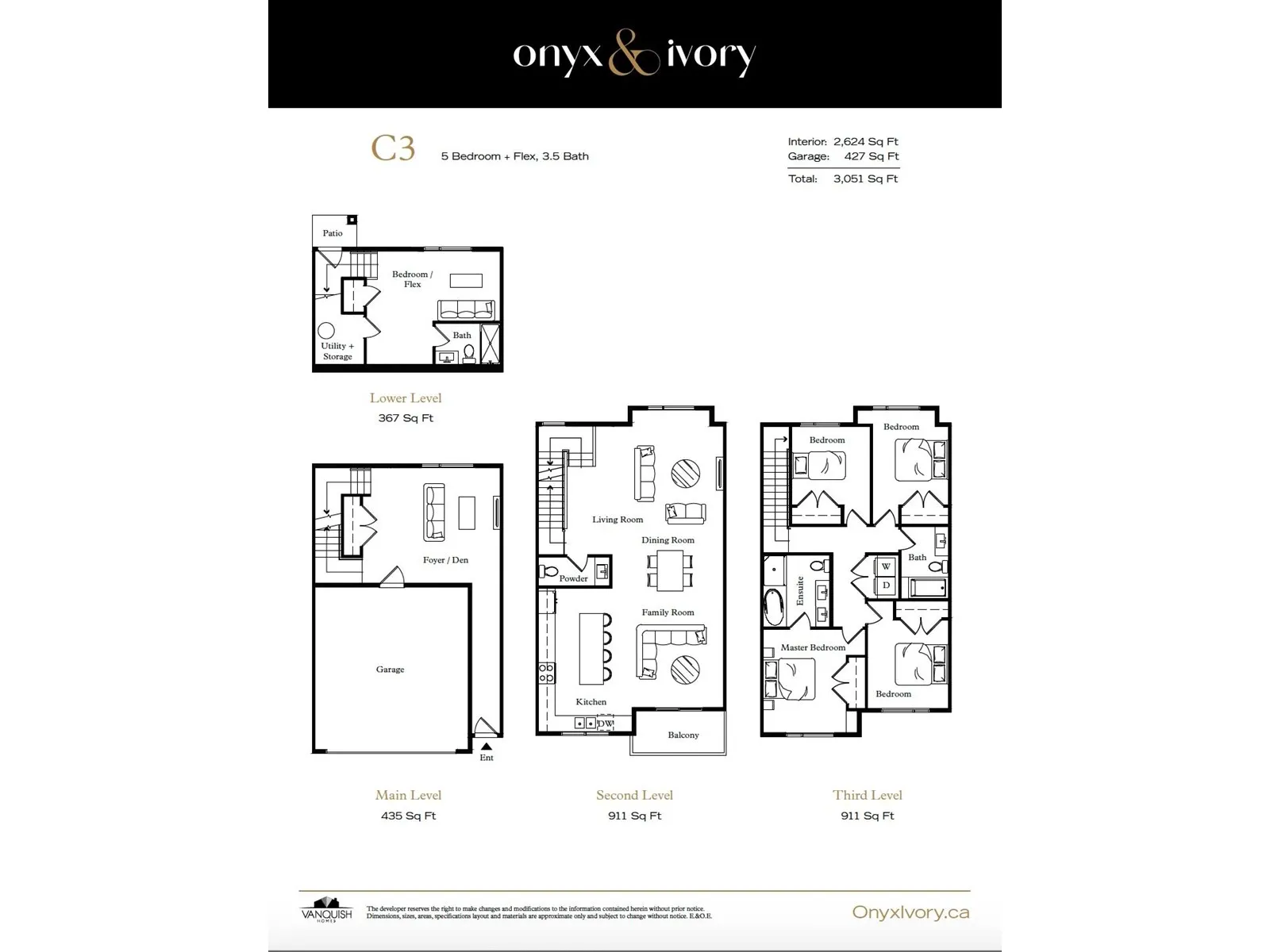 5 bed + flex END townhouse (C3 Plan) with all of the bells and whistles of a detached home! Fenced yard, dbl garage, low strata fees. Onyx & Ivory: Set in a prestigious neighbourhood, surrounded by greenery. High-end finishes incl: European appliances, gas stove, large island w/ waterfall, quartz counters/backsplash, LED pot lights, designer light fixtures & e-poxy in garage. Bed + bath in bsmt. Flex on main flr. Open kitchen/living/dining & powder room + balcony on 2nd level. Upstairs you have 4 beds, 2 baths, incl a stunning ensuite w/ duel sinks, walk-in-closet + side-by-side laundry. Wide-plank oak laminate throughout, forced air heating, hot water on demand + central A/C & millwork incl. Est. Completion is early 2026. Photos are of A2 plan. SHOW HOME OPEN DAILY 12-5PM (except Fridays). PHASE 2 NOW SELLING! (id:27476)