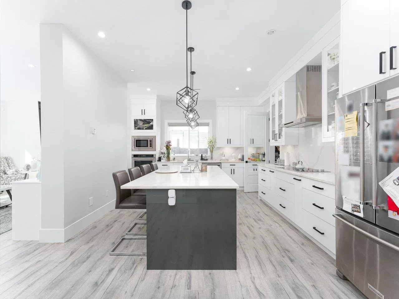 Stunning custom built house on corner 7203 sq.ft lot, side lane garage access, full landscaped and fenced. Main floor features bright and open concept, huge designer kitchen with top class appliances, spice kitchen, expansive glass railing and frosted glass on sundeck. 2 bdrm legal suite as mortgage helper, custom cabinets in bdrms, all bdrms have their own large deck to enjoy. Central air conditioning, 2/5/10 home warranty, close to school, bus, shipping and skytrain. Call for your private viewing. Priced to Sell. (id:27476)