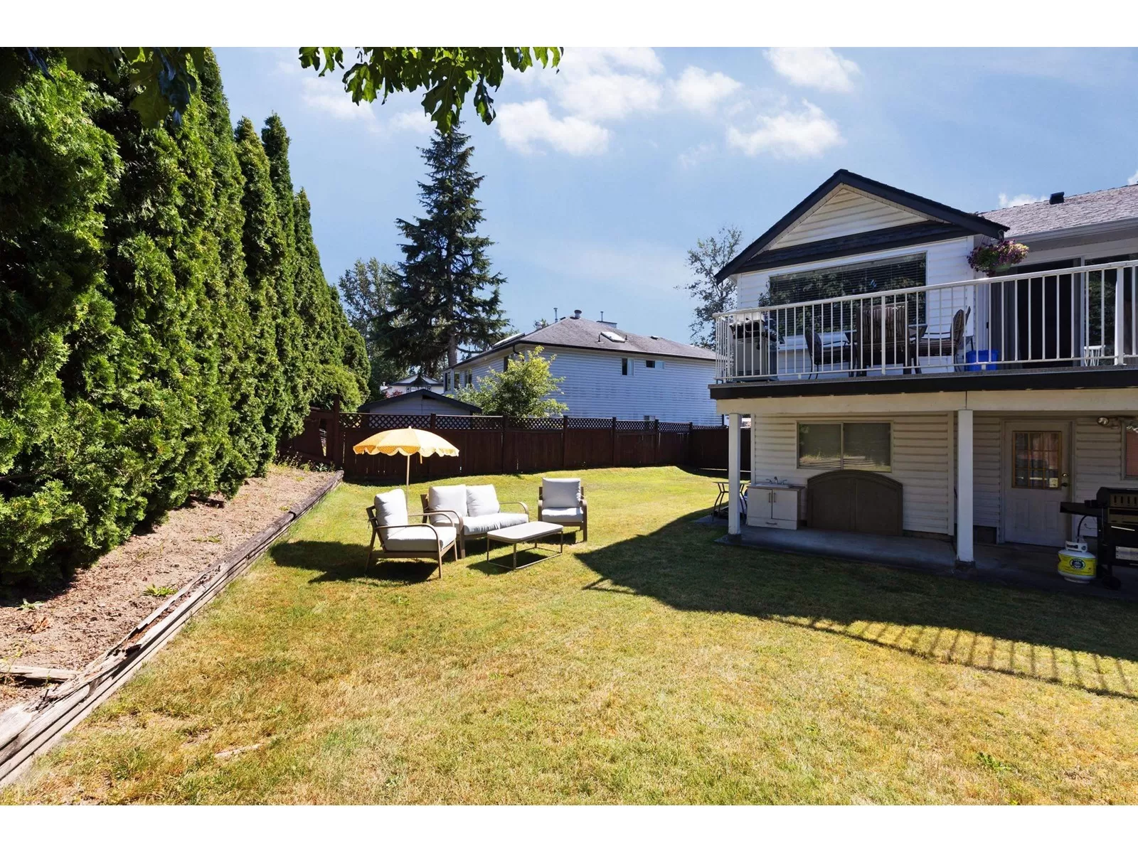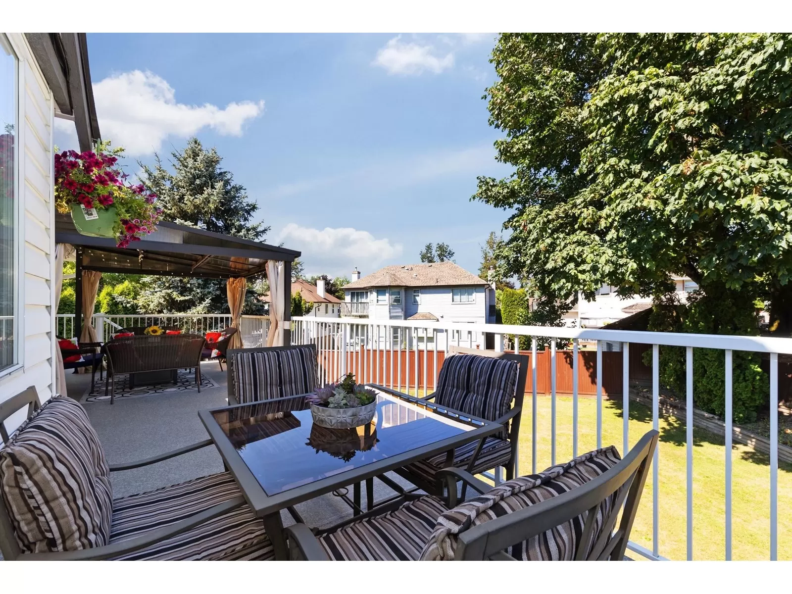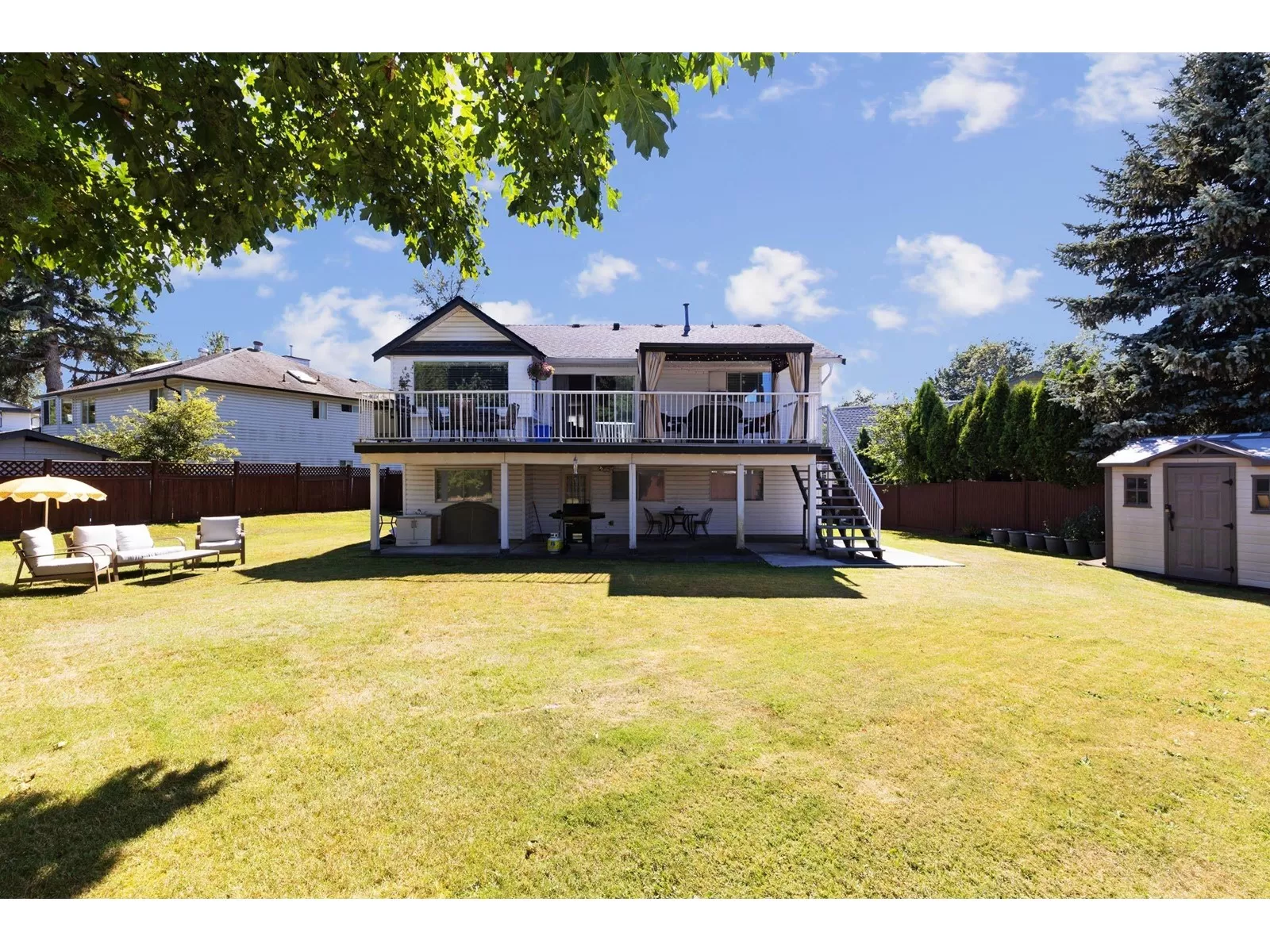 opeSituated in a private cul-de-sac Fraser Heights neighborhood on a huge 7285 s/f sits this beautifully updated family home with 5 bedrooms and 3 full baths. Living rm w/gas fireplace upgraded vinyl laminate flooring throughout the main floor w/open plan reno'd kitchen, eating area and family room with offers sliders leading to the entertainment sized sundeck with gazebo. 3 bedrooms upstairs, incl primary w/walk-in closet & updated ensuite. Walk-out above ground basement has 2 bedrooms, a generous size 1 bedroom mortgage helper with separate entrance & bedroom for upstairs use of guest bedroom. Sprawling fenced backyard offers endless outdoor play area & patio. Easy access to Hwy #1, Guildford Mall, Pacific Academy School, Fraser Heights Secondary & walking distance to Elementary. (id:27476)