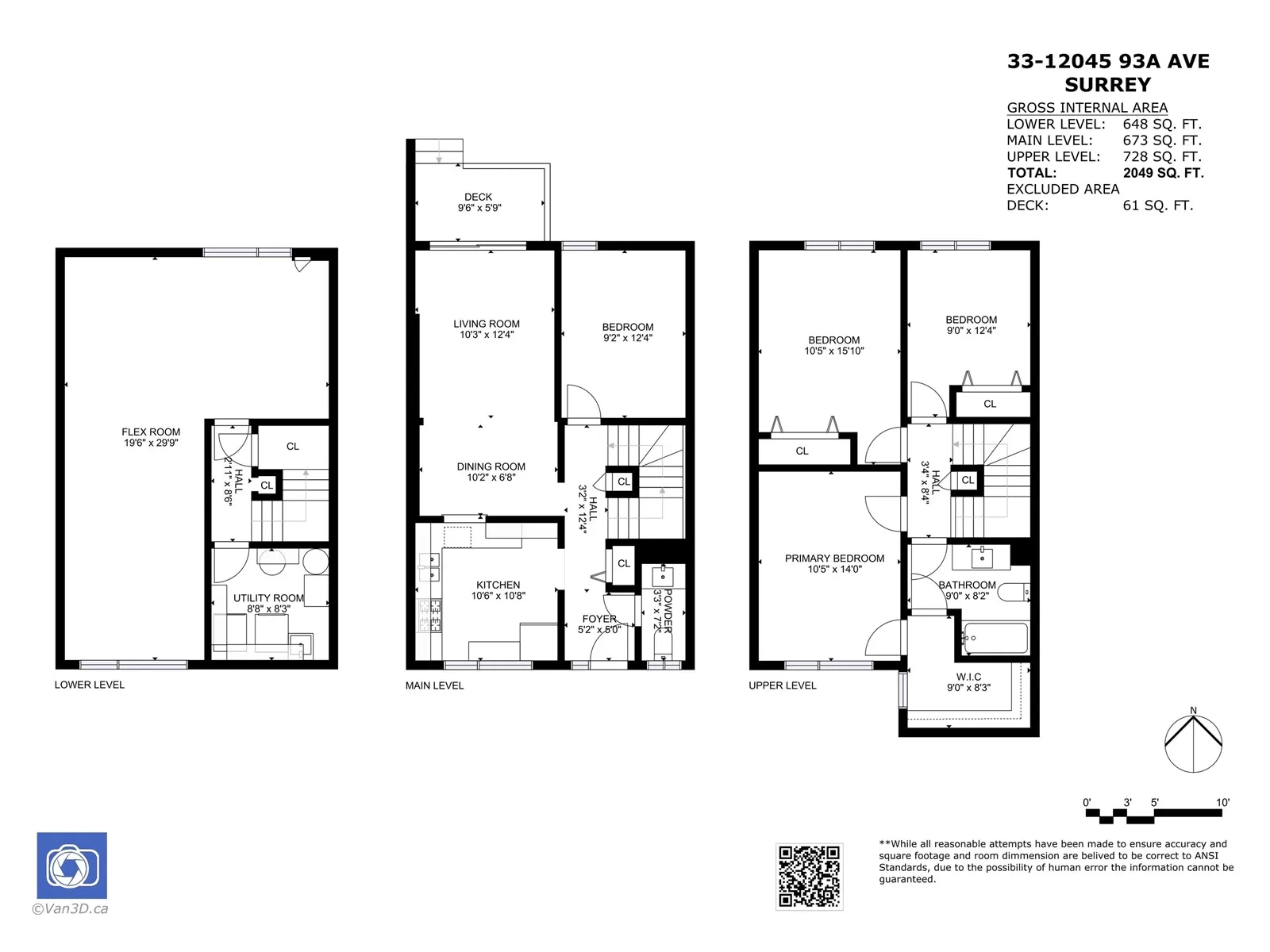 Welcome to the peaceful and well-maintained Scott Cedars complex. This spacious 3-level townhouse is a blank canvas. Upstairs features 3 bright, generously sized bedrooms and a full bathroom-perfect for the whole family. The primary bedroom includes a large walk-in closet with ample storage. Enjoy green views from the sunlit living room, flowing into the dining area. A kitchen passthrough and 2-piece powder room add convenience. Step out to the north-facing patio and courtyard-ideal for relaxing. The large basement offers a rec room, laundry, storage, and potential for a 4th bedroom. This quiet, well-run 33-unit strata is close to schools, parks, and transit. (id:27476)