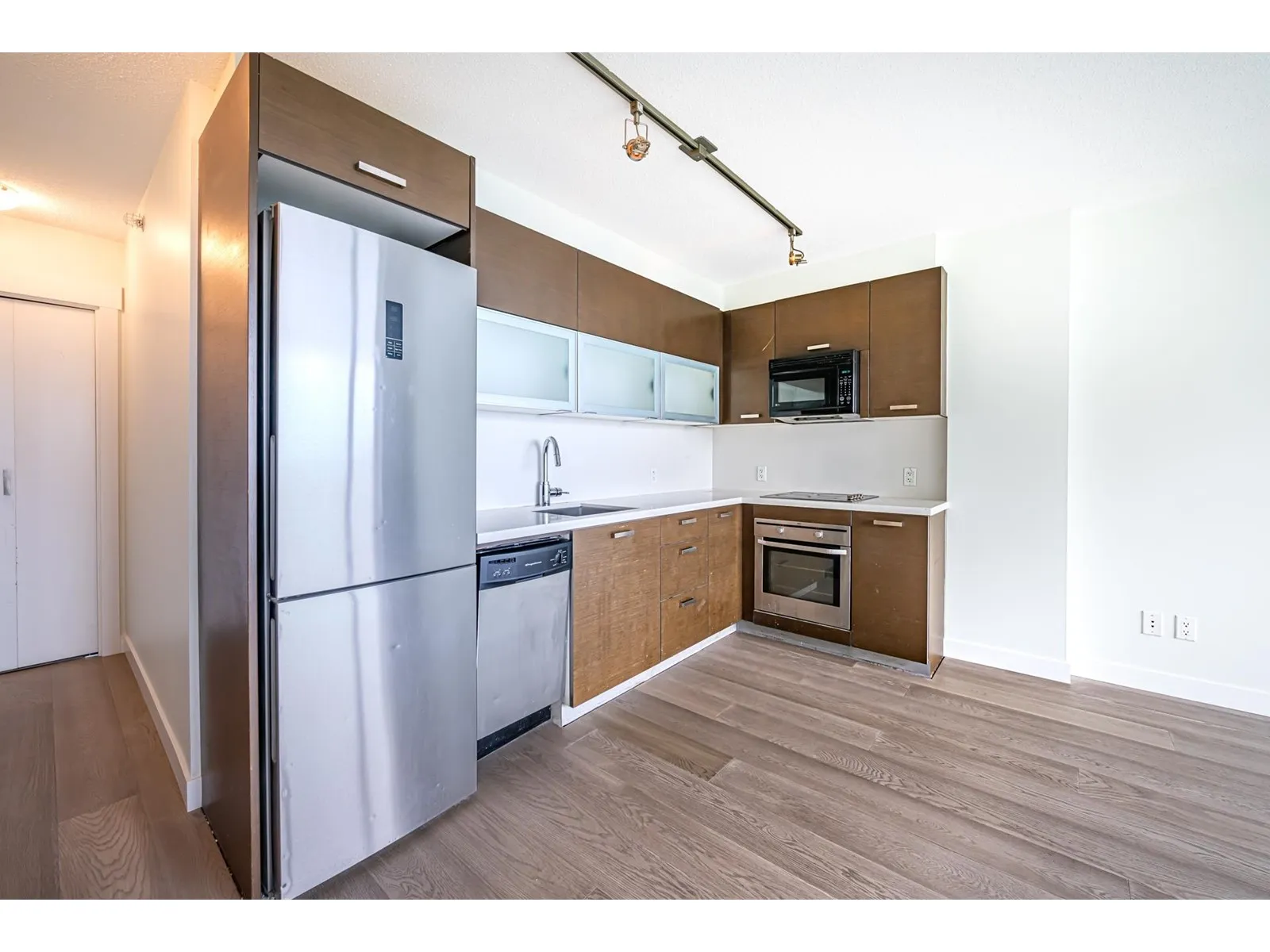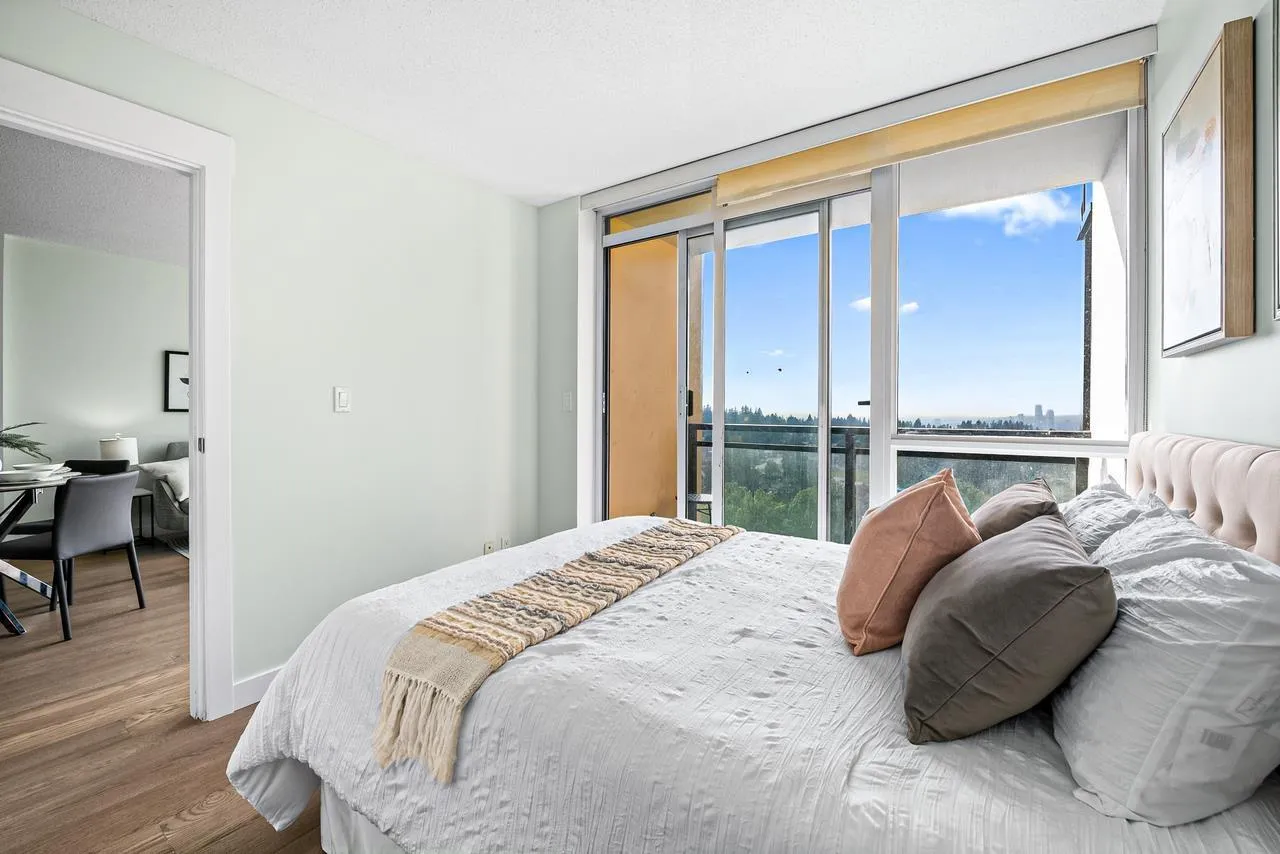 New flooring and Painting! This is beautiful ONE BEDROOM plus a DEN unit on 18th floor has exceptional view of Fraser River and downtown of New Westminster. Laminate Flooring, stainless steel kitchen appliances, in-suite laundry and Granite Countertops, Open Floor plan. Less than a min walk to Gateway SkyTrain, 15 mins to Metrotown and 30 mins to downtown Vancouver. Walking distance to Shopping, Surrey City Centre Public Library, T&T, SFU, Restaurants, Coffee Shops (id:27476)
