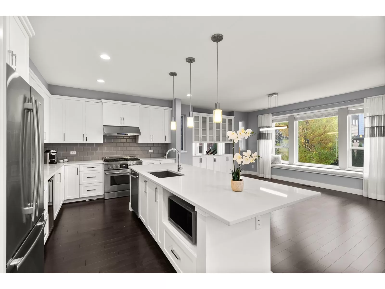 This luxury 3513 SQFT home is elegantly built, located in the most popular Pacific Heights neighbourhood. It is characterized by every impressive detail of craftsmanship with a South exposure back yard. The home is bright and functional, featuring high ceilings, 4 bedrooms and 3.5 bathrooms, huge open kitchen & pantry, s/s appliances, quartz countertops, glass stair railing, wide-plank hardwood flooring. The vaulted-ceiling master bedroom w/a south-facing balcony, spa-like ensuite w/ seamless glass shower and separate tub make this home special & different. The walkout basement has an entertainment space and a suite. It's equipped AC, irrigation system, fenced and low-maintenance yards, and much more! No lawn work in backyard is a bonus! Ta'talu Elementary & Earl Marriott Second catchment. (id:27476)