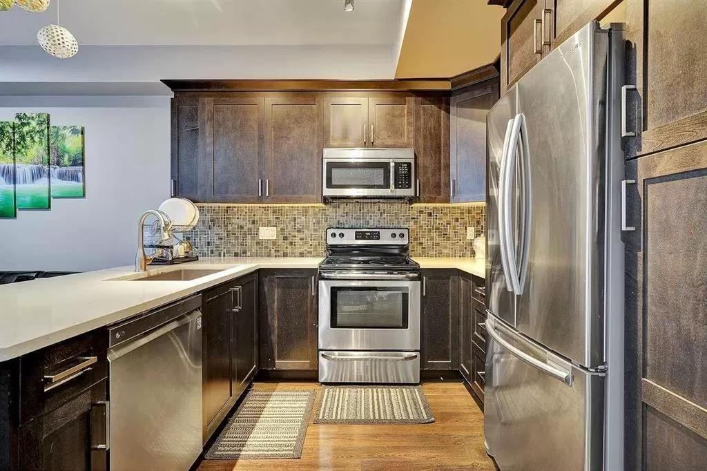 Welcome to Enclave in Panorama Ridge!! One of the largest units (2,300 sqft) in Panorama Ridge. This spacious townhouse features an extra wide main floor layout, with a beautiful kitchen, boasts maple cabinets, quartz counter tops, stainless steel appliances, and open concept to family room and fireplace, flows into large Living & Dining room, plus large deck! Enjoy your extra large master bedroom, walk-in closet and en-suite, including two additional bedrooms with large 4 piece main bathroom to share all on the top floor. Below you will find a large bedroom with full bathroom leading out into one of the largest sunny, fenced backyard. Don't miss it. (id:27476)