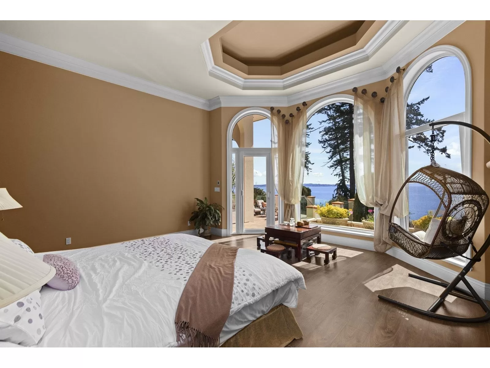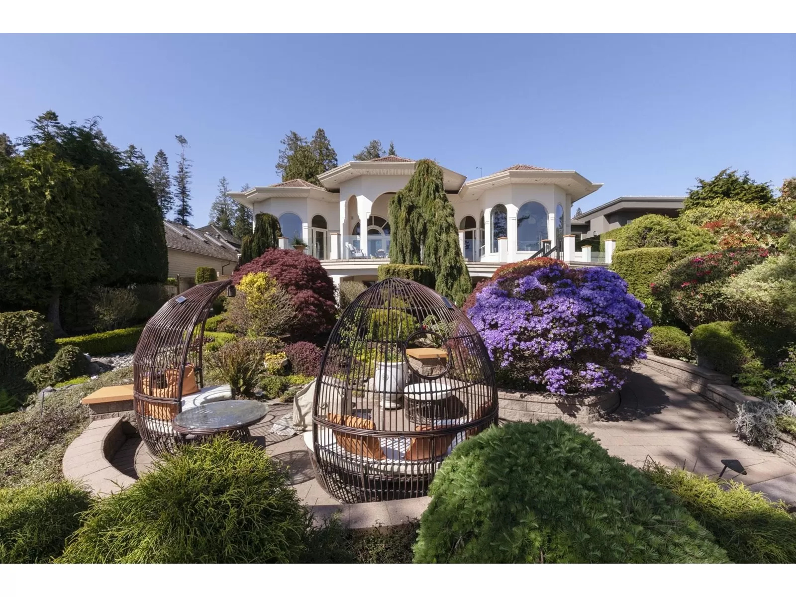 Breathtaking Mediterranean-inspired WATERFRONT estate in one of South Surrey & White Rock's most coveted enclaves. This nearly 7,000 sqft residence exudes luxury with panoramic ocean and Gulf Island views from all main living areas. Expansive patios blend indoor and outdoor living. Soaring ceilings and gracefully curved windows frame breathtaking vistas. A grand foyer opens to elegant formal rooms and a spacious eat-in kitchen. The main-level primary suite occupies its own private wing. Walk-out basement designed for entertaining. Unique touches include a four-car garage, enclosed RV/boat parking, and a beautiful landscaped 27,000 sqft bluff-front lot. (id:27476)