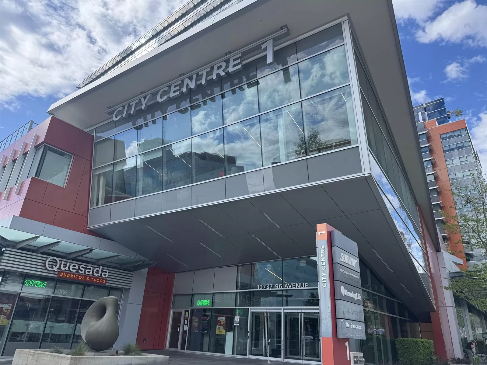 Retail Space for Lease -- Ground Floor Corner Unit. City Centre 1 | Across from Surrey Memorial Hospital. Rare opportunity to lease a fully improved ground floor retail unit in City Centre 1, a premier medical office building directly across from Surrey Memorial Hospital. This bright corner unit features large glass windows, two private offices, an open office area, a board room, utility room and a private washroom. With two separate entrances--one from the visitor parking area and one from the main lobby--the space offers excellent access and visibility. Ideal for medical, wellness, or professional services, the unit is located inn Surrey's growing Health & Technology District with strong foot traffic and nearby transit and nearby transit access. Available January 2026--contact to arrange a viewing. (id:27476)