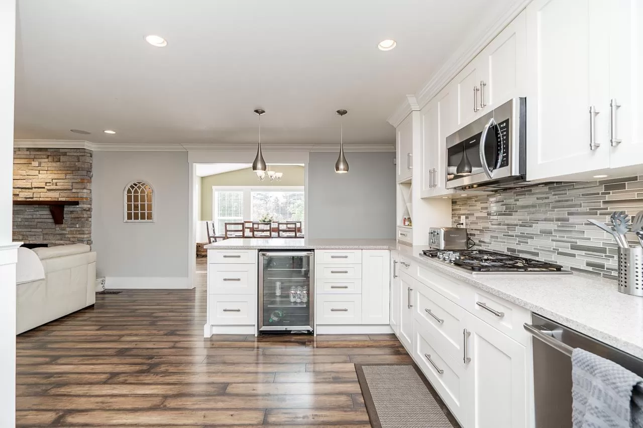 Perched on the Cloverdale Hilltop sits this beautiful rancher with walk out basement! 3500 sqft home offers spacious living with modern updates done in 2015! Large kitchen with eating area is open to your living room and dining room. French doors extend the living space out to your large partly covered deck with gas Fireplace, hot tub rough ins + Gas BBQ hookup. 3 bedrooms on the main floor including the master with full ensuite. BSMT features a 4th bedroom, rec room and office/BDRM with custom cabinetry all for upstairs use! Plus a 2 bedroom self contained legal suite with its own private patio! Backyard is private and level with hassle free artificial turf. AC, parking for up to 6, built in surround sound! All this on a large 7480 sqft lot! This home is a must view!! (id:27476)