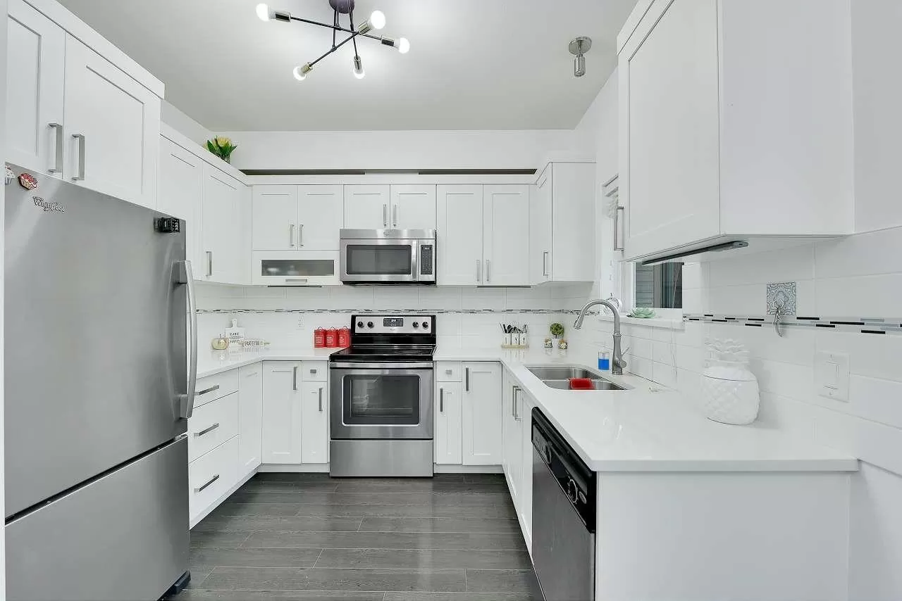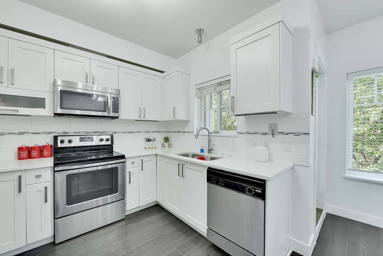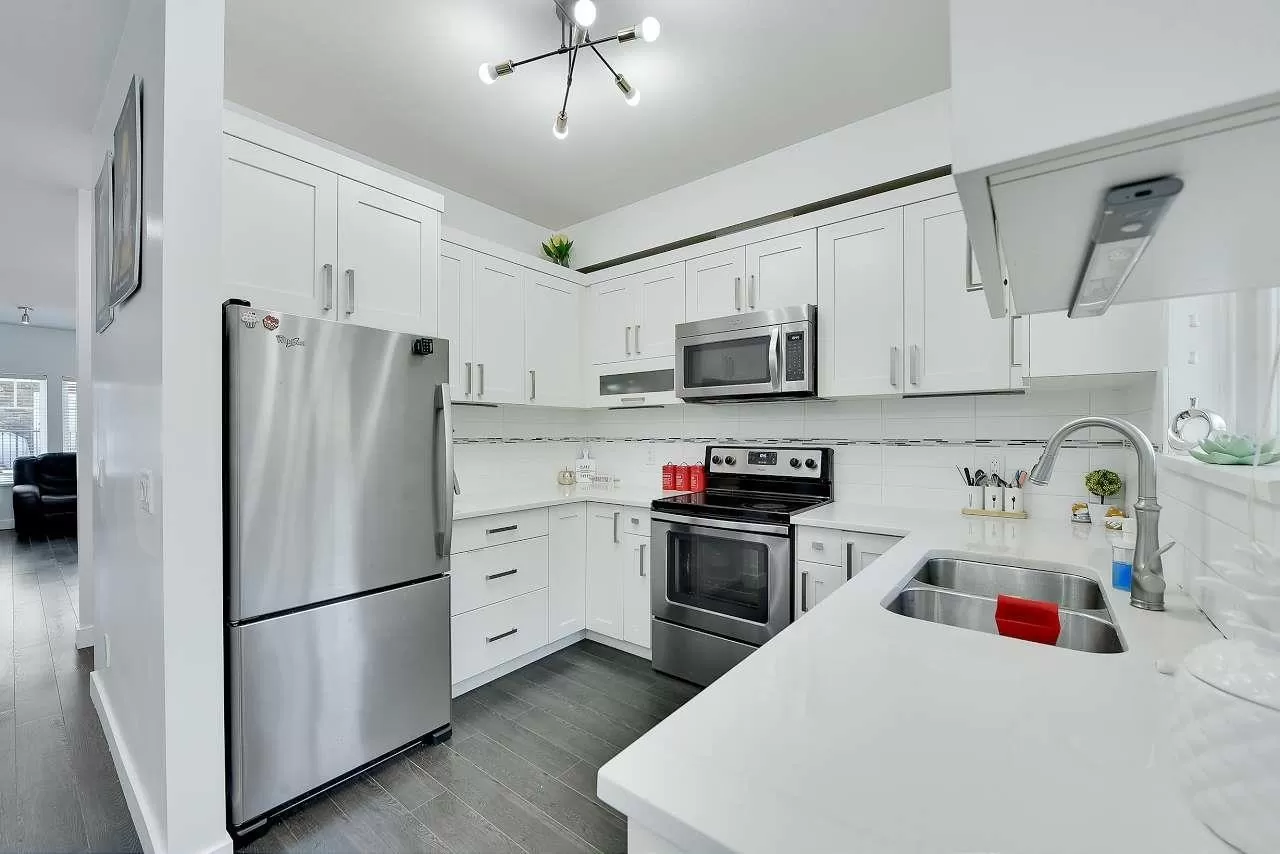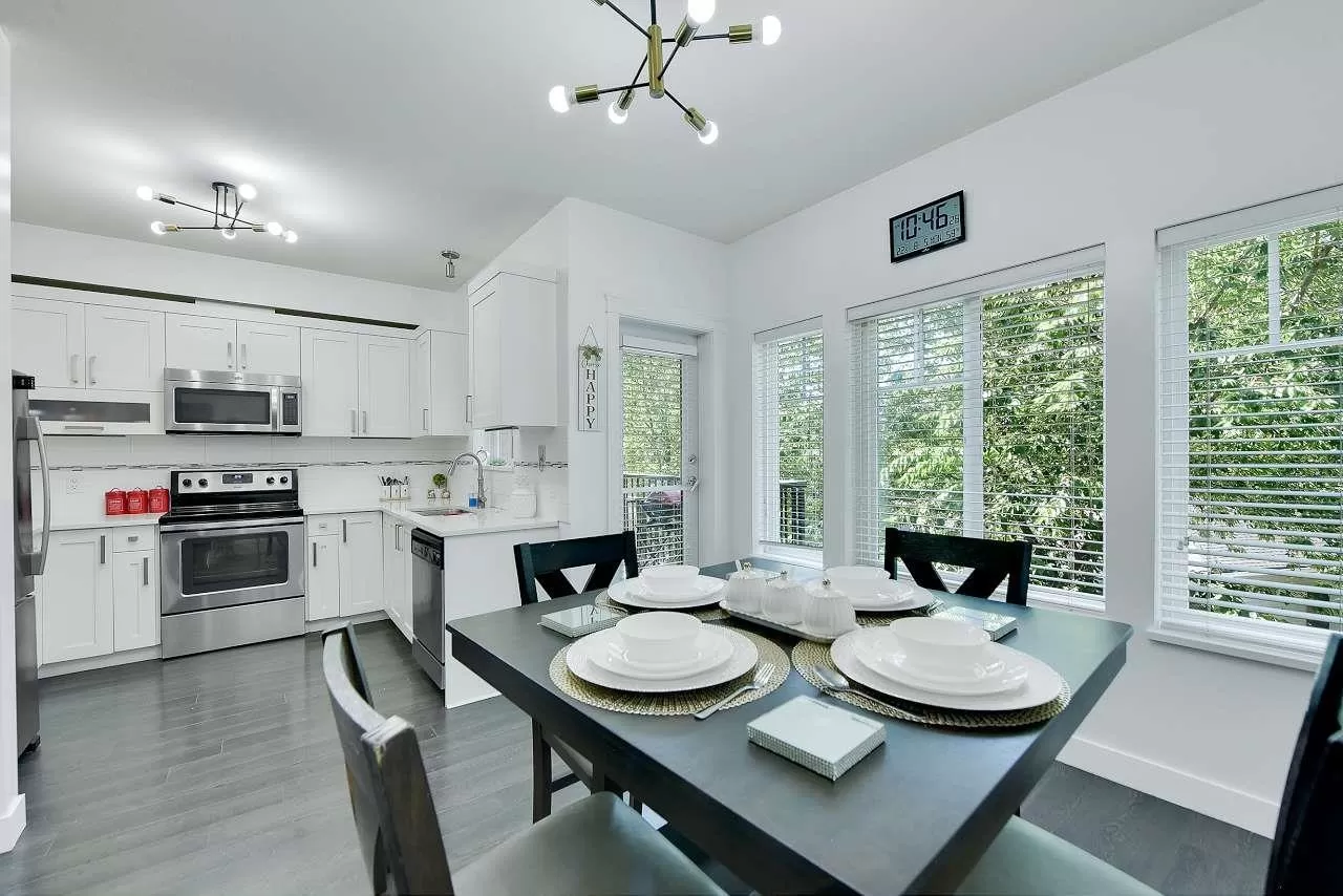 Beautiful well maintained 3BR, 2.5 Baths, townhouse nestled in the serene surroundings. Contemporary interiors boasts laminate flooring, a cozy fireplace, Kitchen offering stainless steel whirlpool appliances, quartz countertops, and tiled backsplash. Overlooking your family room is a generous fully fenced backyard - perfect for you to relax or exercise your green thumb in. Above main floor laundry, Mysa smart heat controllers which can be controlled with WIFI, updated light fixtures with fresh paint and ample space in 2 car tandem garage for storage are just some of the many features. Hyland Elementary, & Sullivan Heights Secondary in school catchment. You will also enjoy easy access to Hazelnut Meadows Park, Newton Library, King's Crossing shopping, Costco and Newton Bus Exchange. (id:27476)