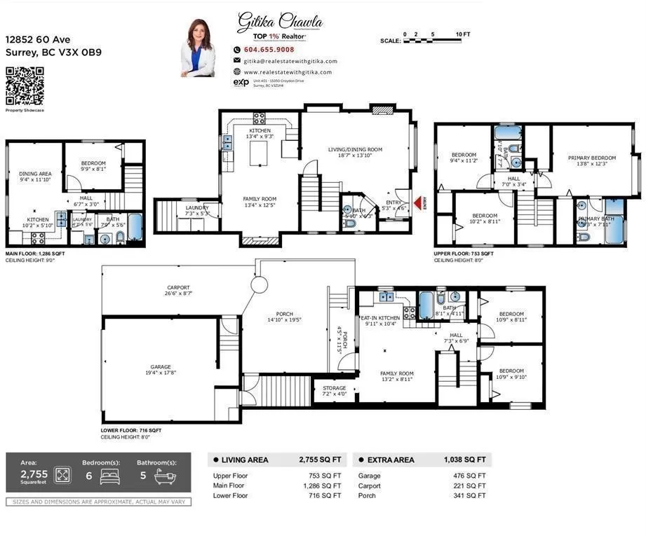 STUNNING 6 BEDROOM, 4.5 BATHROOM 2783 sqft COACH HOME in beautiful Panorama Ridge with 2 MORTGAGE HELPERS (generating $3,700 pm RENTAL INCOME)!! HIGH QUALITY FINISHES, NATURAL LIGHT, GRANITE counters and quality cabinets. MAIN FLOOR features OPEN FLOOR PLAN, LARGE Kitchen/Dining/Family Room area and POWDER ROOM. UPSTAIRS you will find 3 BEDROOMS. FULLY FINISHED BASEMENT boasts 2 bed MORTGAGE HELPER Suite+BONUS 1 BEDROOM LEGAL COACH House ABOVE GARAGE with separate laundry. LOTS OF PARKING - Double car garage plus additional. CORNER LOT, GREAT LOCATION - Close to public transit, schools, parks & shopping. (id:27476)