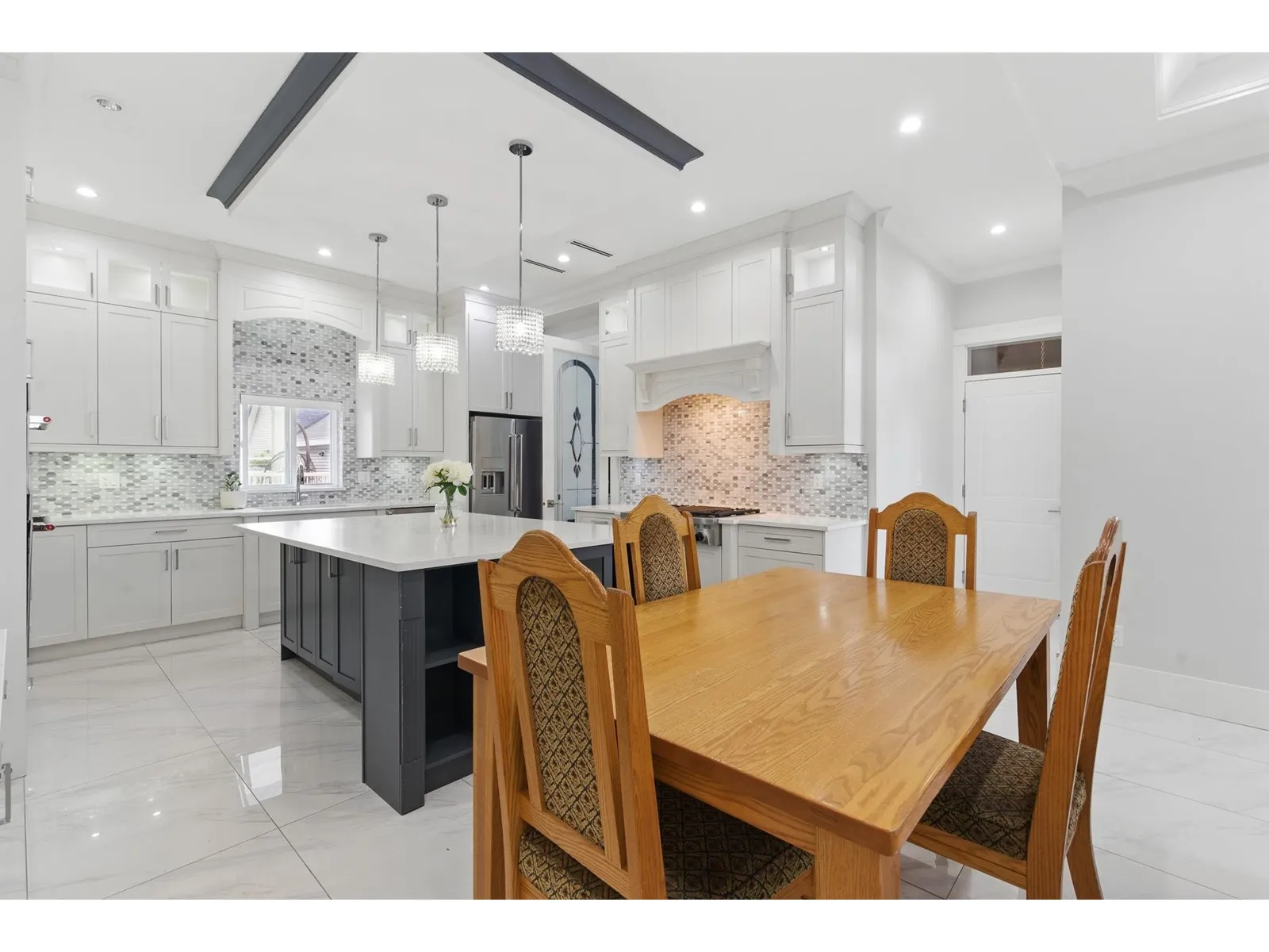 Welcome home! A spacious & beautifully maintained family home in the heart of West Newton! Built in 2017, this custom residence offers 8 bedrooms & 6 full bathrooms + a powder room. Thoughtfully designed with an open-concept kitchen with premium KitchenAid appliances, a wok kitchen for the home chef, & bright living spaces. The master is a true retreat, featuring a luxurious ensuite bathroom, completed with a soaker tub. Comfort features include AC, radiant heating, & HRV system. Enjoy the convenience of 2 income-generating basement suites (2+1), ideal for mortgage help. Situated on a quiet street with rear laneway access, ample street parking, & proximity to Beaver Creek Elementary & Tamanawis Secondary - an ideal location for families. Great for space, comfort, & value! Don't miss out! (id:27476)