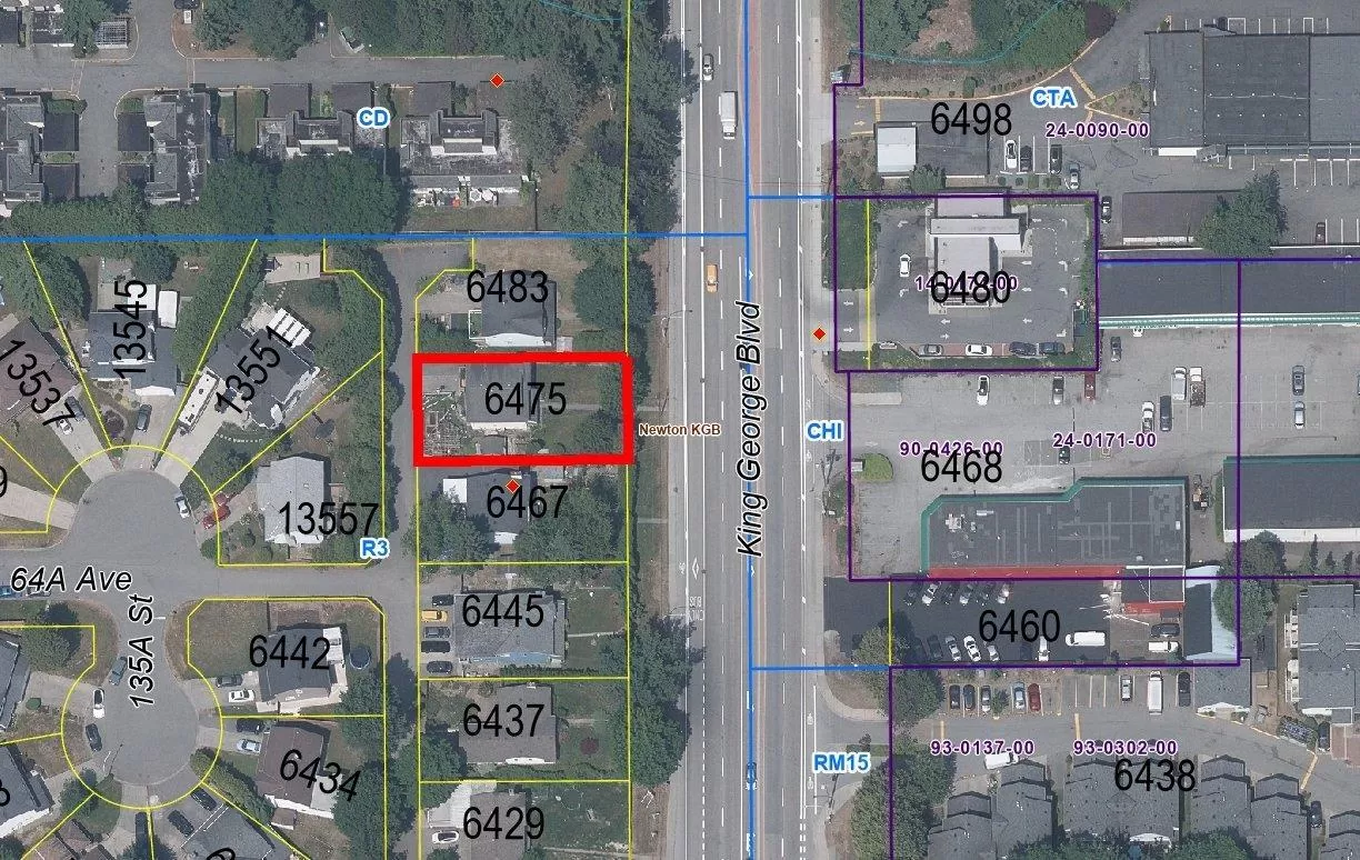 Excellent opportunity for future development in one of the most sought-after areas along the King George Corridor. This well-maintained property features 3 bedrooms and 1.5 baths on the main level, with a one-bedroom suite below-ideal for rental income. Back lane access with ample parking. Potential land assembly with all neighboring properties also on sale. Can also be paired together with neighboring property 6483 King George Blvd for sale. Located within the Newton-King George Boulevard Plan as low-rise mixed-use zoning, supporting commercial, service, and retail uses. A strategic development/investment property in a rapidly evolving neighborhood. (id:27476)