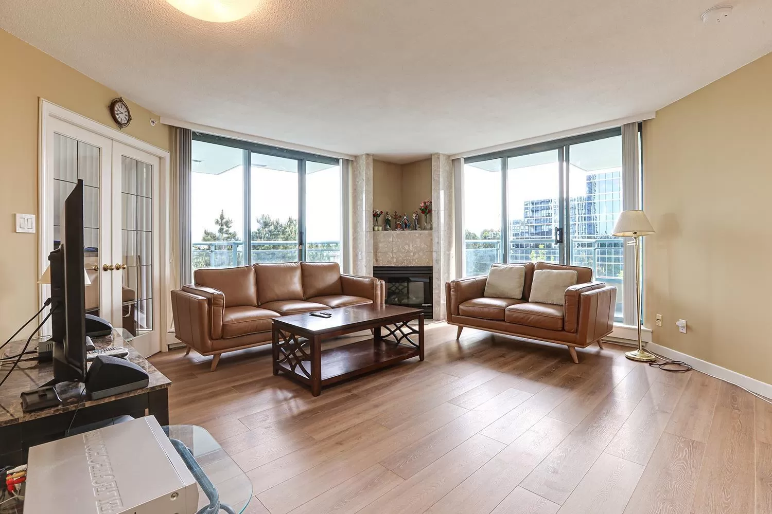 Prime Location! CORNERSTONE Built by Intrawest. Located in rapidly growing Downtown Surrey! One bedroom + large den with glass French-doors, 2 bathrooms and 827 sq ft of spacious living. Gas fireplace to enjoy the cold nights and 2 spacious balconies to have your morning coffee. Enjoy the outdoor heated pool, indoor hot tub, sauna, gym, theatre, and party room. Walk through the beautifully maintained grounds and gardens, 24-hour caretaker, secured underground parking, and security monitoring. The Cornerstone ideally situated steps to the Gateway Skytrain Station, perfect for commuters. Reach Surrey or Vancouver in minutes. This is a home for first time homebuyers or people that like to downsize or invest. 1 parking and 1 storage included. Don't wait book a viewing now! (id:27476)