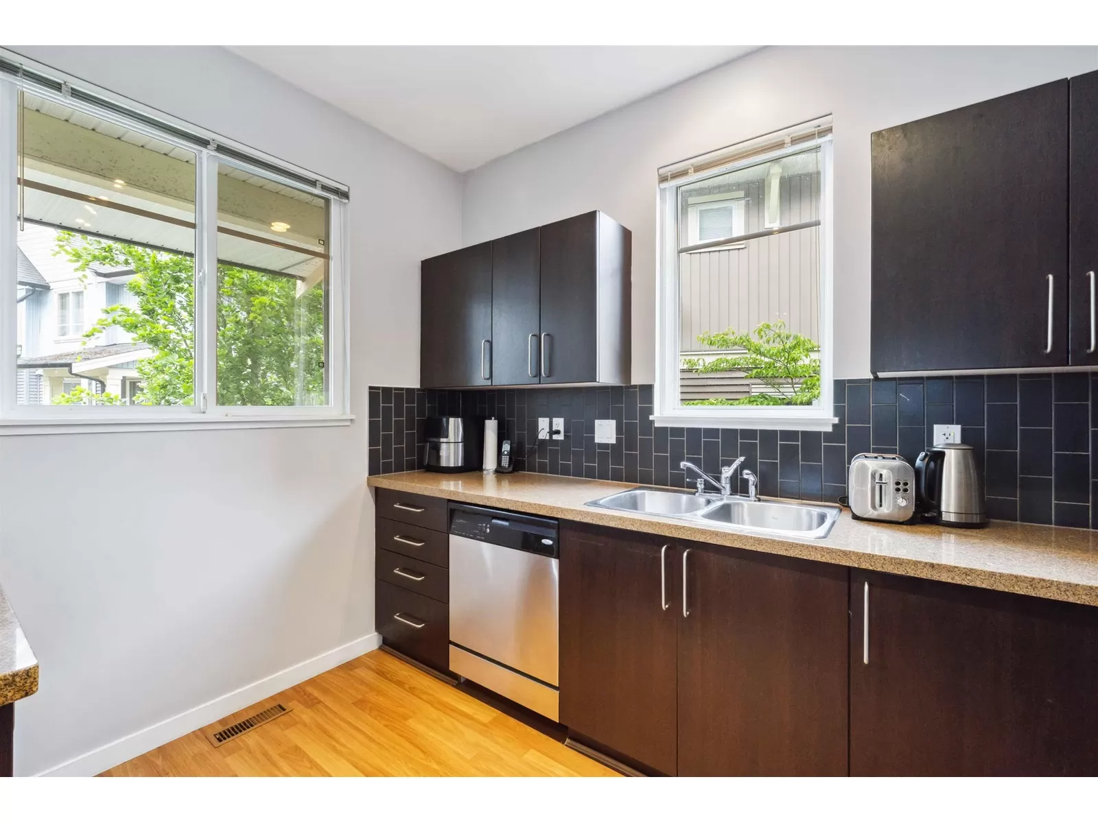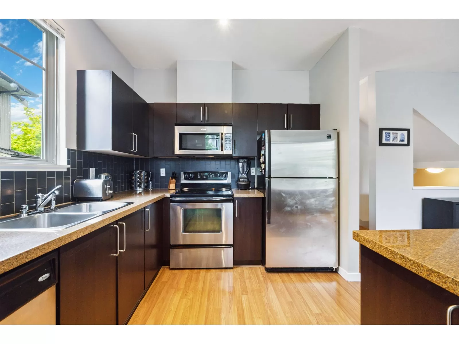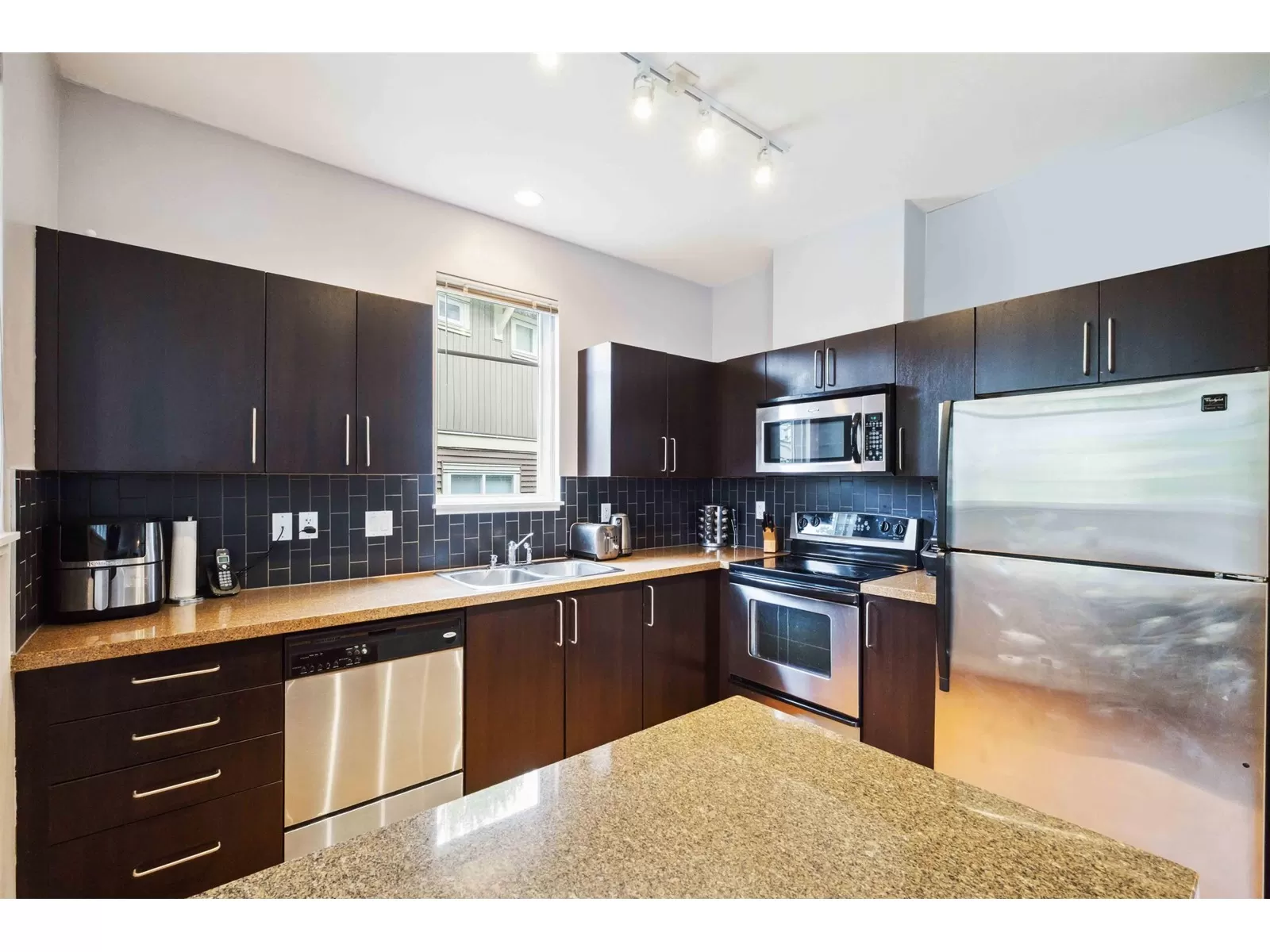 Welcome to sought after IXIA in Clayton Heights! This 3 bed/3 bath END UNIT, features 1828 sq ft of open concept living space at an incredible value! The freshly painted interior boasts an open-concept main level, with large living/dining area and bright kitchen. Upstairs features 3 good-sized bedrooms, including a spacious primary suite with walk-in closet and ensuite, and a fully finished basement with a large recreation room and versatile flex space. *BONUS* this home offers a double side-by-side garage and ample street parking. Ideally situated within walking distance to schools, parks, shops, and dining, and conveniently close to the future SkyTrain extension. A fenced yard and private front entrance on a quiet street enhance the sense of a single-family home. Don't miss this one! (id:27476)