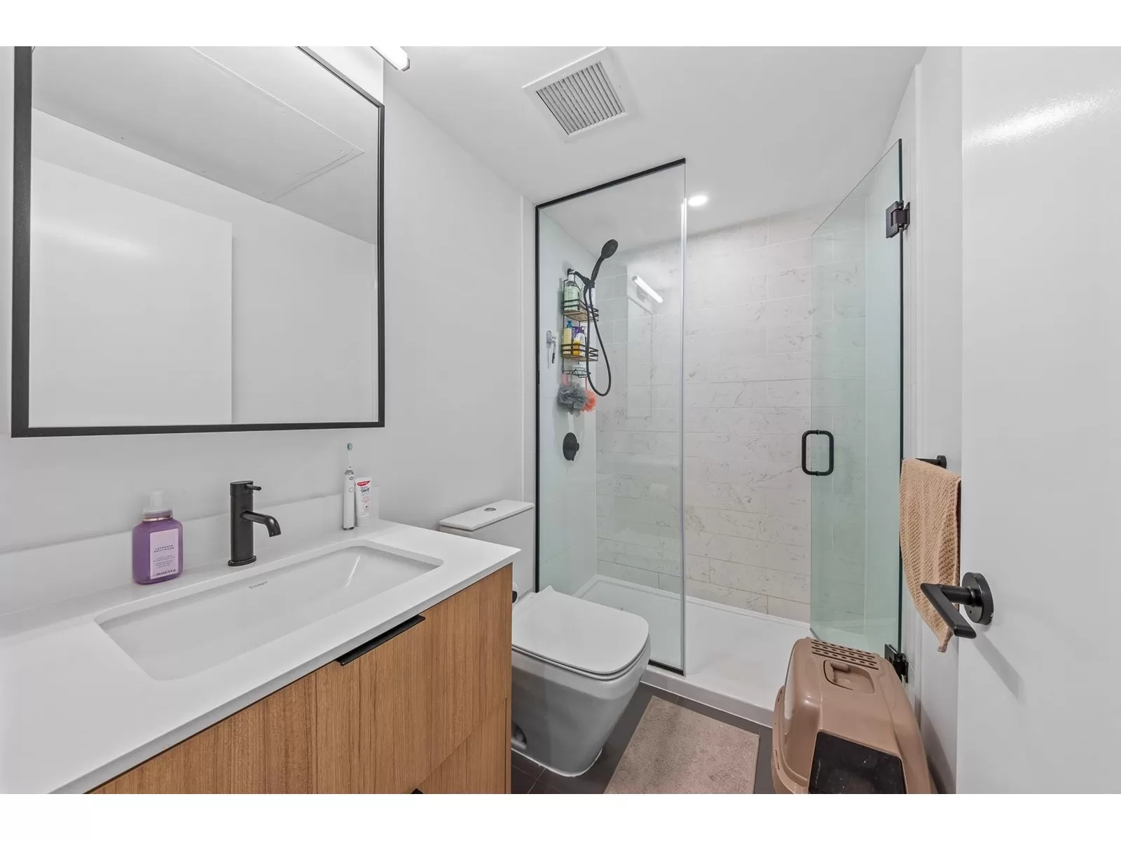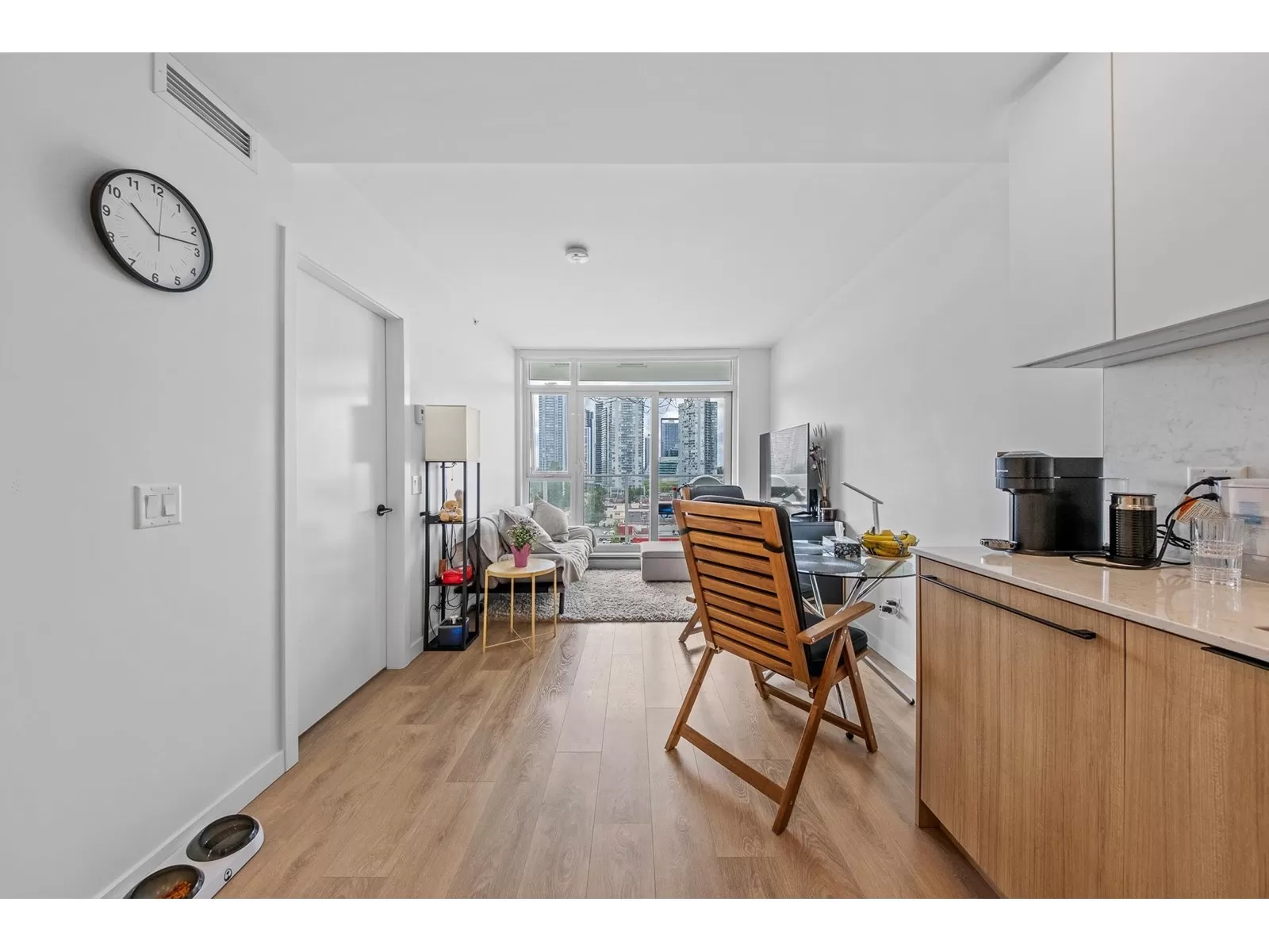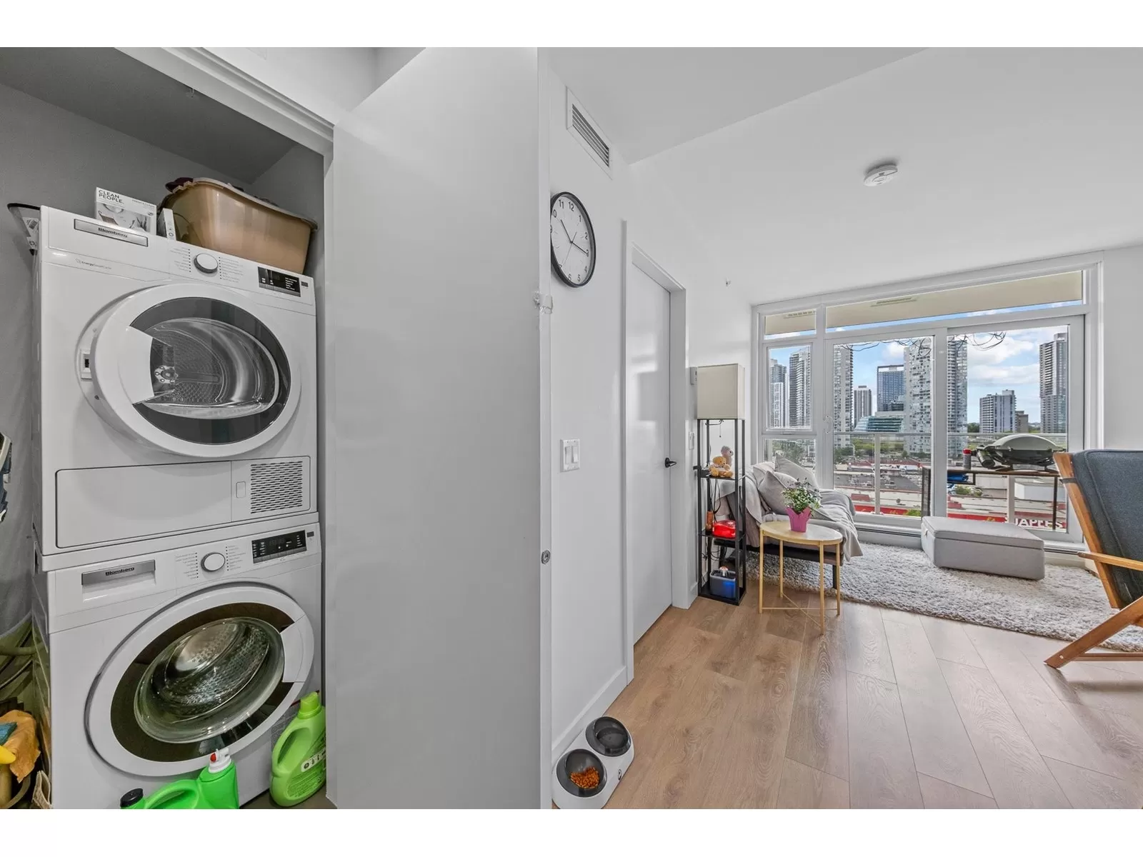 Welcome home to Georgetown by Anthem! This 1bdrm home has hard flooring, stainless integrated appliances, sleek millwork and a balcony with a bright southern exposure! The bedroom has high ceilings & views. Steps to Surrey City Centre shopping & restaurants. Skytrain & KPU & SFU as well as the upcoming UBC campus are a short stroll away. Georgetown has a 30,000sf amenity space with entertainment lounge, co-workspace, outdoor theatre, dog run, fitness center and guest suite. 1 bike locker and 1 Parking stall included. (id:27476)