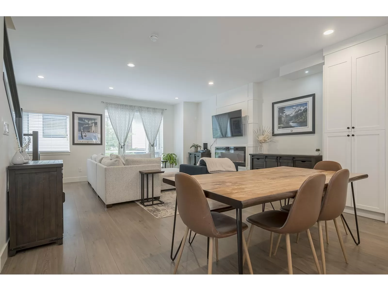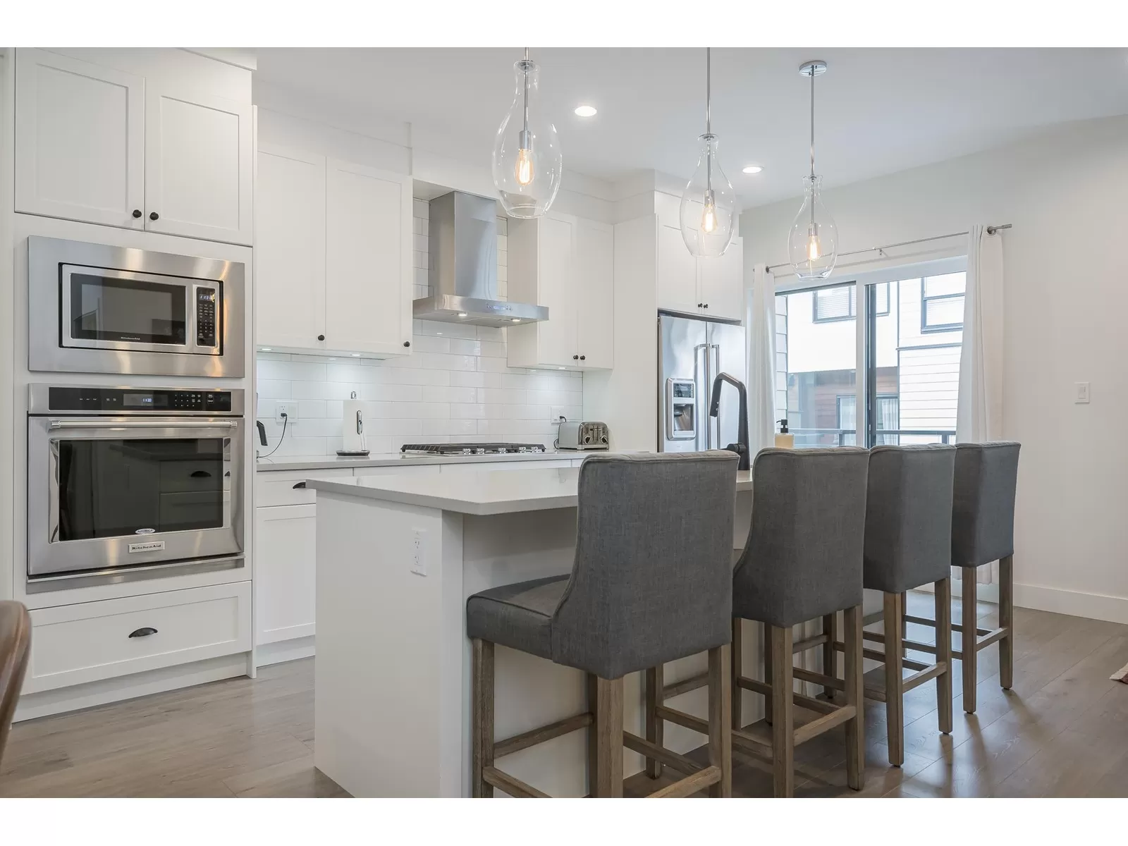 Welcome to this exceptional Sakura townhome with 4 bedrooms and 4 bathrooms in 1,868 sqft of thoughtfully designed space. The open-concept main floor is perfect for entertaining, with a well-appointed kitchen and premium appliances flowing to bright living areas. Upstairs features a primary suite with vaulted ceilings, stylish ensuite, and spacious walk-in closet, plus two additional bedrooms. The ground-level bedroom with full bath makes an ideal guest room or home office. Enjoy forced air conditioning throughout, efficient heating on every floor, and a spacious double garage. The community clubhouse offers an excellent gym. Ideally located near Morgan Crossing shops, top schools, and recreation in one of South Surrey's most desirable communities. (id:27476)