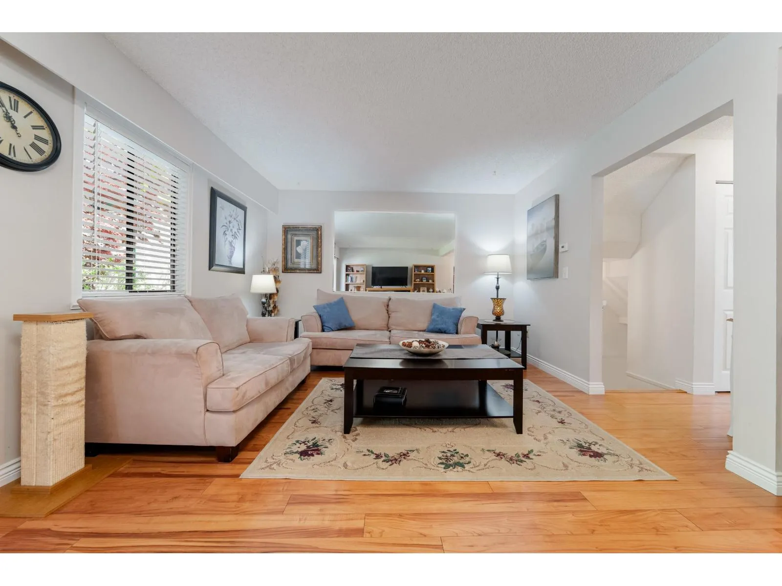 Corner Unit in Peaceful Scott Cedars Complex, this bright and spacious 3-level townhouse is in a family-friendly complex. The upper-level features 3 large bedrooms and a full bathroom. The primary bedroom includes an oversized walk-in closet with ample storage. Main floor offers a functional layout with a bright living room, adjacent dining area, and a kitchen with a pass-through window. A 2-piece powder room adds convenience. Enjoy two patios - one with courtyard views and access and an East-facing second one, for extra outdoor space. The large open basement can be used as rec room or a potential 4th bedroom. Recent upgrades include new furnace, hot water tank and bathroom vanity. Located close to all levels of schools, parks, and transit. (id:27476)