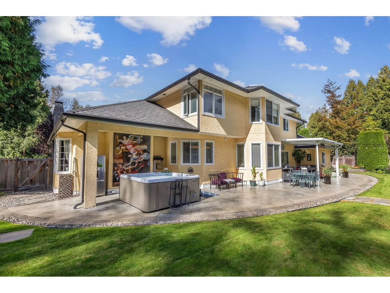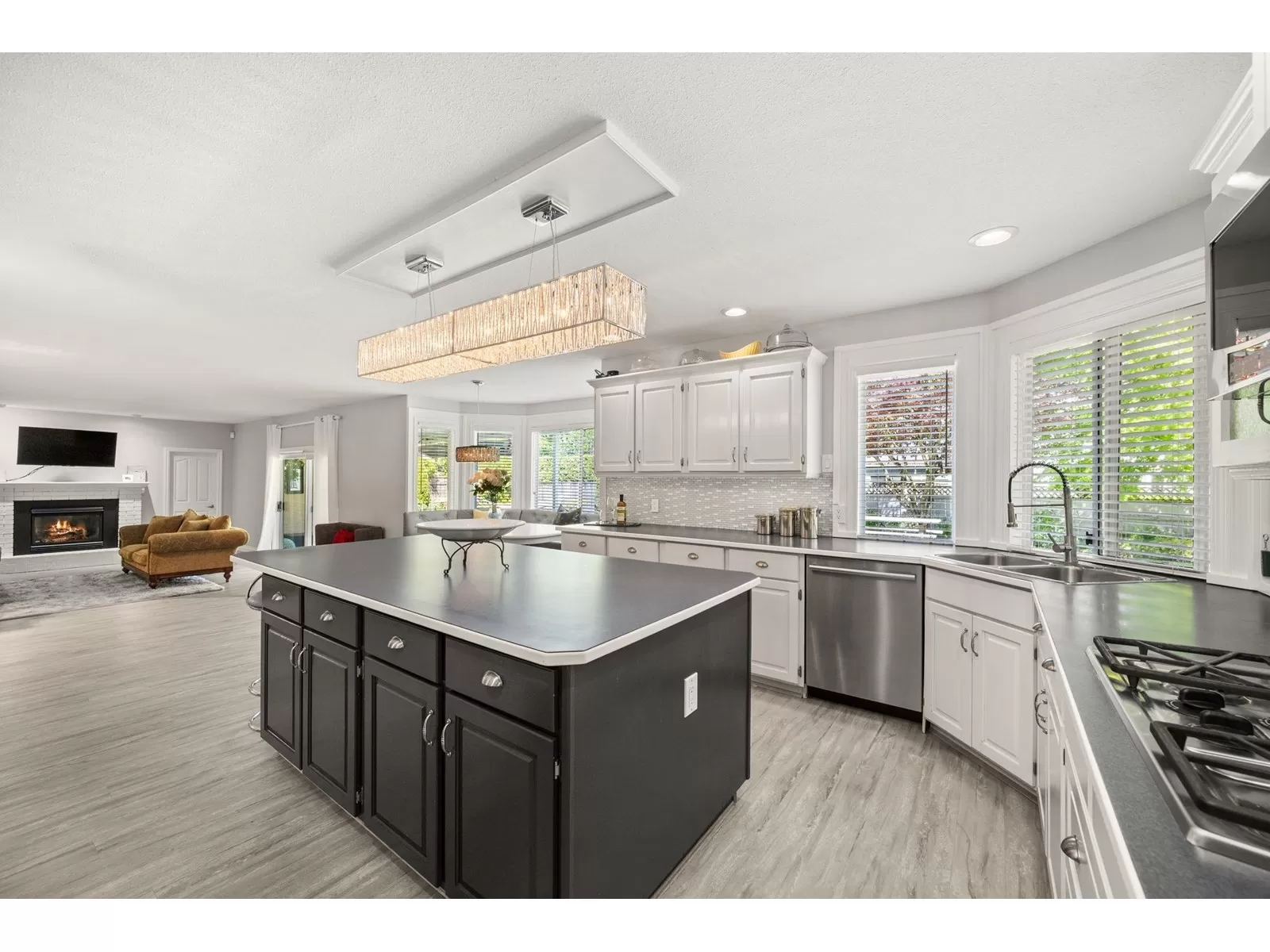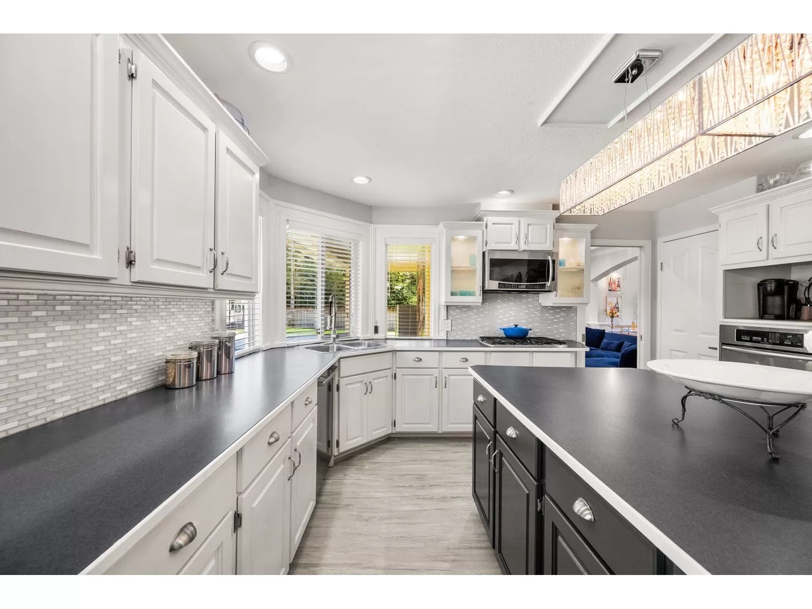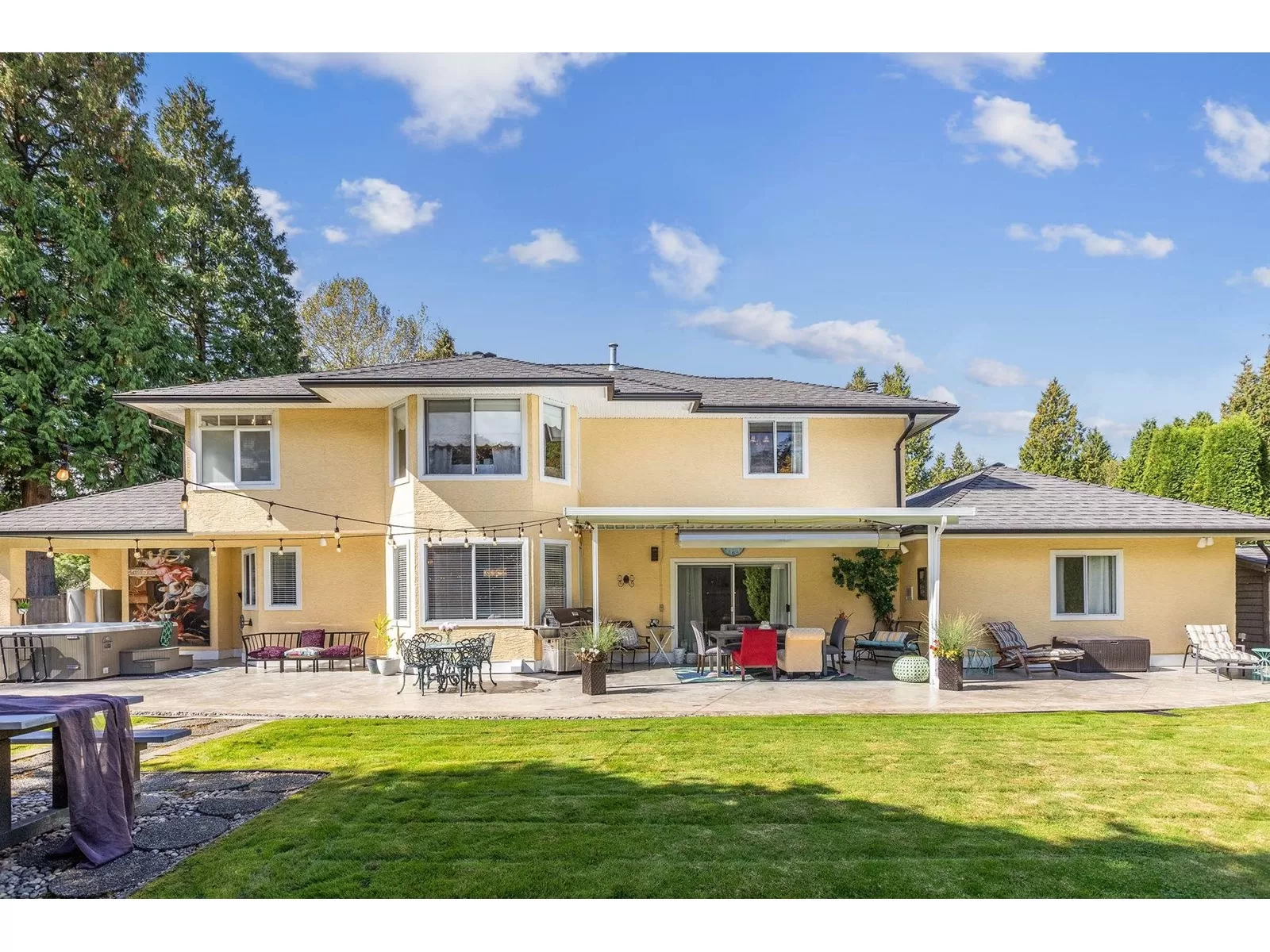 Bell Park South. Modern decor, well-maintained, sought after executive 3,440 sq. ft. two level plan. Open main floor layout, vaulted ceilings, sky lights, office, plus 5th bedroom or games with ensuite. Upper level 4 bedrooms and 3 baths, includes primary suite. Covered rear patio, commercial electric heater, outdoor mural. Features updated asphalt roof, gutters, concrete driveway, 2 gas fireplaces, tile entrance, wide plank laminate floor, modern light fixtures, chef's size white oak kitchen, 5 burner gas cook top. 17,155 sq. ft. sunny private corner lot, circular extra wide driveway, triple garage, epoxy floor, powered RV access. Multigenerational opportunity: R2 Zoning includes secondary suite, coach house or garden suite. Steps to Ray Shepherd, Elgin Schools, White Rock promenade. (id:27476)