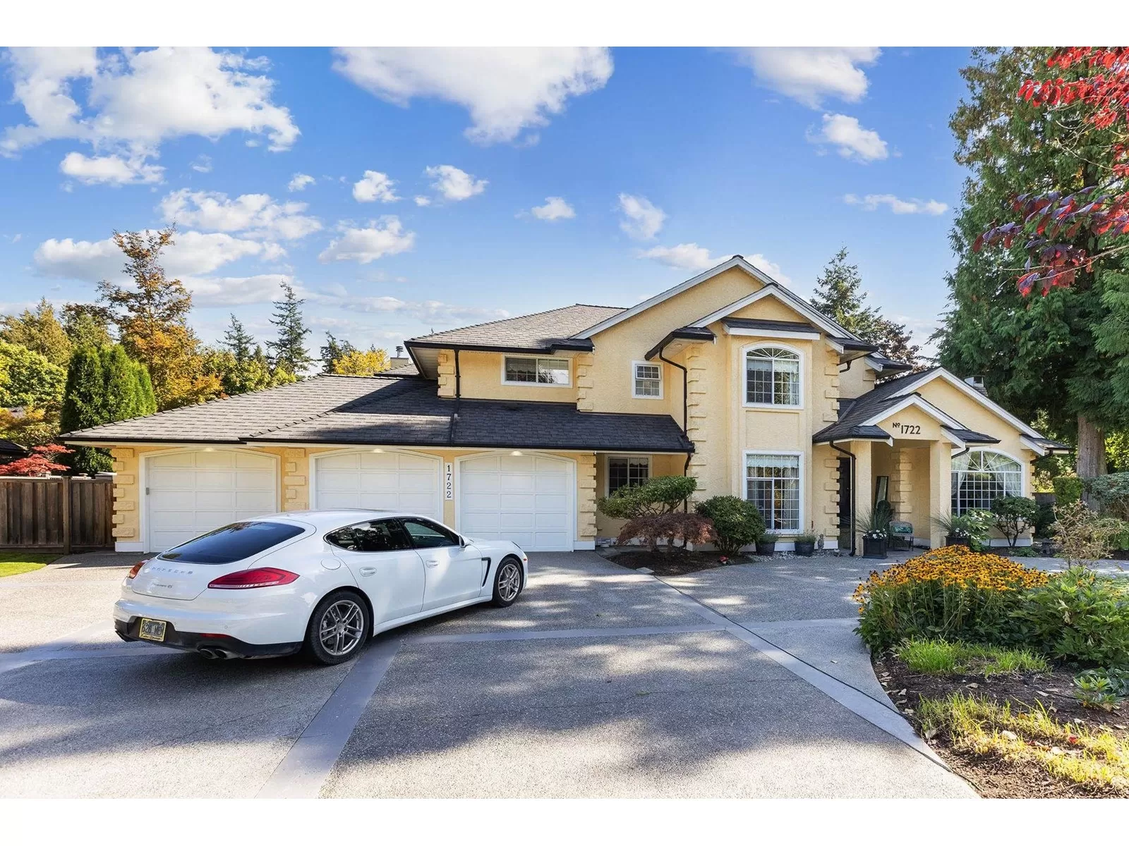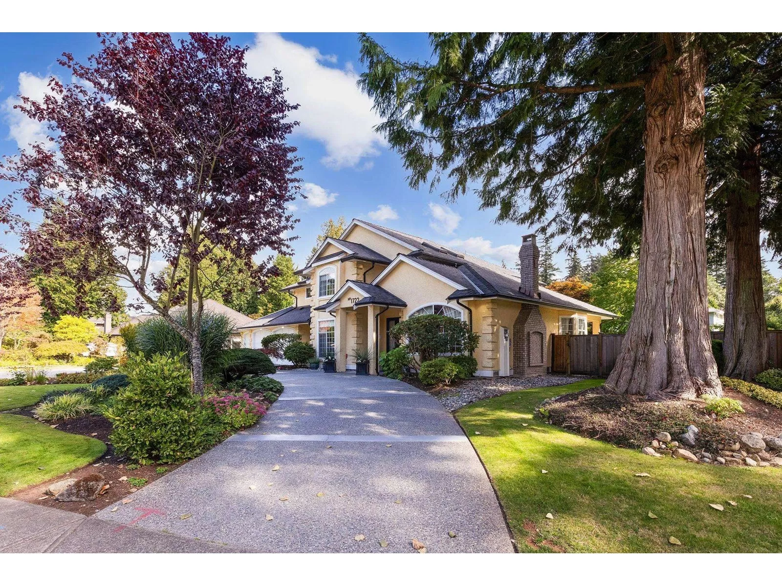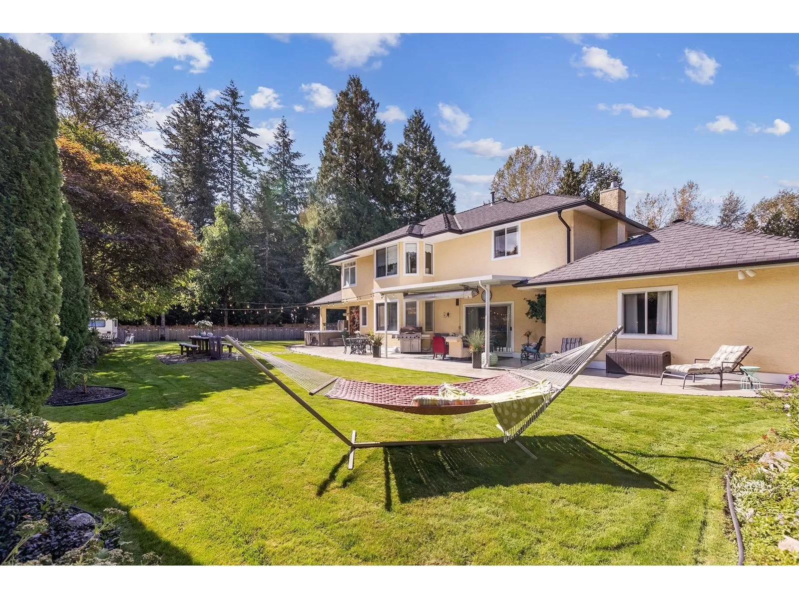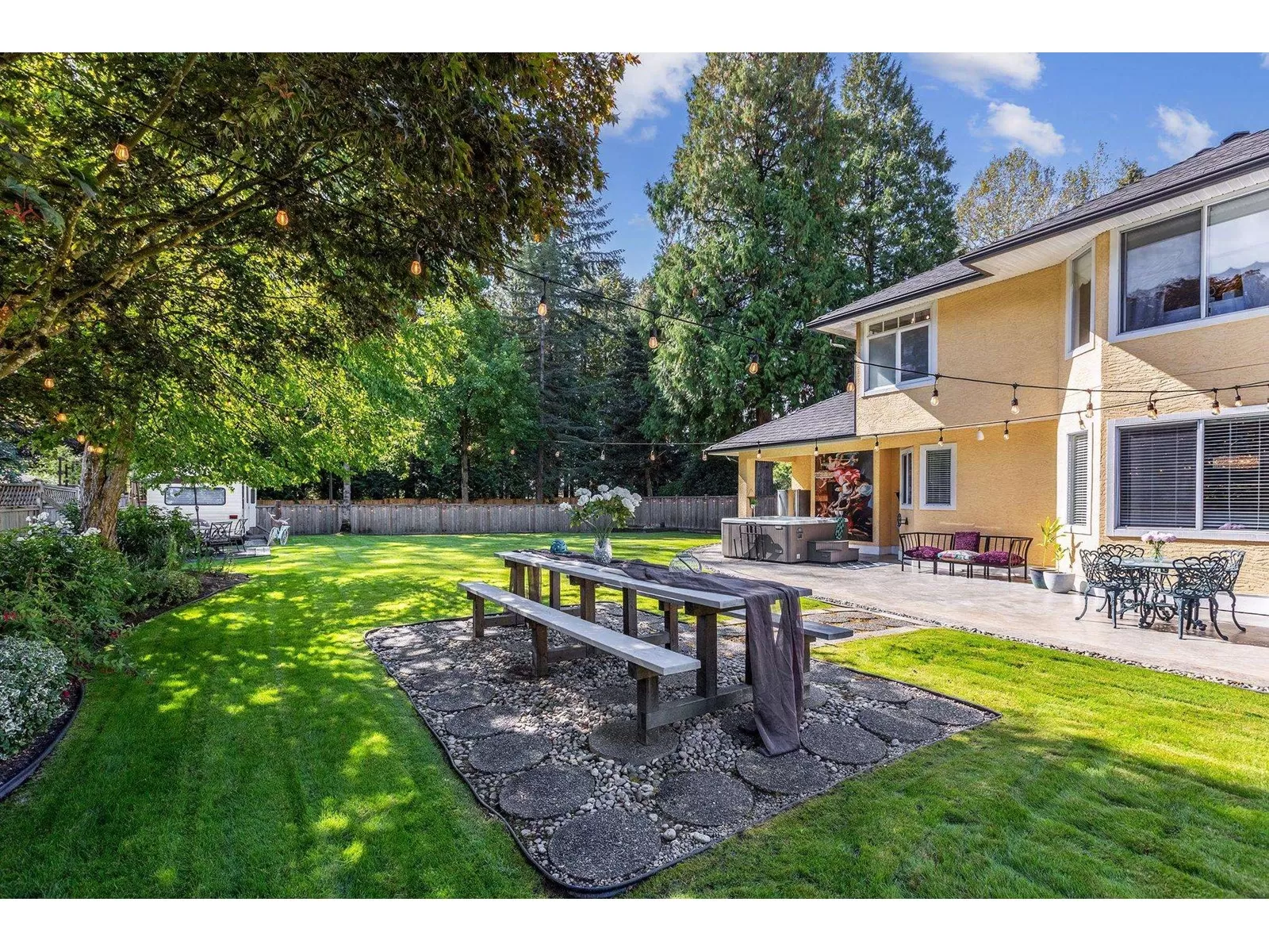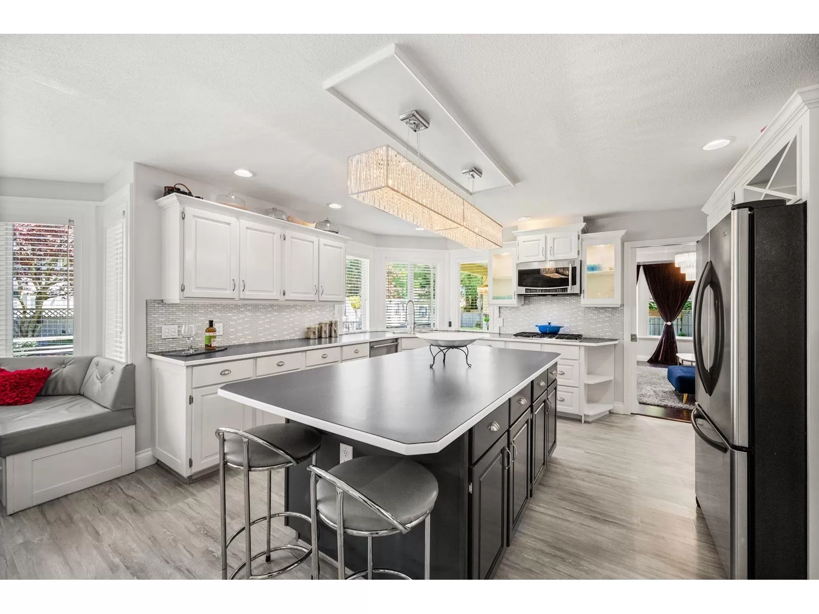 Bell Park South. Modern decor, well-maintained, sought after executive 3,440 sq. ft. two level plan. Open main floor layout, vaulted ceilings, sky lights, office, plus 5th bedroom or games with ensuite. Upper level 4 bedrooms and 3 baths, includes primary suite. Covered rear patio, commercial electric heater, outdoor mural. Features updated asphalt roof, gutters, concrete driveway, 2 gas fireplaces, tile entrance, wide plank laminate floor, modern light fixtures, chef's size white oak kitchen, 5 burner gas cook top. 17,155 sq. ft. sunny private corner lot, circular extra wide driveway, triple garage, epoxy floor, powered RV access. Multigenerational opportunity: R2 Zoning includes secondary suite, coach house or garden suite. Steps to Ray Shepherd, Elgin Schools, White Rock promenade. (id:27476)