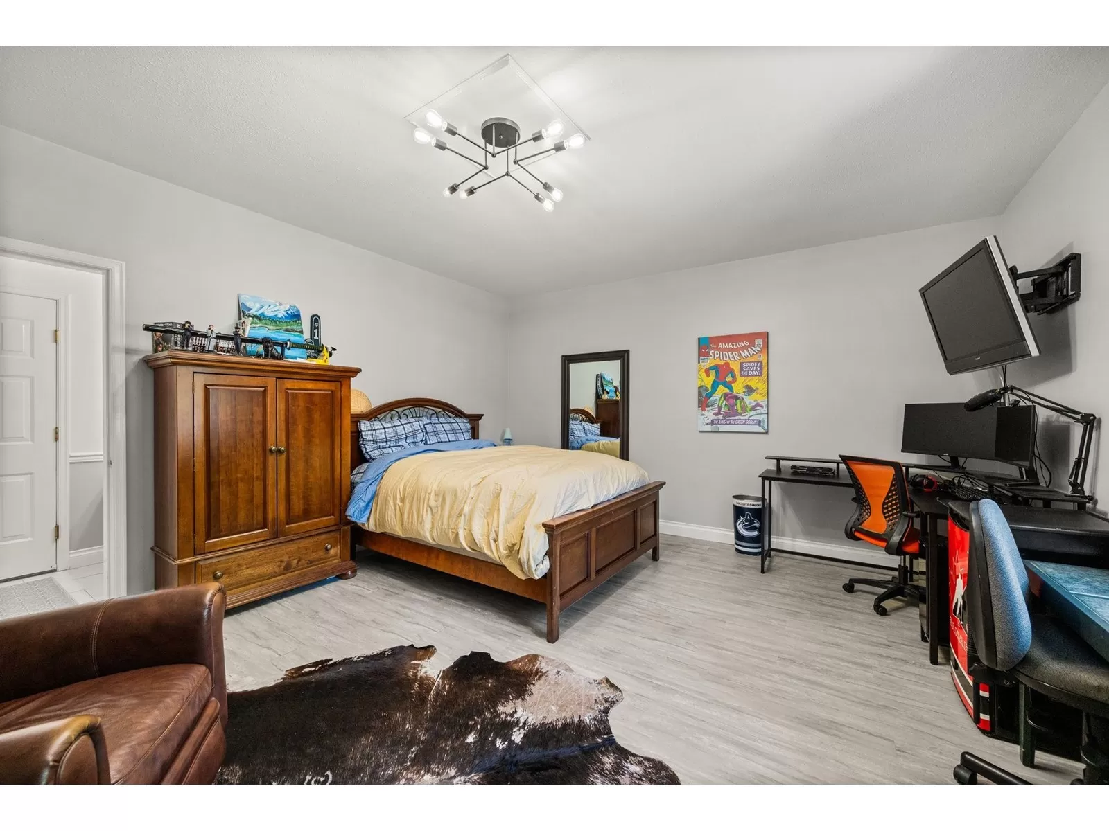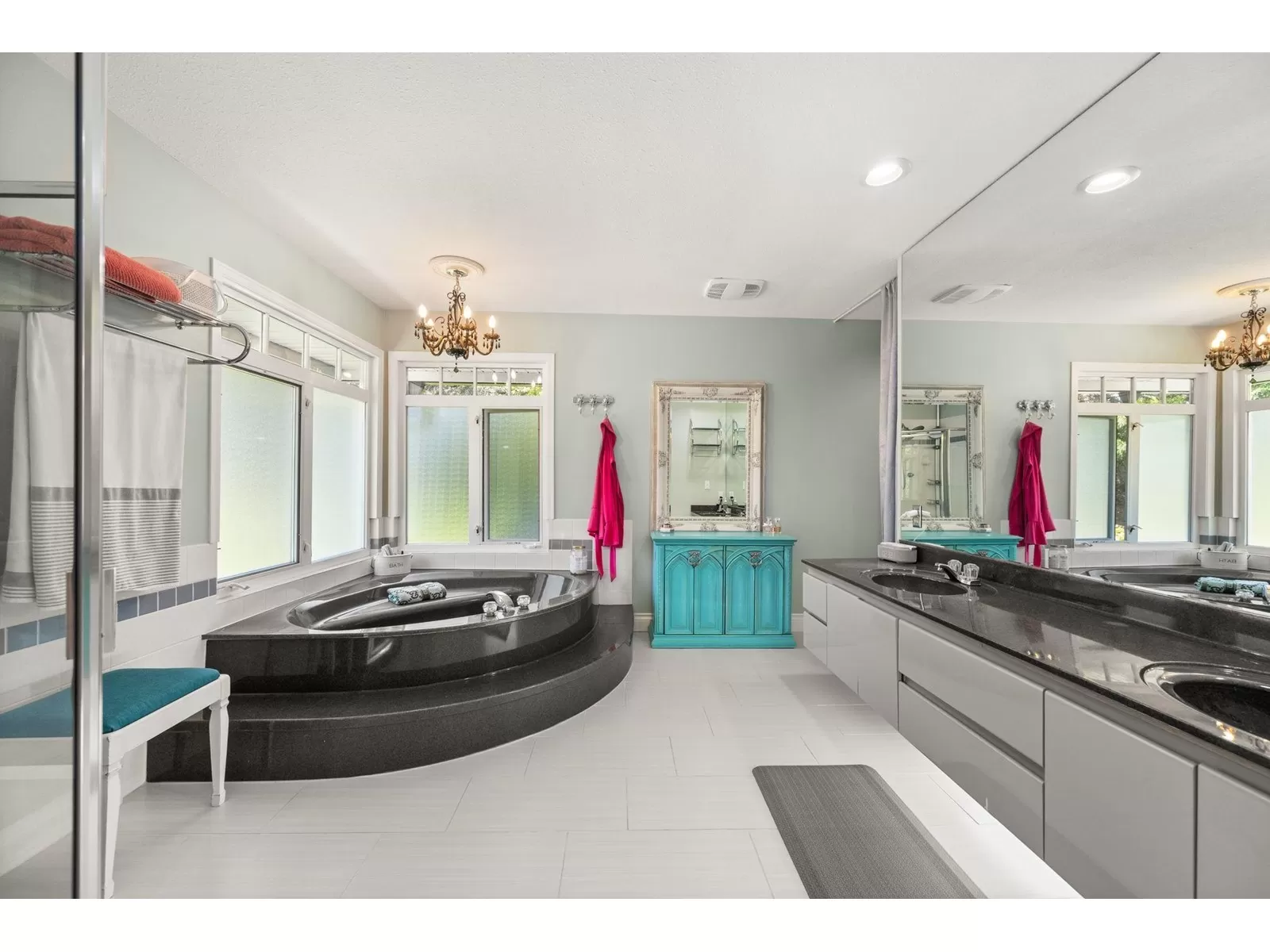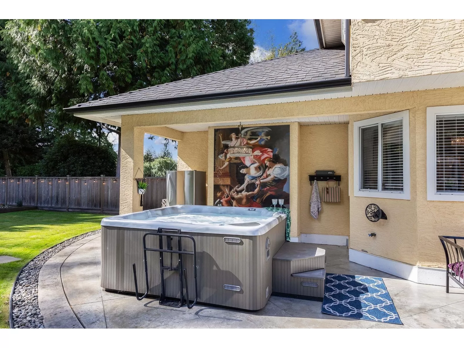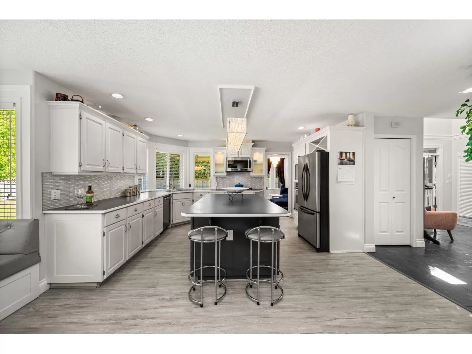 Bell Park South. Modern decor, well-maintained, sought after executive 3,440 sq. ft. two level plan. Open main floor layout, vaulted ceilings, sky lights, office, plus 5th bedroom or games with ensuite. Upper level 4 bedrooms and 3 baths, includes primary suite. Covered rear patio, commercial electric heater, outdoor mural. Features updated asphalt roof, gutters, concrete driveway, 2 gas fireplaces, tile entrance, wide plank laminate floor, modern light fixtures, chef's size white oak kitchen, 5 burner gas cook top. 17,155 sq. ft. sunny private corner lot, circular extra wide driveway, triple garage, epoxy floor, powered RV access. Multigenerational opportunity: R2 Zoning includes secondary suite, coach house or garden suite. Steps to Ray Shepherd, Elgin Schools, White Rock promenade. (id:27476)