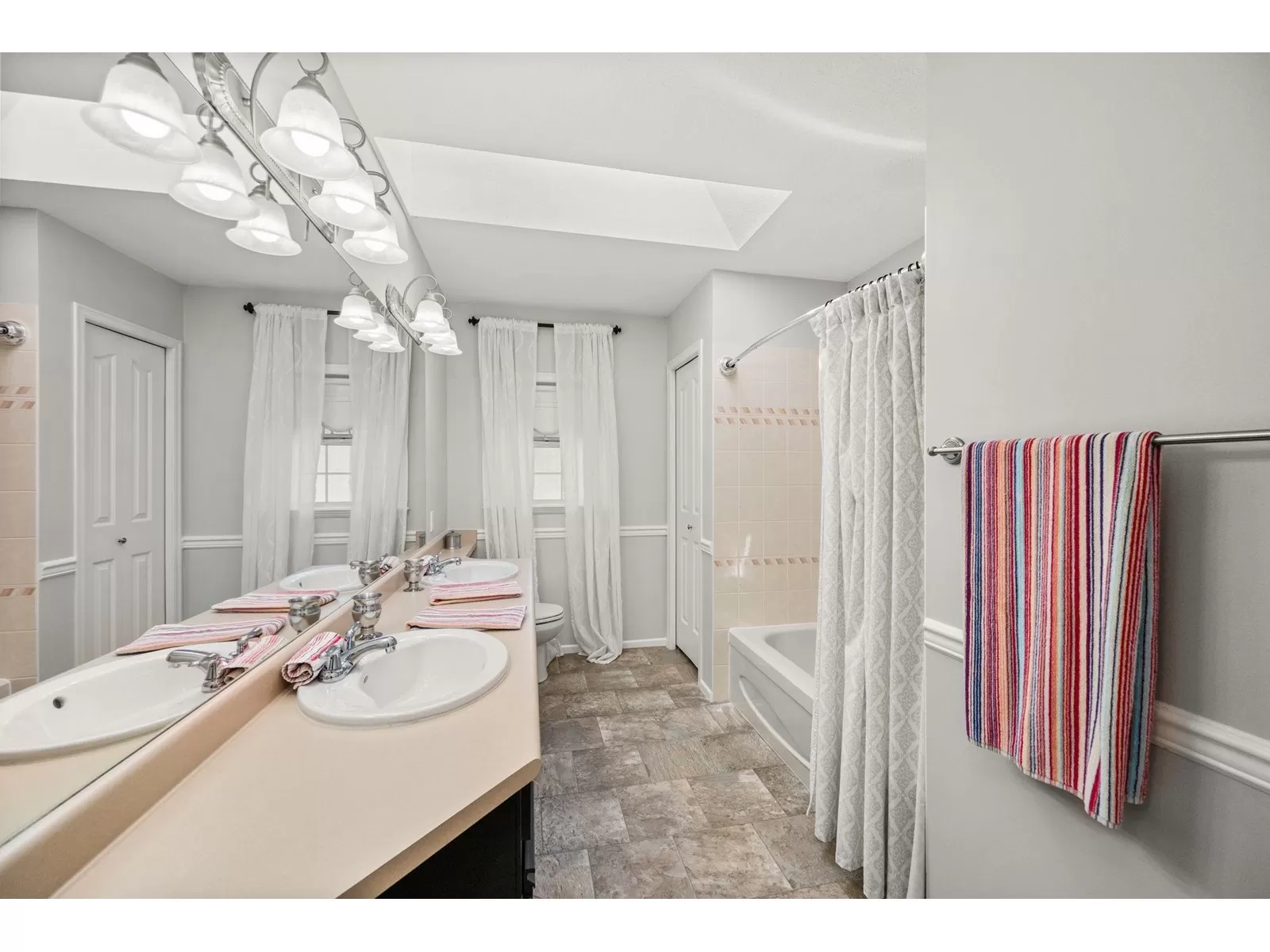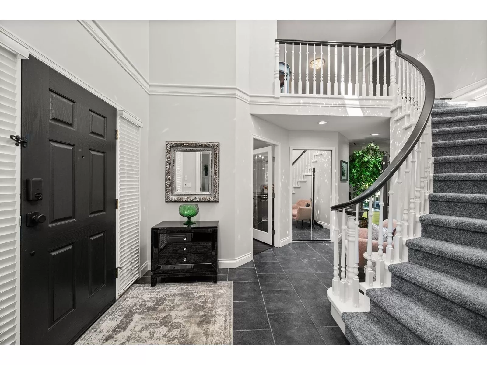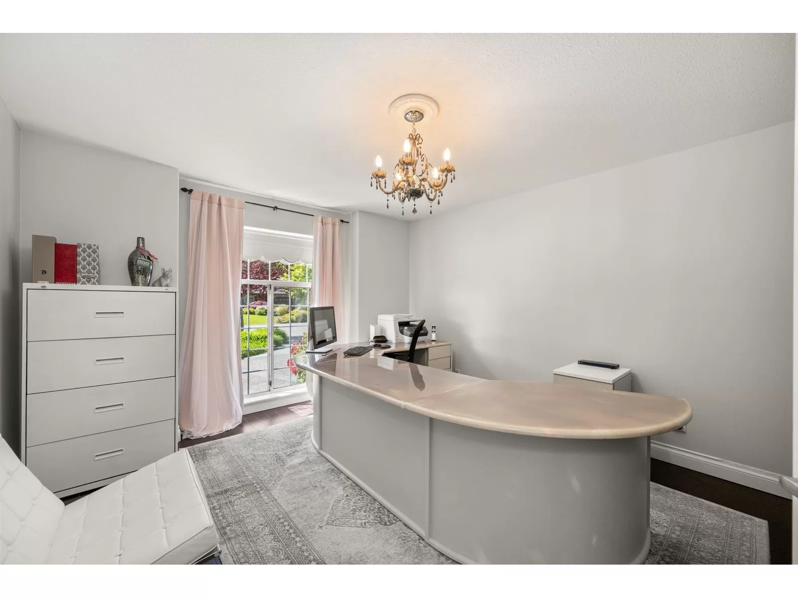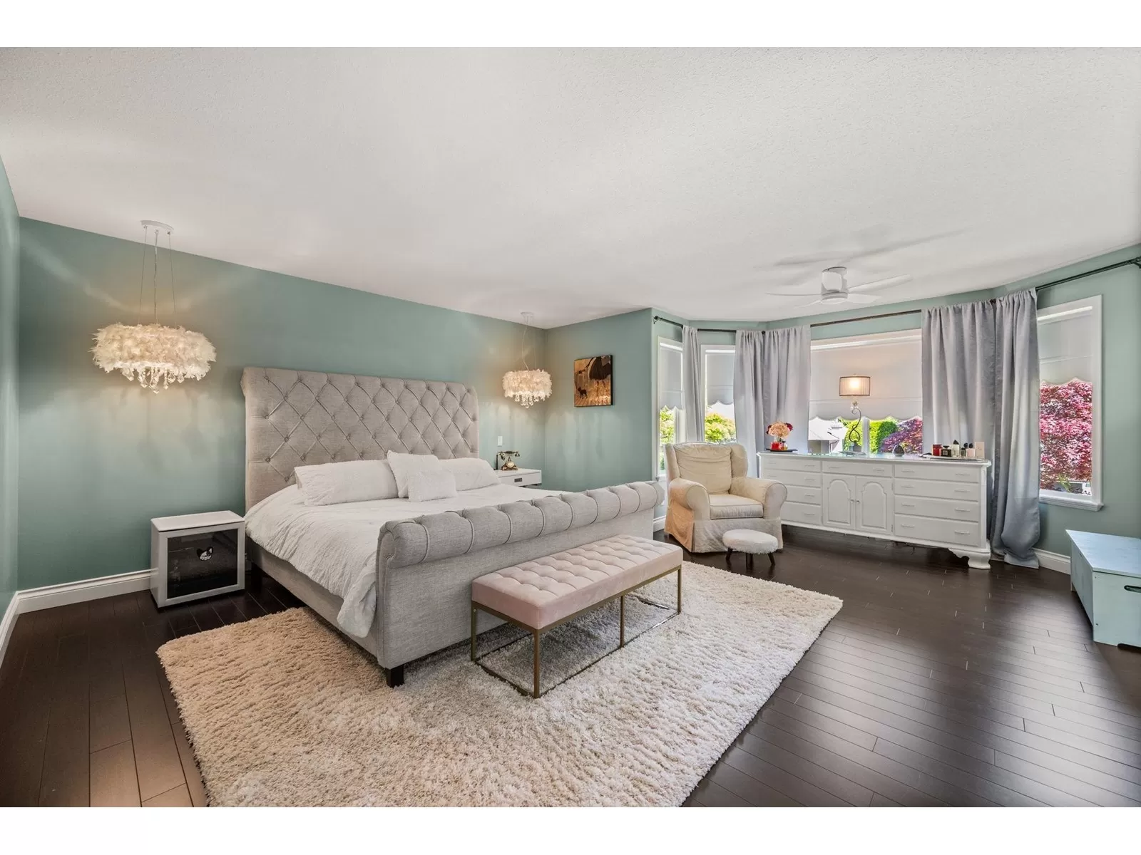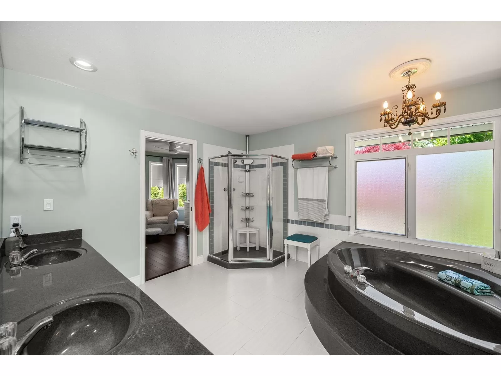 Bell Park South. Modern decor, well-maintained, sought after executive 3,440 sq. ft. two level plan. Open main floor layout, vaulted ceilings, sky lights, office, plus 5th bedroom or games with ensuite. Upper level 4 bedrooms and 3 baths, includes primary suite. Covered rear patio, commercial electric heater, outdoor mural. Features updated asphalt roof, gutters, concrete driveway, 2 gas fireplaces, tile entrance, wide plank laminate floor, modern light fixtures, chef's size white oak kitchen, 5 burner gas cook top. 17,155 sq. ft. sunny private corner lot, circular extra wide driveway, triple garage, epoxy floor, powered RV access. Multigenerational opportunity: R2 Zoning includes secondary suite, coach house or garden suite. Steps to Ray Shepherd, Elgin Schools, White Rock promenade. (id:27476)