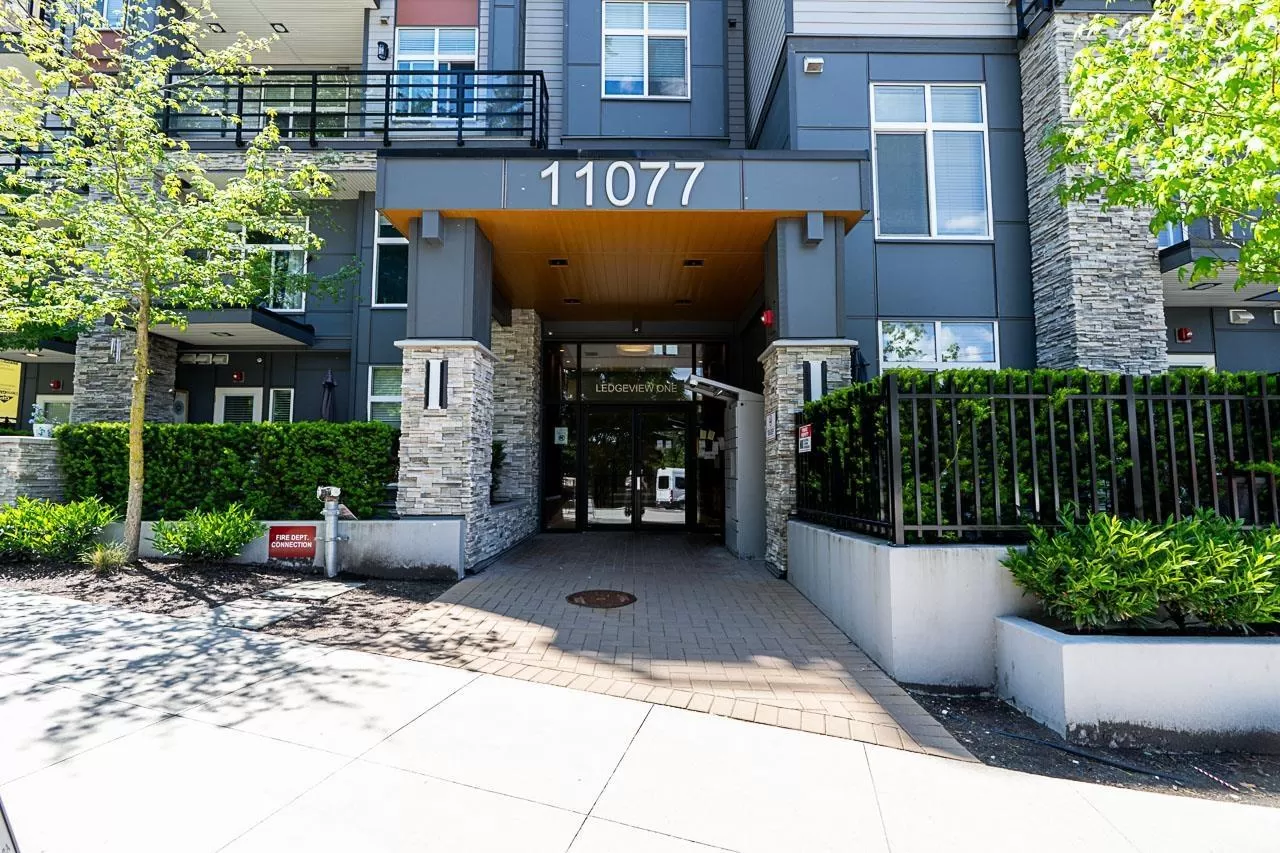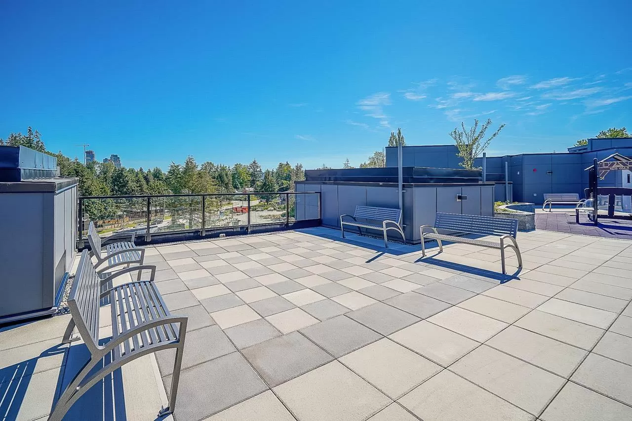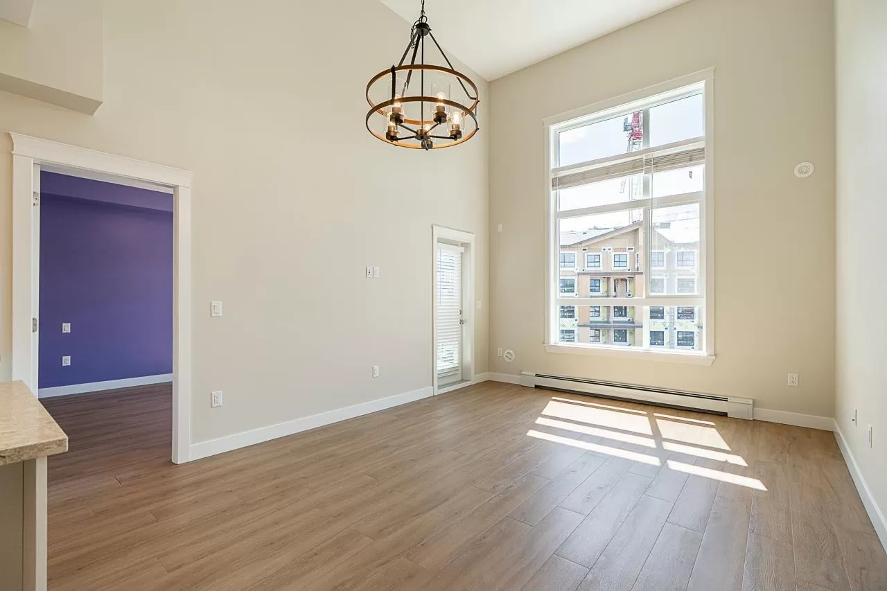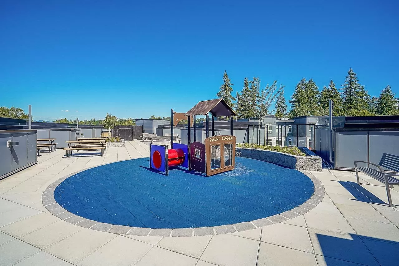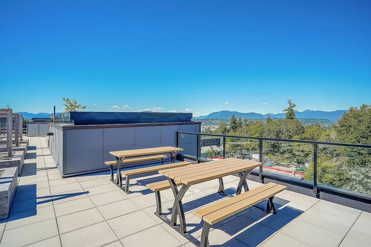 Welcome to Ledgeview one of kind Top floor unit on the 5th floor. 2 bedrm/2 bathrm with 15' Vaulted ceilings livingrm & 9' throughout which has a lot to offer. Gas Stove has air fry & microwave hood fan. Wood grain vinyl plank flooring throughout with heated tile floors in the bathrms. Primary bedrm has built in wall safe & lrge shower ensuite with walkin closet. Second bedrm is on opposite side of the unit. Portable a/c vent with dedicated power outlet in livingrm, BBQ Gas outlet on deck & one parking spot with Pre-wired Ev charge. Lots of ametities roof top garden with a play area/bench seating & picnic tables, Gym, Bike storage & amenity rm. Within walking distance to skytrain and bus stop right out front. Close to shopping. Do not miss this opportunity to view. (id:27476)