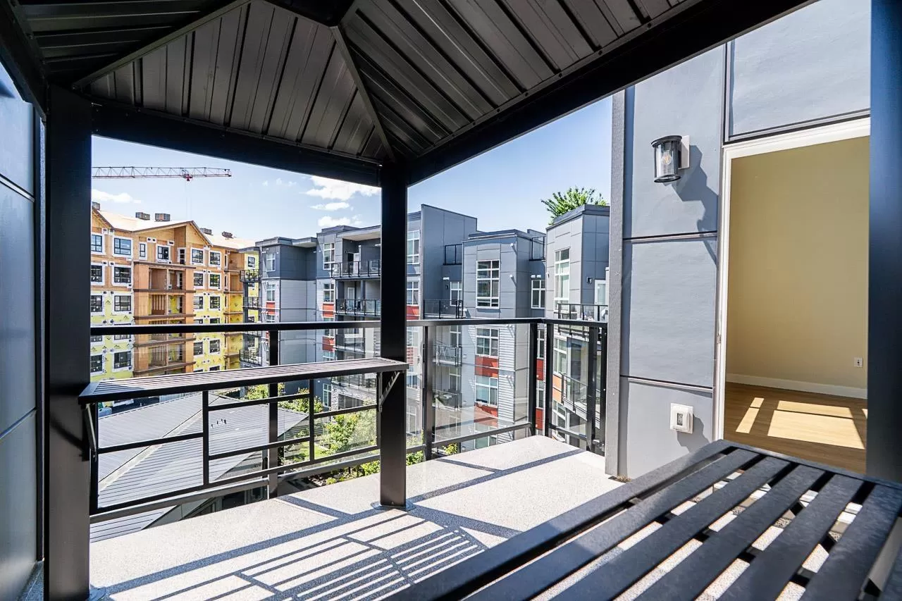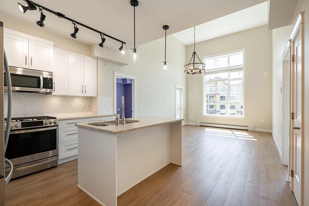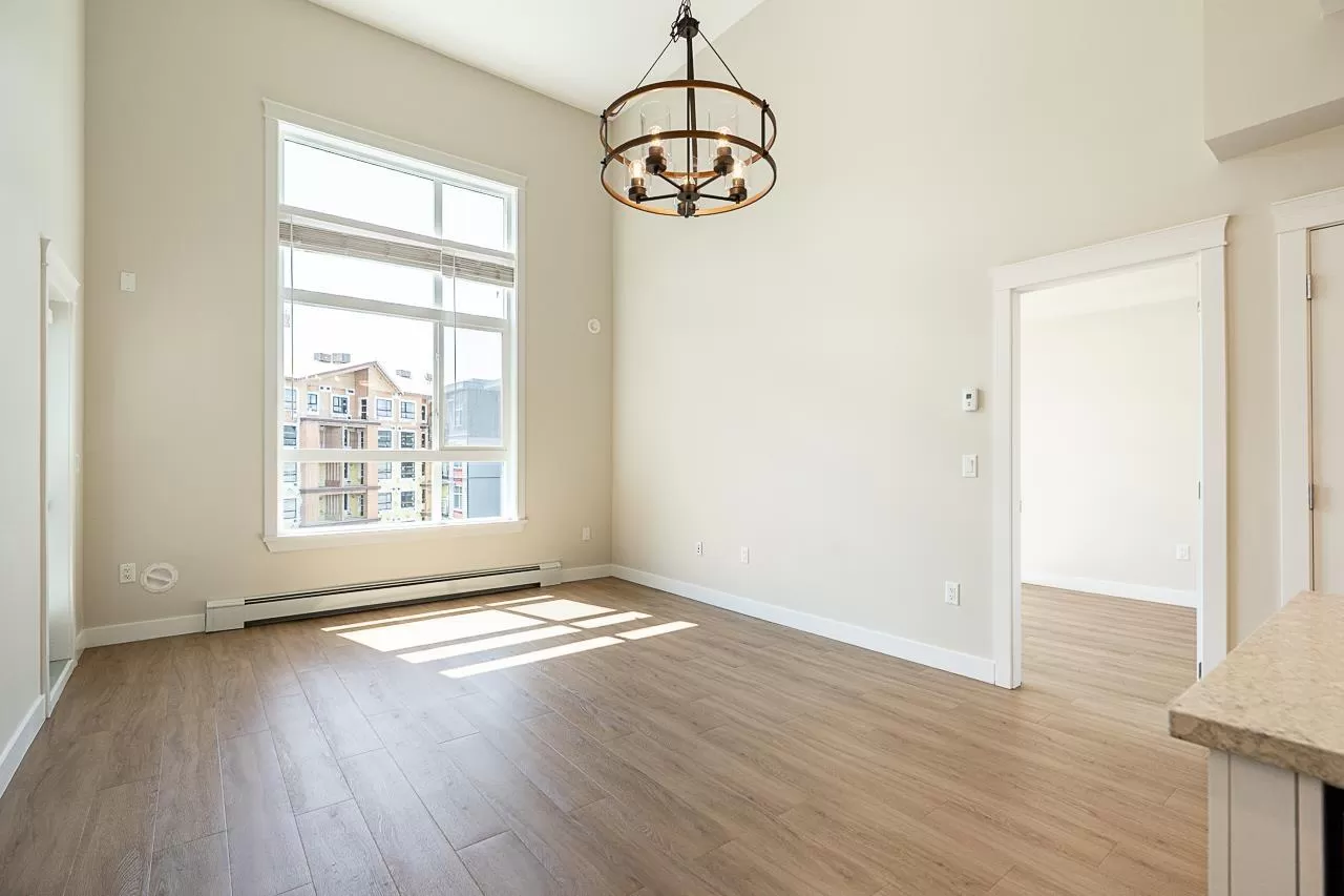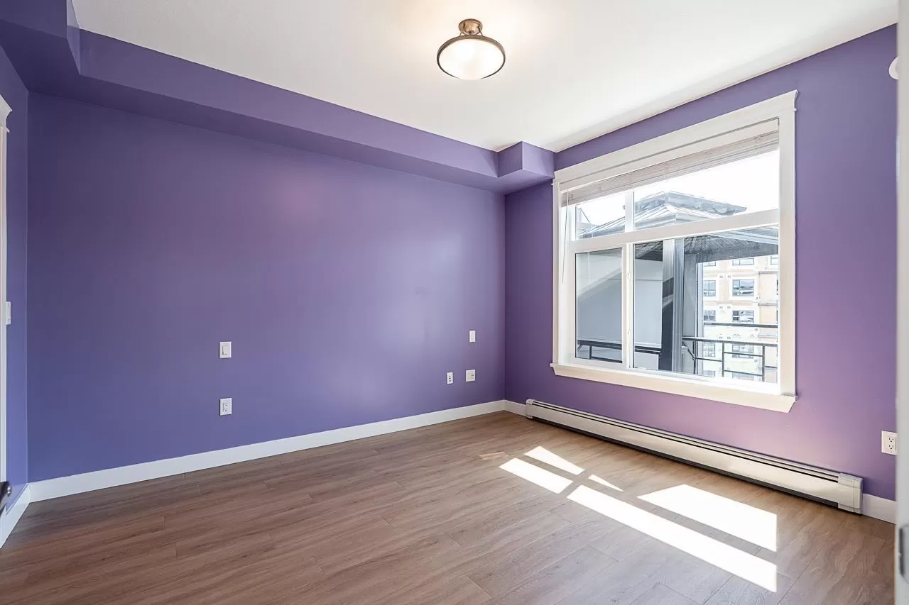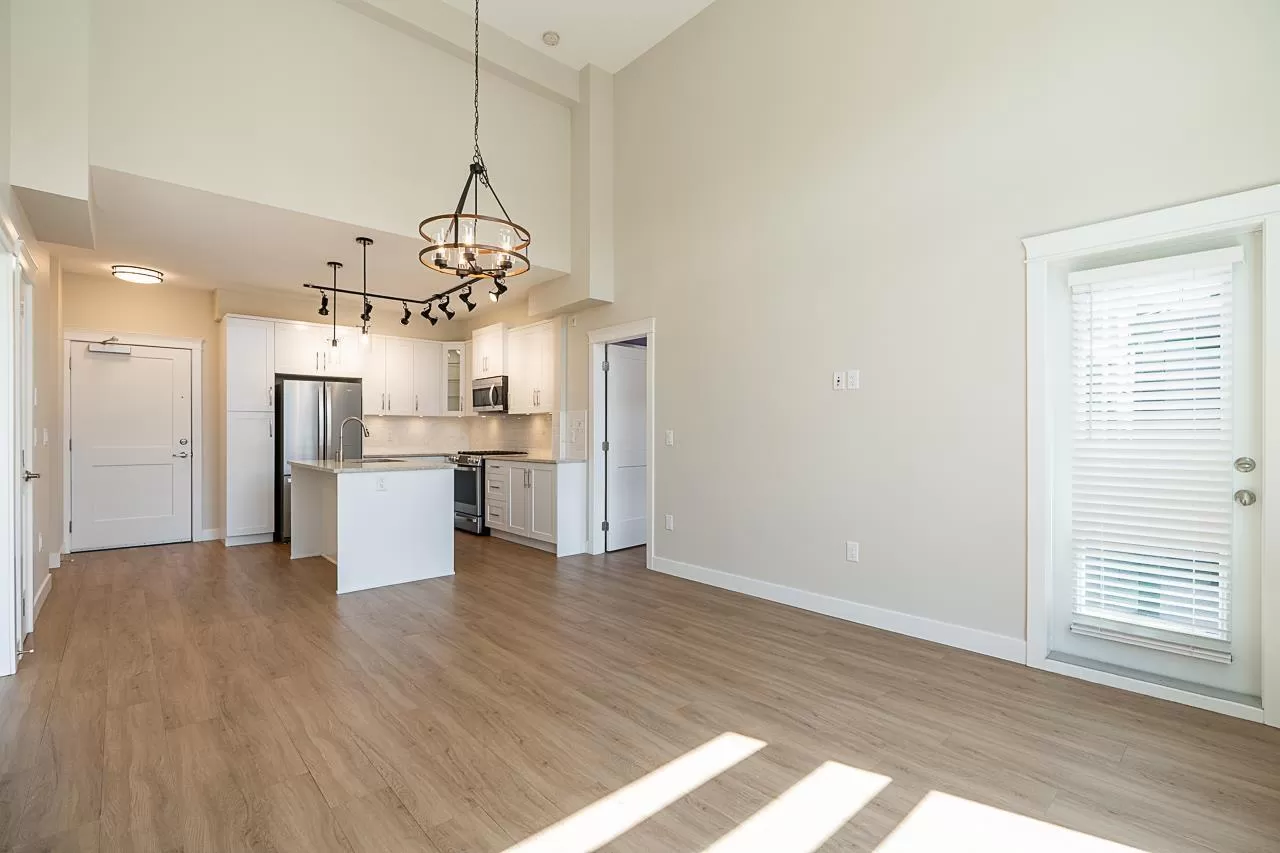 Welcome to Ledgeview one of kind Top floor unit on the 5th floor. 2 bedrm/2 bathrm with 15' Vaulted ceilings livingrm & 9' throughout which has a lot to offer. Gas Stove has air fry & microwave hood fan. Wood grain vinyl plank flooring throughout with heated tile floors in the bathrms. Primary bedrm has built in wall safe & lrge shower ensuite with walkin closet. Second bedrm is on opposite side of the unit. Portable a/c vent with dedicated power outlet in livingrm, BBQ Gas outlet on deck & one parking spot with Pre-wired Ev charge. Lots of ametities roof top garden with a play area/bench seating & picnic tables, Gym, Bike storage & amenity rm. Within walking distance to skytrain and bus stop right out front. Close to shopping. Do not miss this opportunity to view. (id:27476)