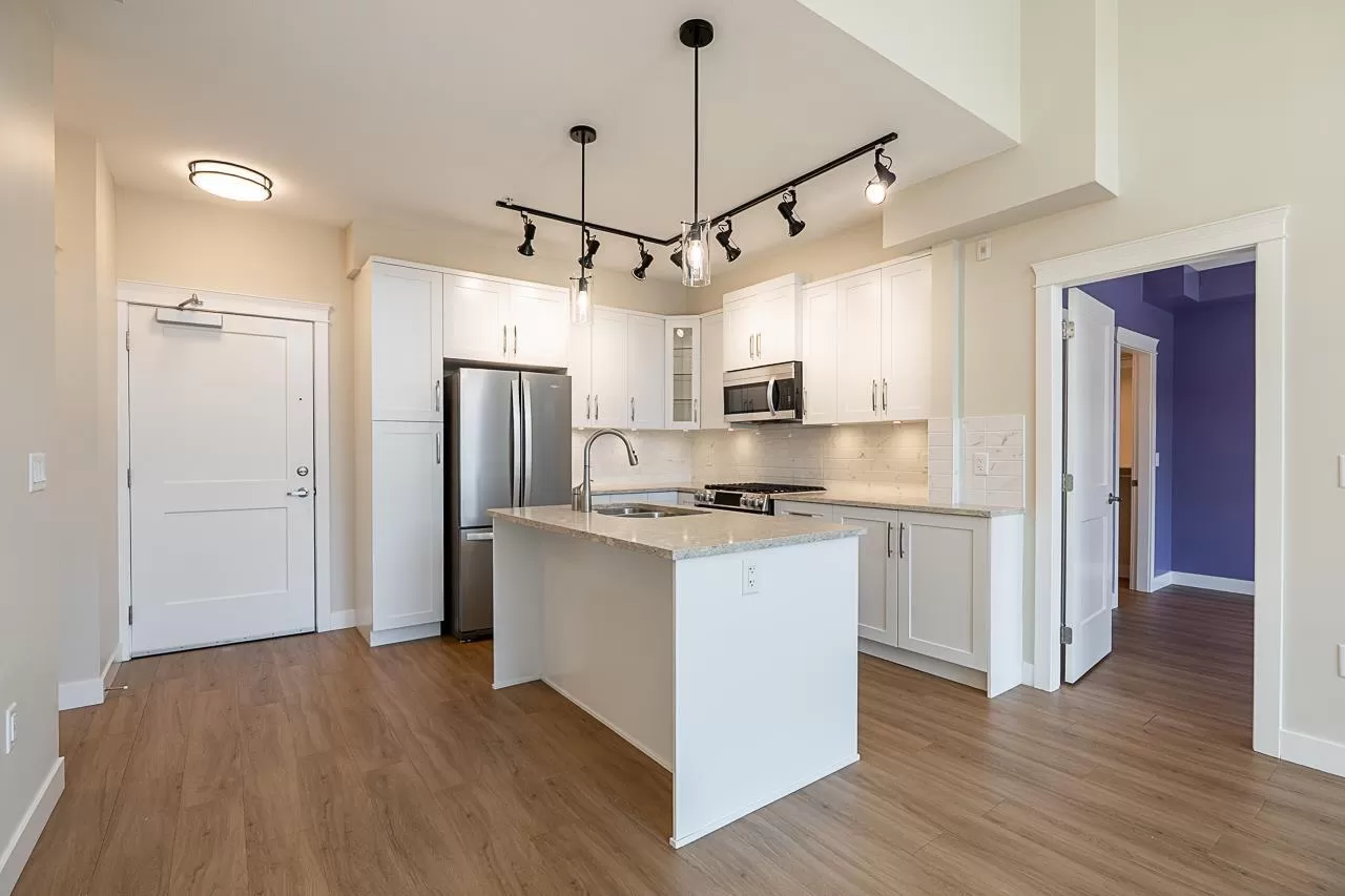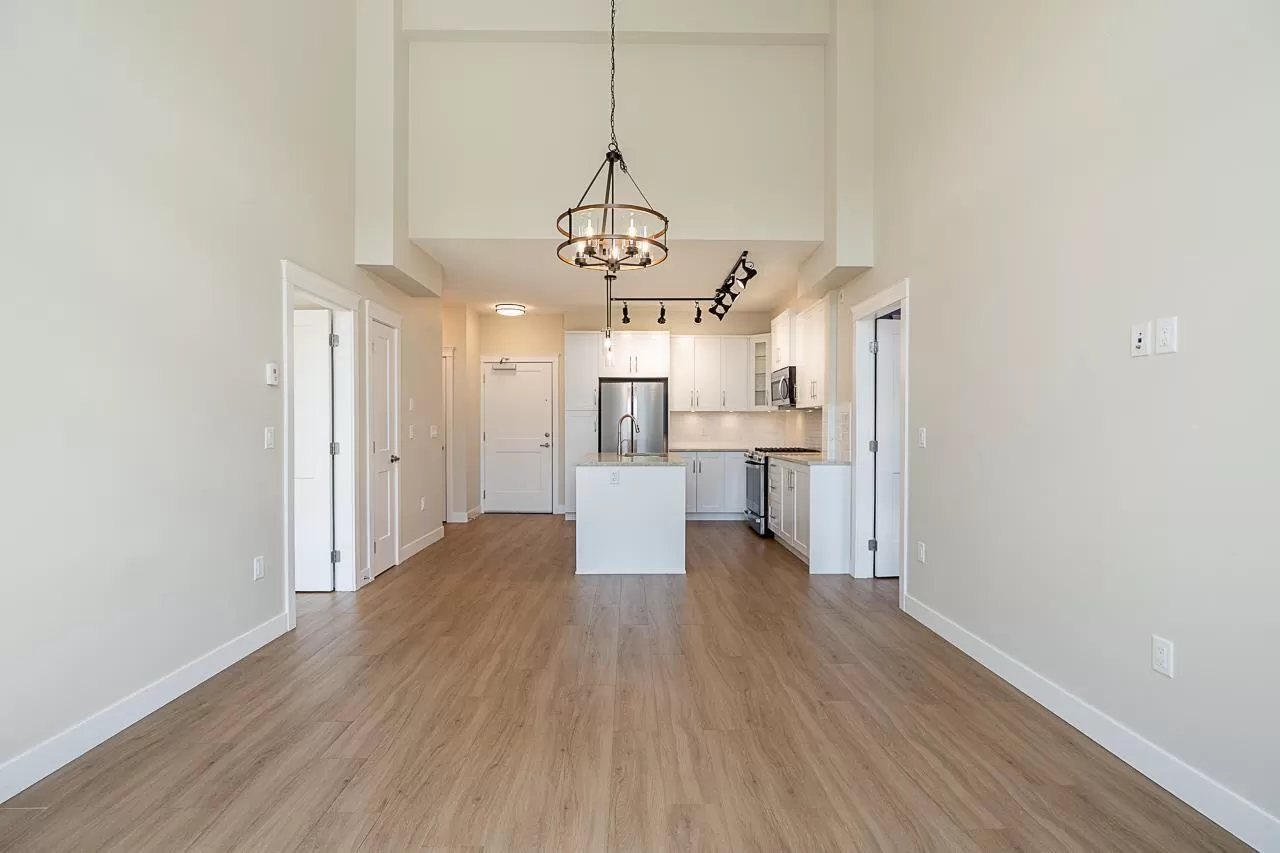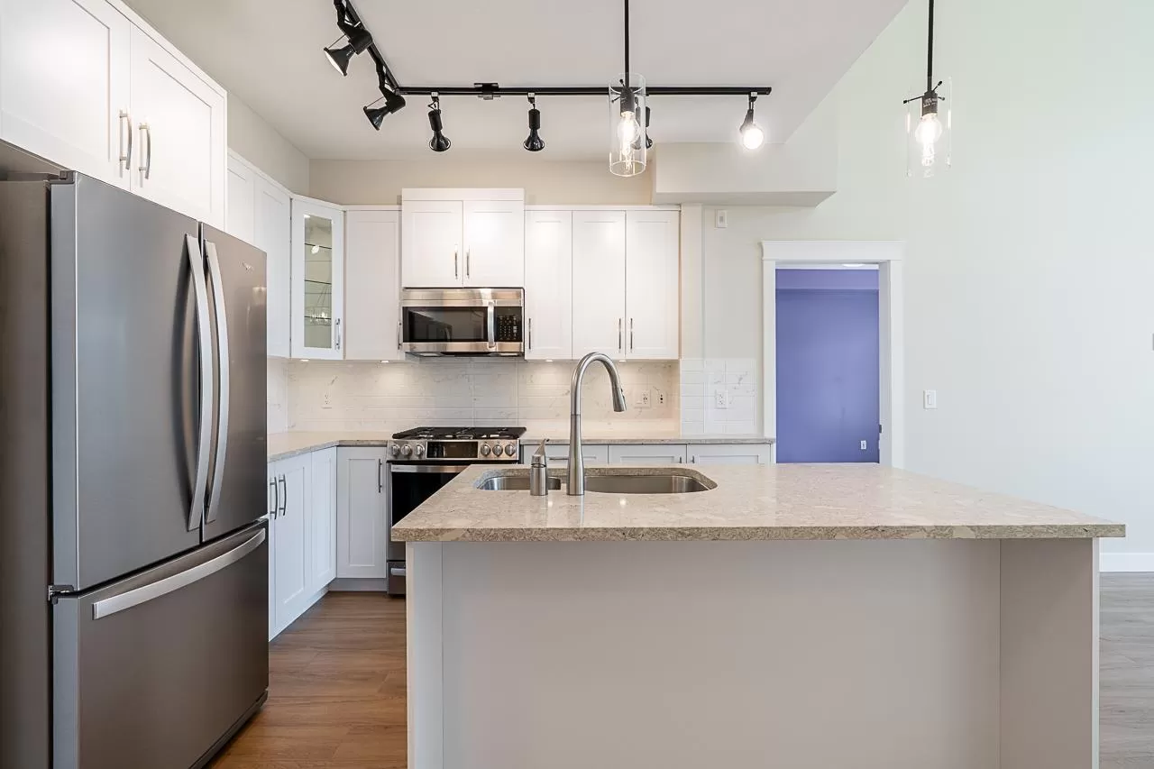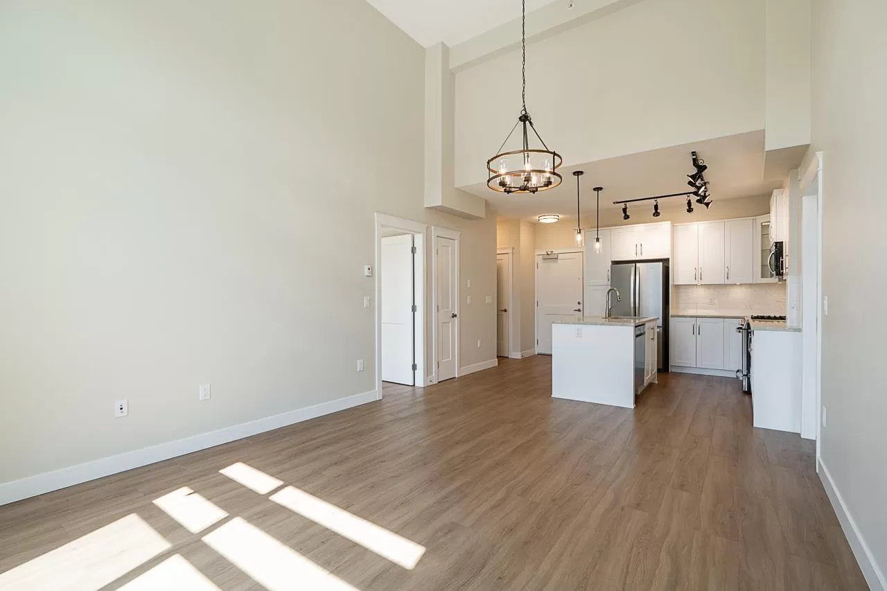 Welcome to Ledgeview one of kind Top floor unit on the 5th floor. 2 bedrm/2 bathrm with 15' Vaulted ceilings livingrm & 9' throughout which has a lot to offer. Gas Stove has air fry & microwave hood fan. Wood grain vinyl plank flooring throughout with heated tile floors in the bathrms. Primary bedrm has built in wall safe & lrge shower ensuite with walkin closet. Second bedrm is on opposite side of the unit. Portable a/c vent with dedicated power outlet in livingrm, BBQ Gas outlet on deck & one parking spot with Pre-wired Ev charge. Lots of ametities roof top garden with a play area/bench seating & picnic tables, Gym, Bike storage & amenity rm. Within walking distance to skytrain and bus stop right out front. Close to shopping. Do not miss this opportunity to view. (id:27476)