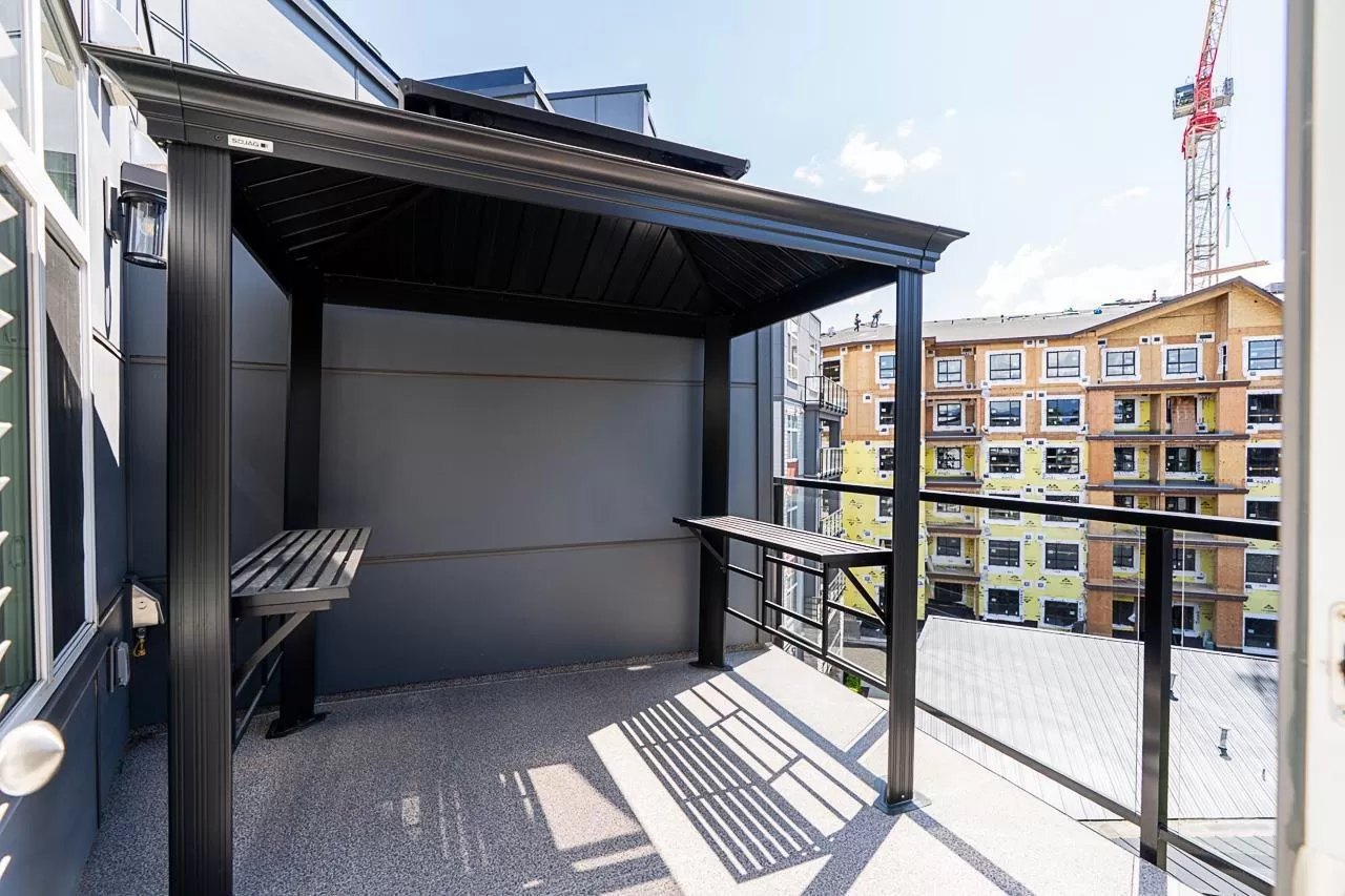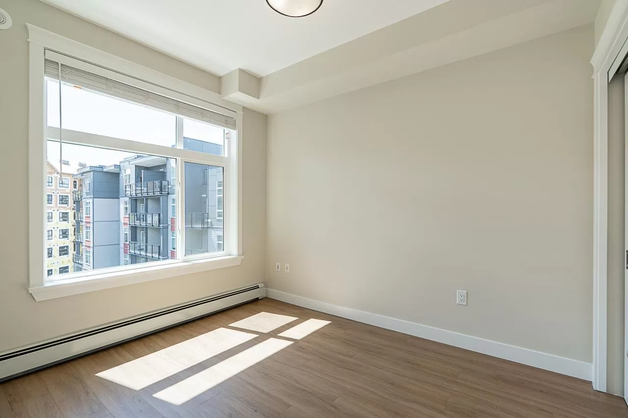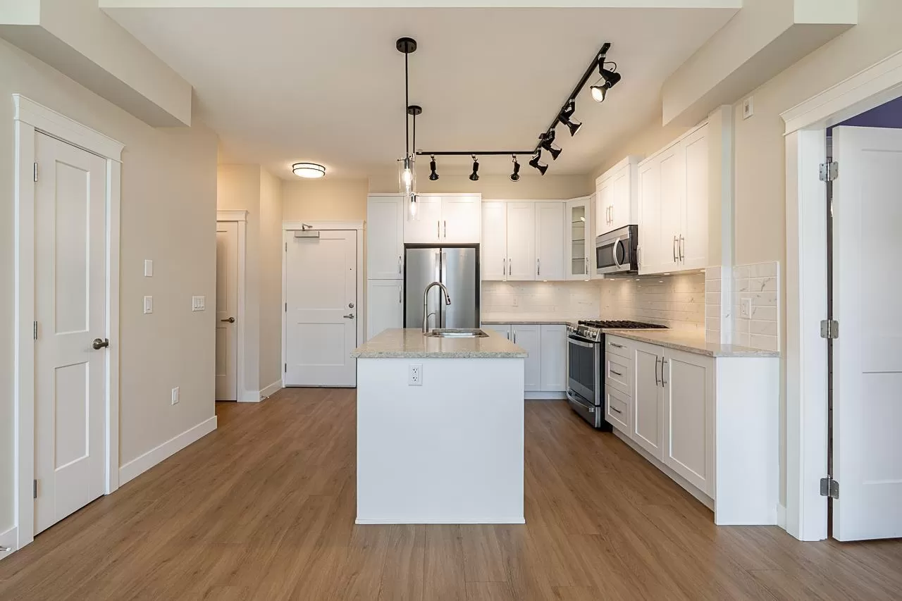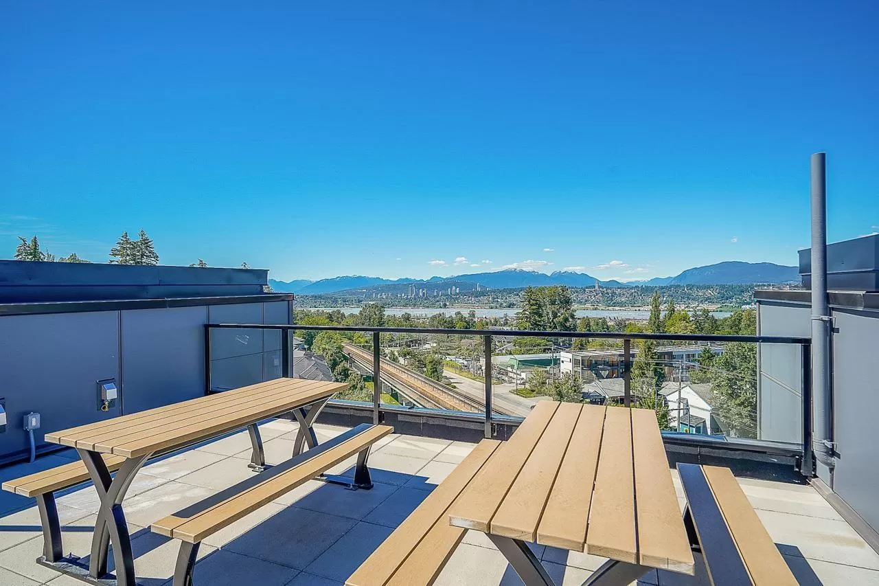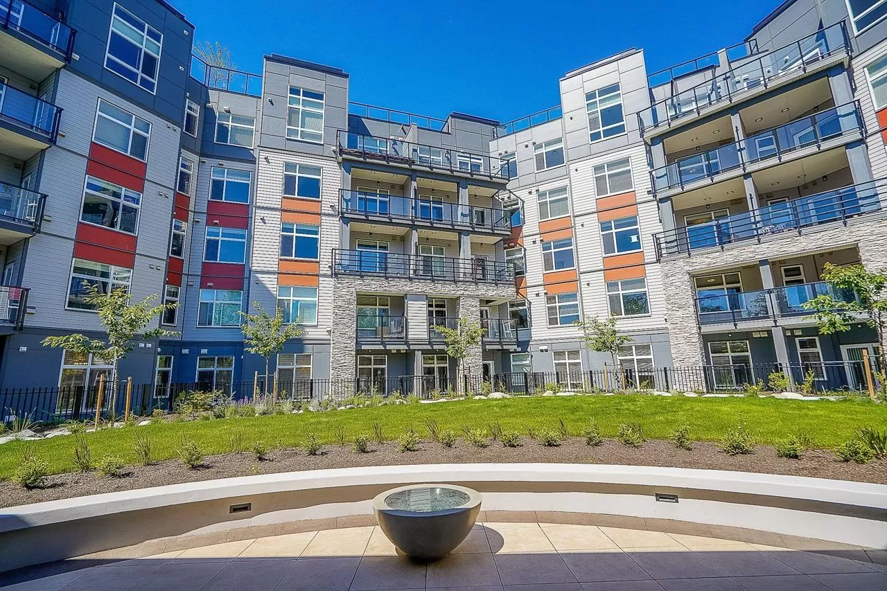Welcome to Ledgeview one of kind Top floor unit on the 5th floor. 2 bedrm/2 bathrm with 15' Vaulted ceilings livingrm & 9' throughout which has a lot to offer. Gas Stove has air fry & microwave hood fan. Wood grain vinyl plank flooring throughout with heated tile floors in the bathrms. Primary bedrm has built in wall safe & lrge shower ensuite with walkin closet. Second bedrm is on opposite side of the unit. Portable a/c vent with dedicated power outlet in livingrm, BBQ Gas outlet on deck & one parking spot with Pre-wired Ev charge. Lots of ametities roof top garden with a play area/bench seating & picnic tables, Gym, Bike storage & amenity rm. Within walking distance to skytrain and bus stop right out front. Close to shopping. Do not miss this opportunity to view. (id:27476)