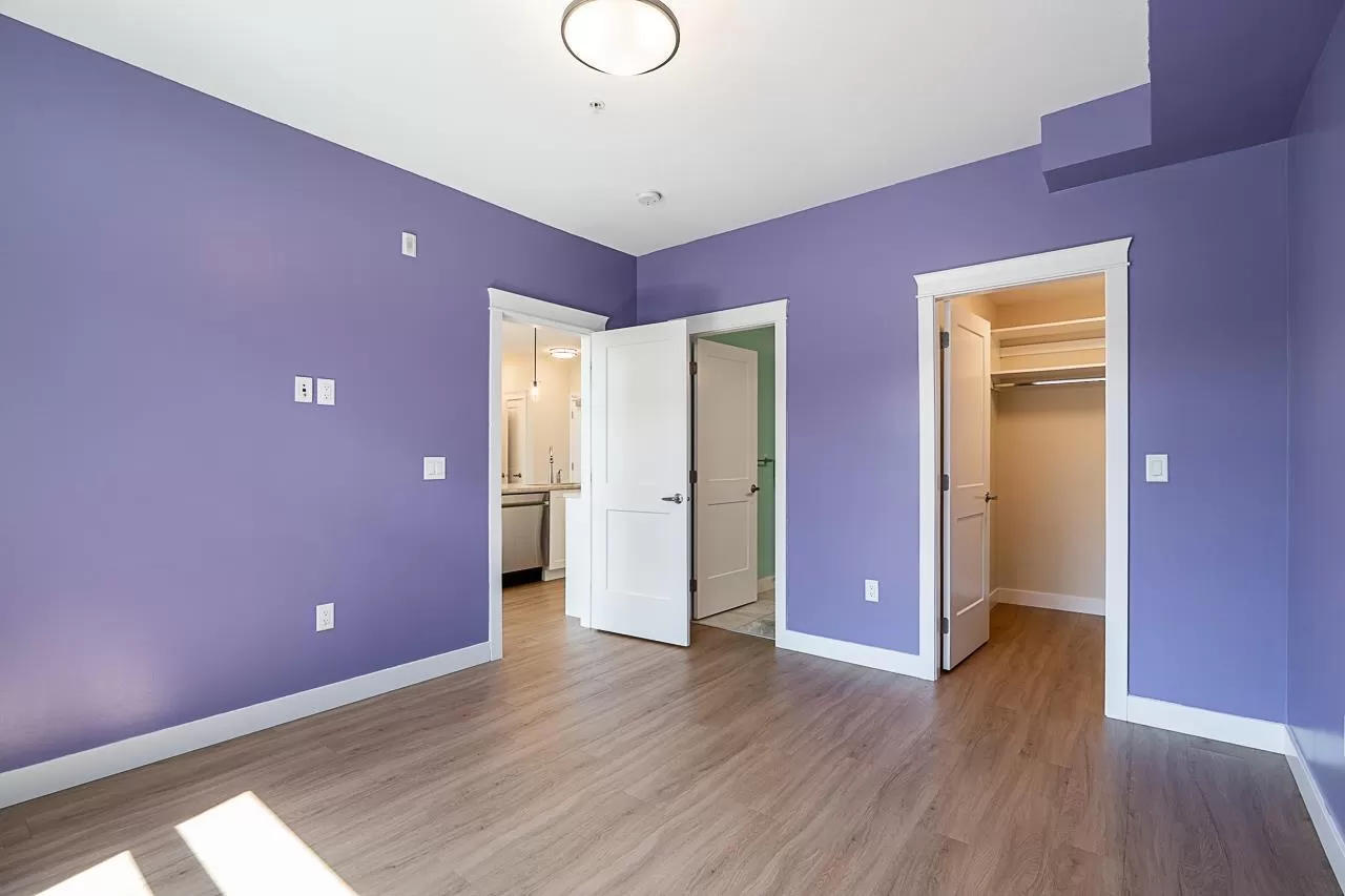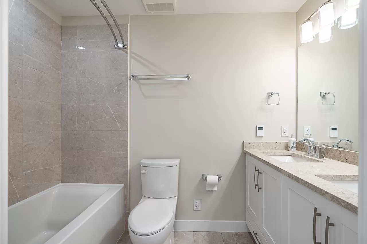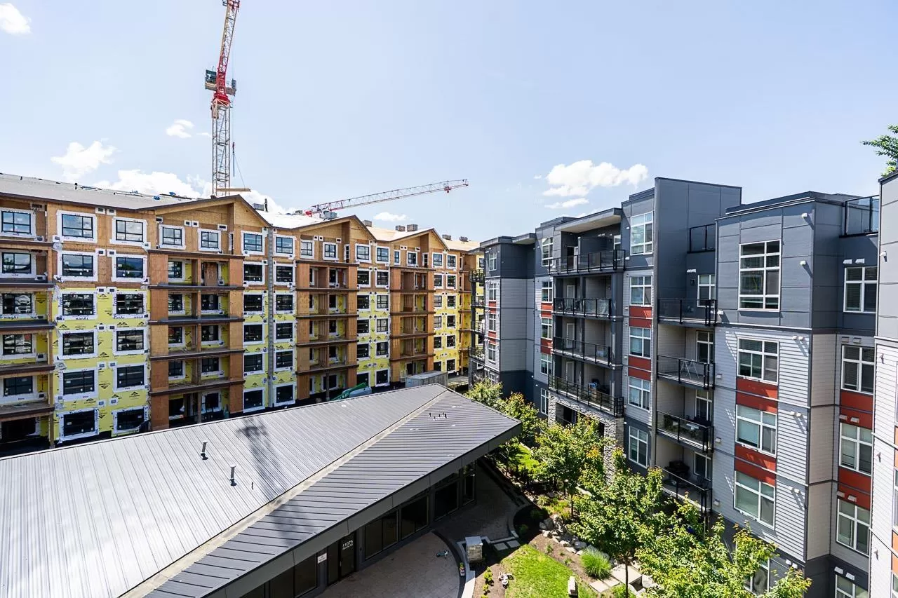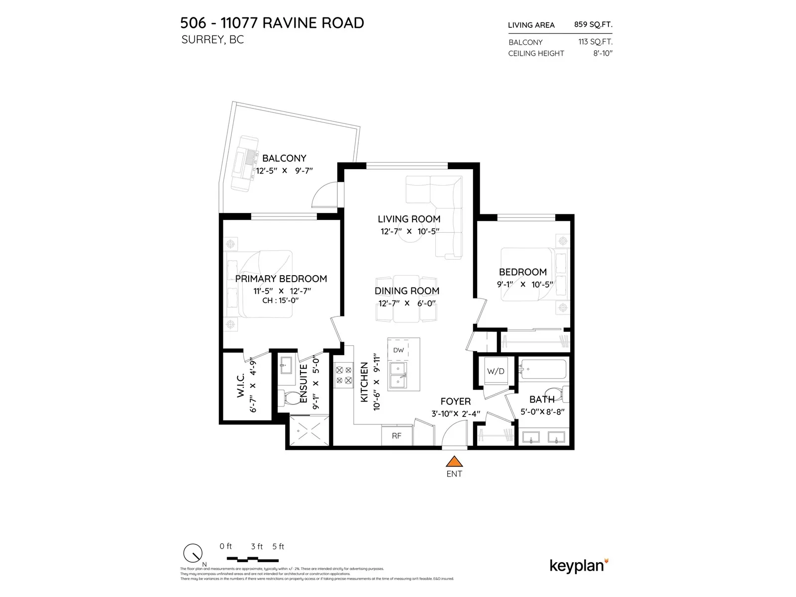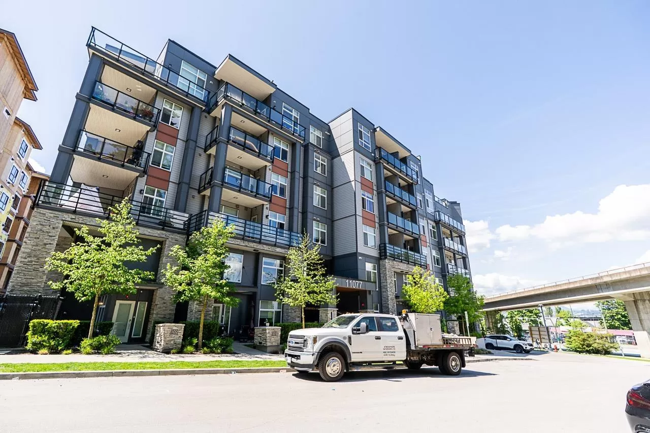 Welcome to Ledgeview one of kind Top floor unit on the 5th floor. 2 bedrm/2 bathrm with 15' Vaulted ceilings livingrm & 9' throughout which has a lot to offer. Gas Stove has air fry & microwave hood fan. Wood grain vinyl plank flooring throughout with heated tile floors in the bathrms. Primary bedrm has built in wall safe & lrge shower ensuite with walkin closet. Second bedrm is on opposite side of the unit. Portable a/c vent with dedicated power outlet in livingrm, BBQ Gas outlet on deck & one parking spot with Pre-wired Ev charge. Lots of ametities roof top garden with a play area/bench seating & picnic tables, Gym, Bike storage & amenity rm. Within walking distance to skytrain and bus stop right out front. Close to shopping. Do not miss this opportunity to view. (id:27476)