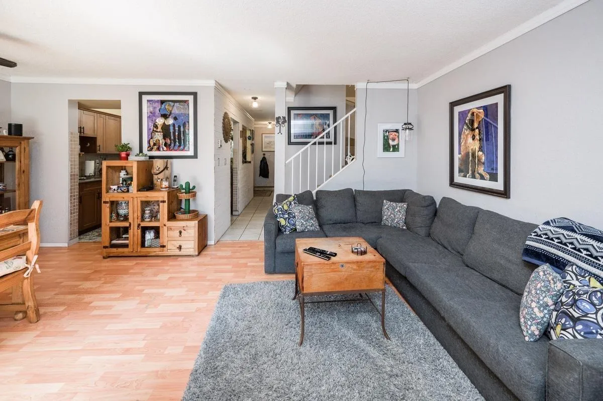 Beautiful, bright corner end unit in popular Timberlane. Open kitchen with maple cabinets, Bosch dishwasher, tile and laminate floors. Spacious living room opens to a private, fenced east-facing backyard. LG steam washer/dryer with extra storage in laundry. Main floor powder room. Upstairs offers 3 good-sized bedrooms, walk-in closet and a soaker tub in the main bath. Includes 2 parking spots. Pet-friendly (2 pets allowed) with no rental restrictions. Great location - minutes to Surrey Central Mall, Surrey Memorial, schools and King George Skytrain. (id:27476)