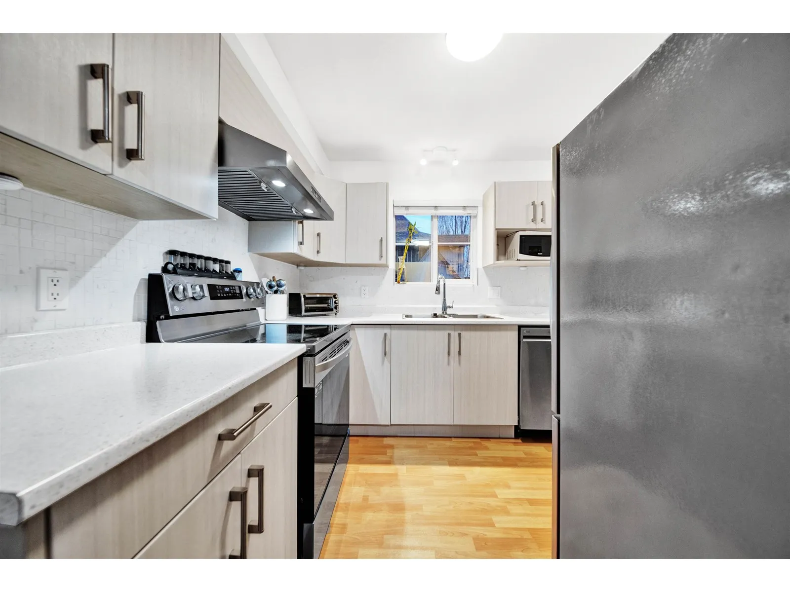 Welcome to STARWOOD. This Well Maintained Corner Townhome comes with 3 BED 3 BATH, Huge SIDE-BY-SIDE Double Garage with Window! Also has a 2 Visitor's parking just front of the Door step. Fully Renovated in 2022. All new appliances excluding fridge. In the heart of West Newton. Abundance of natural light. Minutes away from TAMANAWIS SECONDARY SCHOOL, Bus stop, highway 10. Main Level comes with Powder bathroom, Kitchen, Dining area and living area, Laundry Room, Laminate Flooring all around and also has a fireplace. Huge Sundek adjacent to the Kitchen. Top Floor Comes with 2 Full BATH, 3 BED includes Master BEDROOM. Must Visit, YOU WON'T BE DISAPPOINTED! (id:27476)