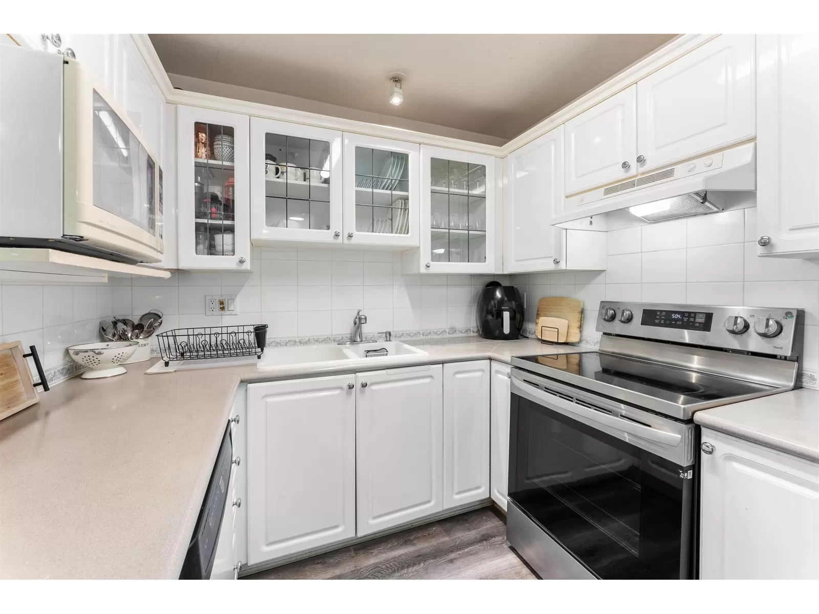 Welcome to this immaculate, Bright and spacious TOP FLOOR, END UNIT which offers 2 bed & 2 bath, Living room with vaulted ceiling and upgrades include flooring, washer/dryer, Dish washer, hot water tank, lighting and list goes on. Roof replaced in 2020. Unit comes with two parking spots. It is a well-maintained building with car wash in parkade. Spacious Storage locker. Close to Transit, Shopping, Restaurants, Banks, Library & Movie Theaters. All of this and yet the condo is tucked away in a quiet residential setting, pets allowed and strata fee includes Radiant-Heat and Gas Fireplace. Don't miss it!! (id:27476)