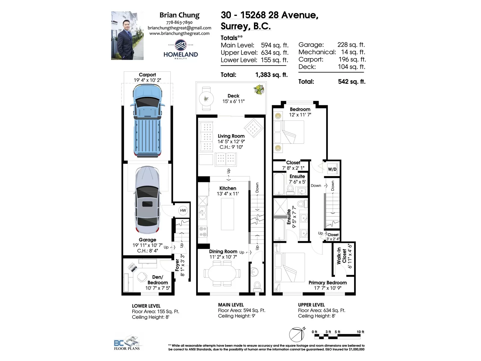 Welcome to "Old School"! This well-loved home offers a thoughtful floor plan with 2 bedrooms + den and 2.5 bathrooms. Enjoy a large kitchen with an island, spacious living and dining rooms, and a walk-in closet in the master bedroom. All bedrooms, including the den, comfortably fit queen-sized beds. Additional features include a sleek electric fireplace and a tandem garage. Conveniently located in South Surrey, you'll find excellent restaurants, shopping, transit, Sunnyside Park, and a swimming pool all within walking distance. Plus, enjoy easy access to Highway 99. This is a must-see! (id:27476)