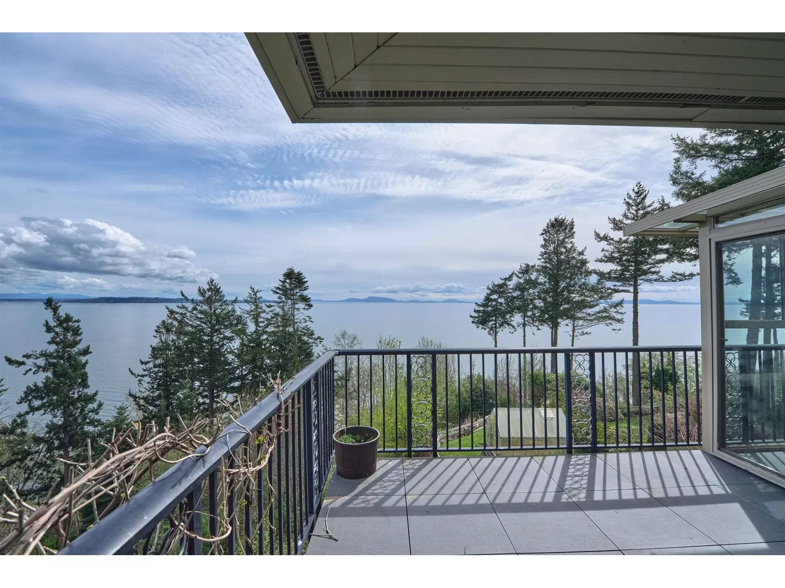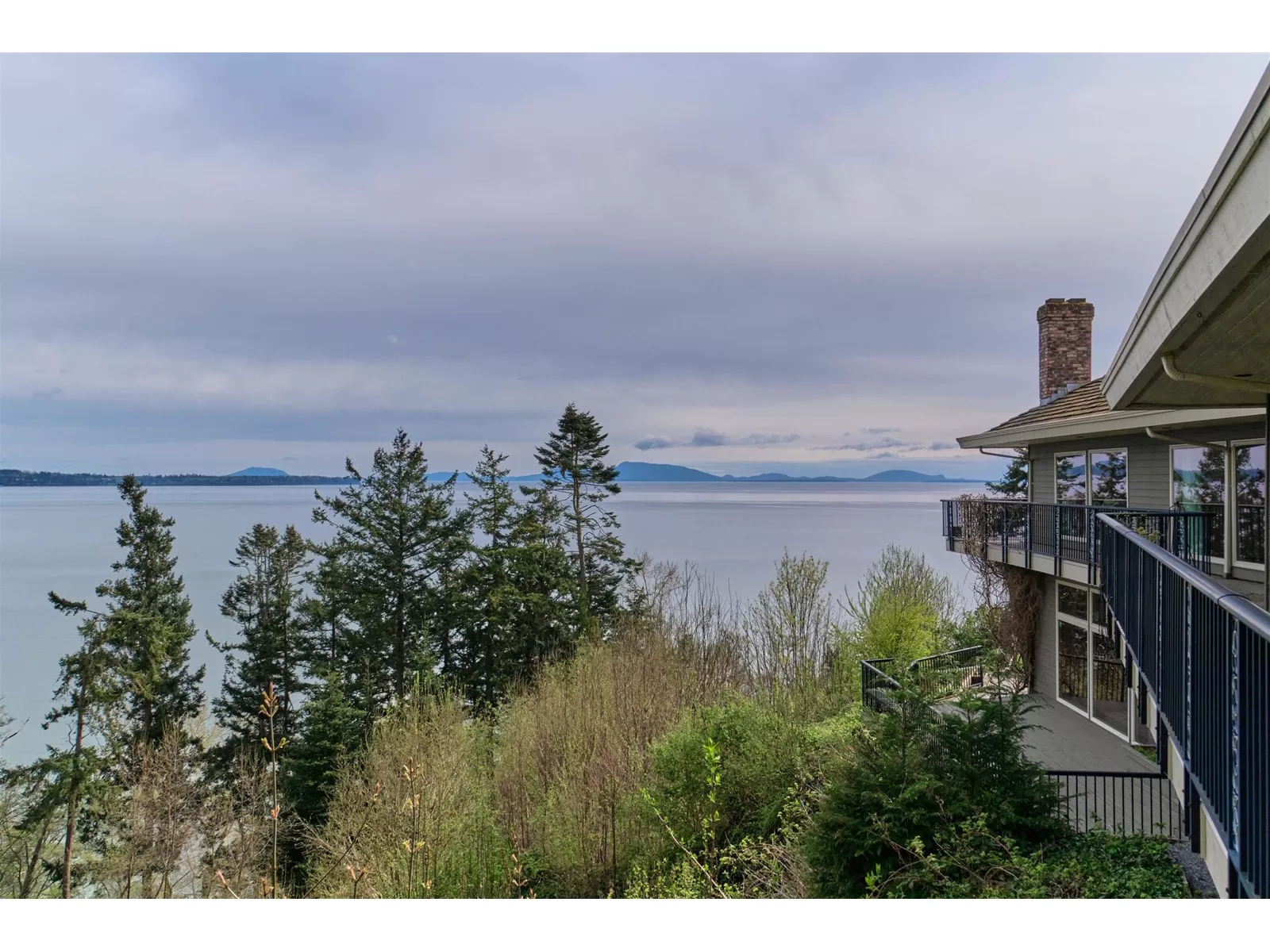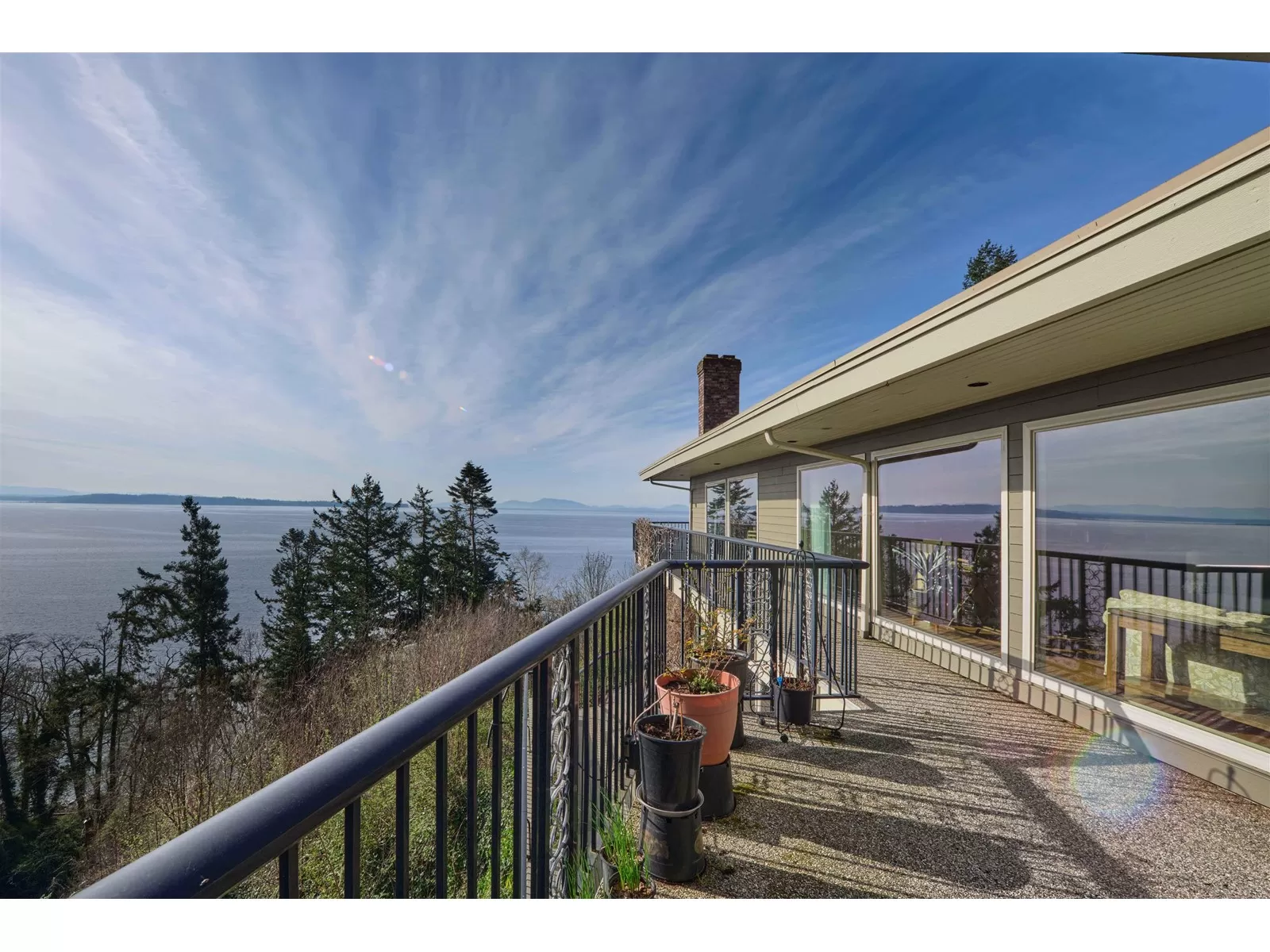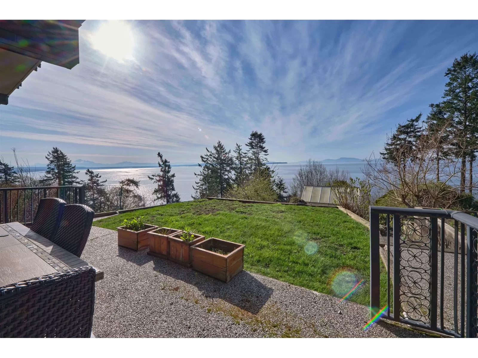 Discover this one-of-a-kind property offering unobstructed 180+ degree panoramic views stretching from White Rock to Mt. Baker to the Gulf Islands. A true West Coast retreat, this home delivers a private, resort-like with irreplaceable ocean vistas-complete with soaring eagles.Perched on a generous lot with subdivision potential, the home features a spacious, light-filled layout with vaulted ceilings, four skylights, and expansive sun-drenched deck space perfect for soaking in the scenery.Inside, you'll find a media room, games room, and a gourmet kitchen accented with rich California redwood, blending rustic charm with modern comfort. (id:27476)