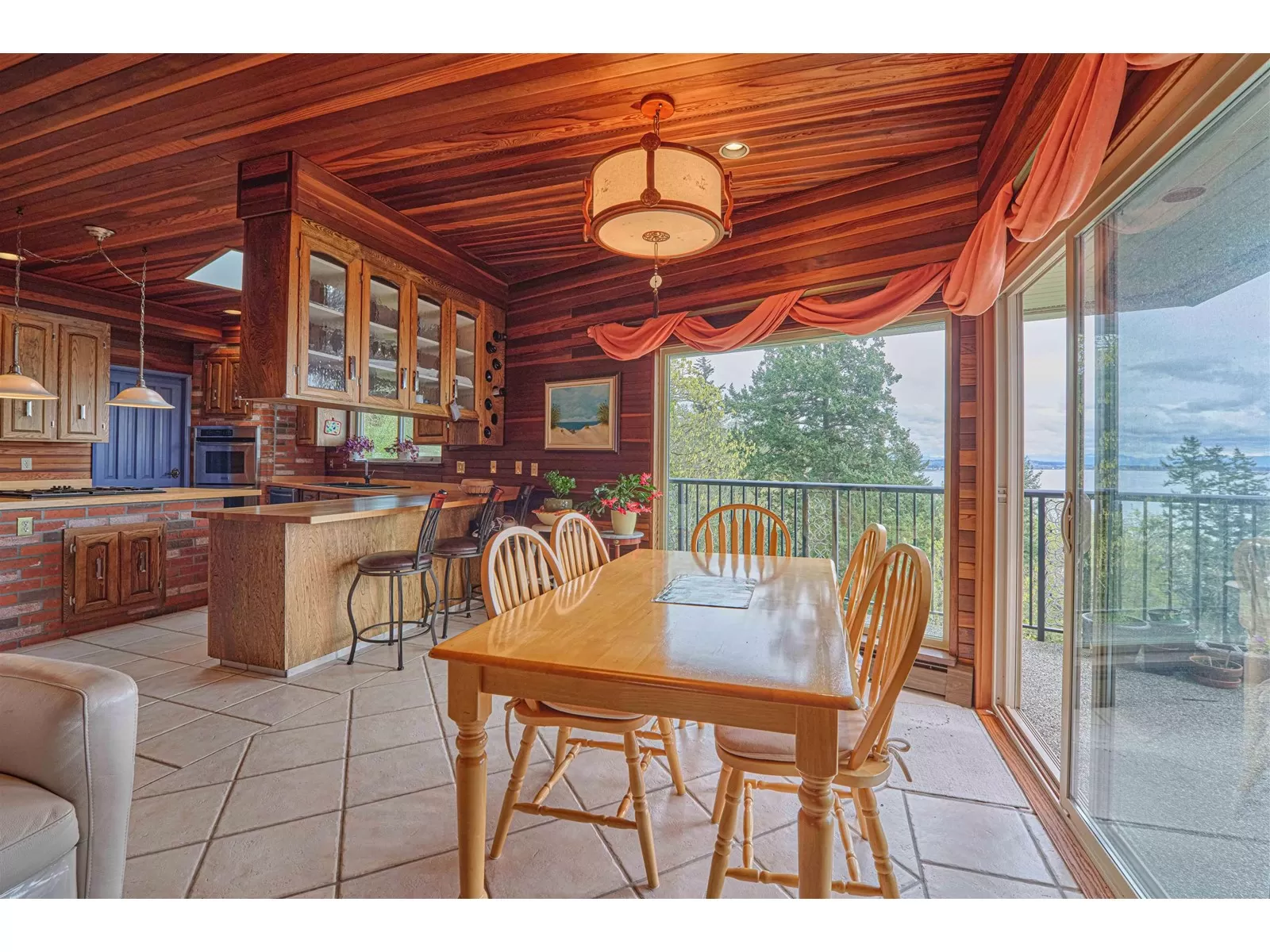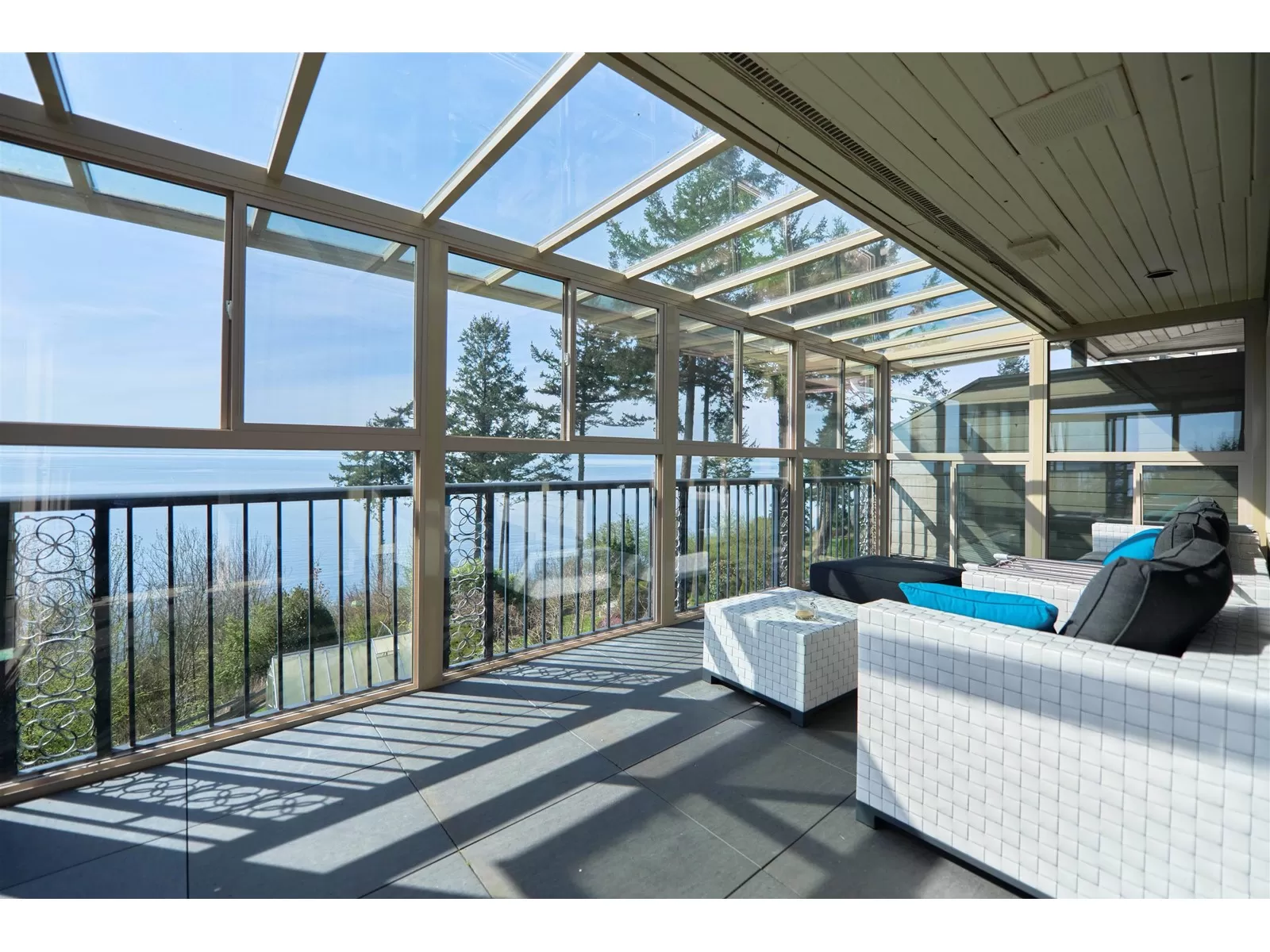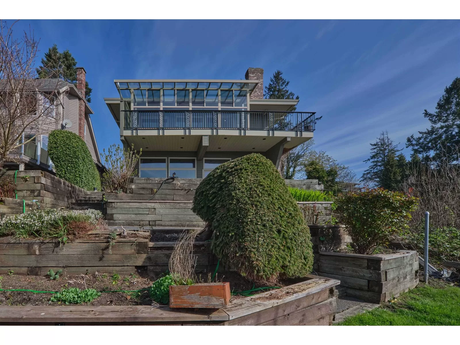 Discover this one-of-a-kind property offering unobstructed 180+ degree panoramic views stretching from White Rock to Mt. Baker to the Gulf Islands. A true West Coast retreat, this home delivers a private, resort-like with irreplaceable ocean vistas-complete with soaring eagles.Perched on a generous lot with subdivision potential, the home features a spacious, light-filled layout with vaulted ceilings, four skylights, and expansive sun-drenched deck space perfect for soaking in the scenery.Inside, you'll find a media room, games room, and a gourmet kitchen accented with rich California redwood, blending rustic charm with modern comfort. (id:27476)