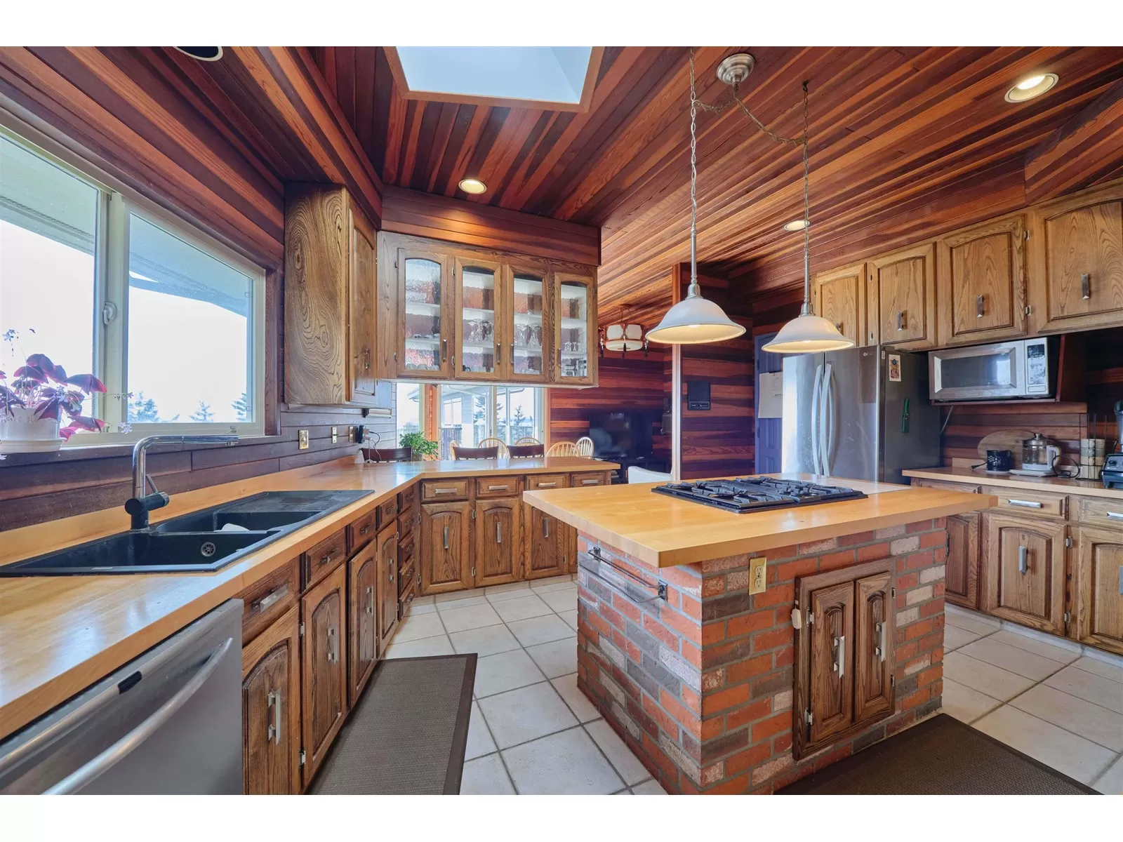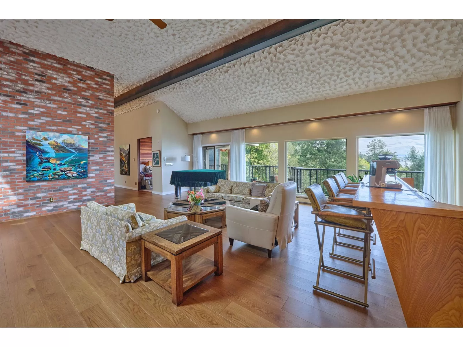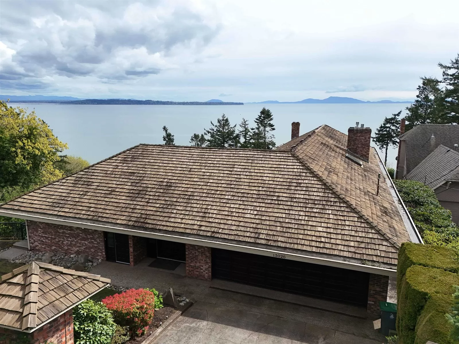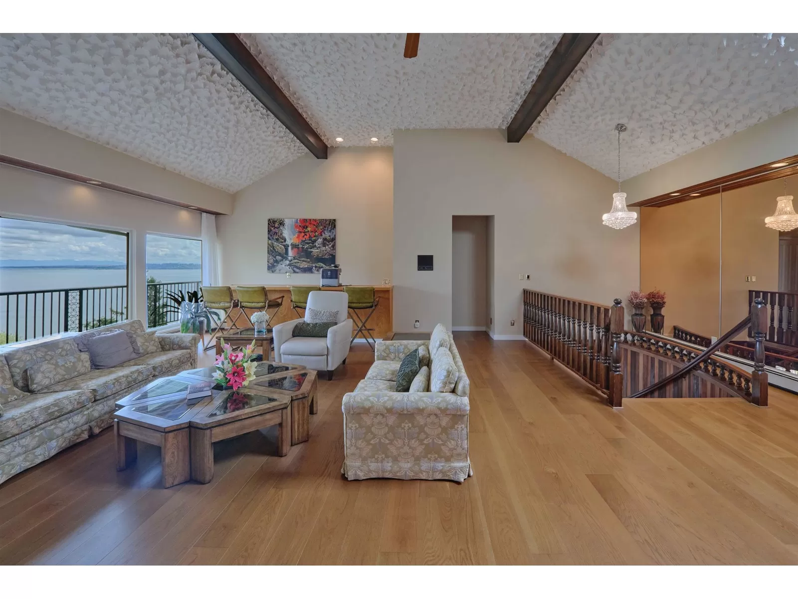 Discover this one-of-a-kind property offering unobstructed 180+ degree panoramic views stretching from White Rock to Mt. Baker to the Gulf Islands. A true West Coast retreat, this home delivers a private, resort-like with irreplaceable ocean vistas-complete with soaring eagles.Perched on a generous lot with subdivision potential, the home features a spacious, light-filled layout with vaulted ceilings, four skylights, and expansive sun-drenched deck space perfect for soaking in the scenery.Inside, you'll find a media room, games room, and a gourmet kitchen accented with rich California redwood, blending rustic charm with modern comfort. (id:27476)