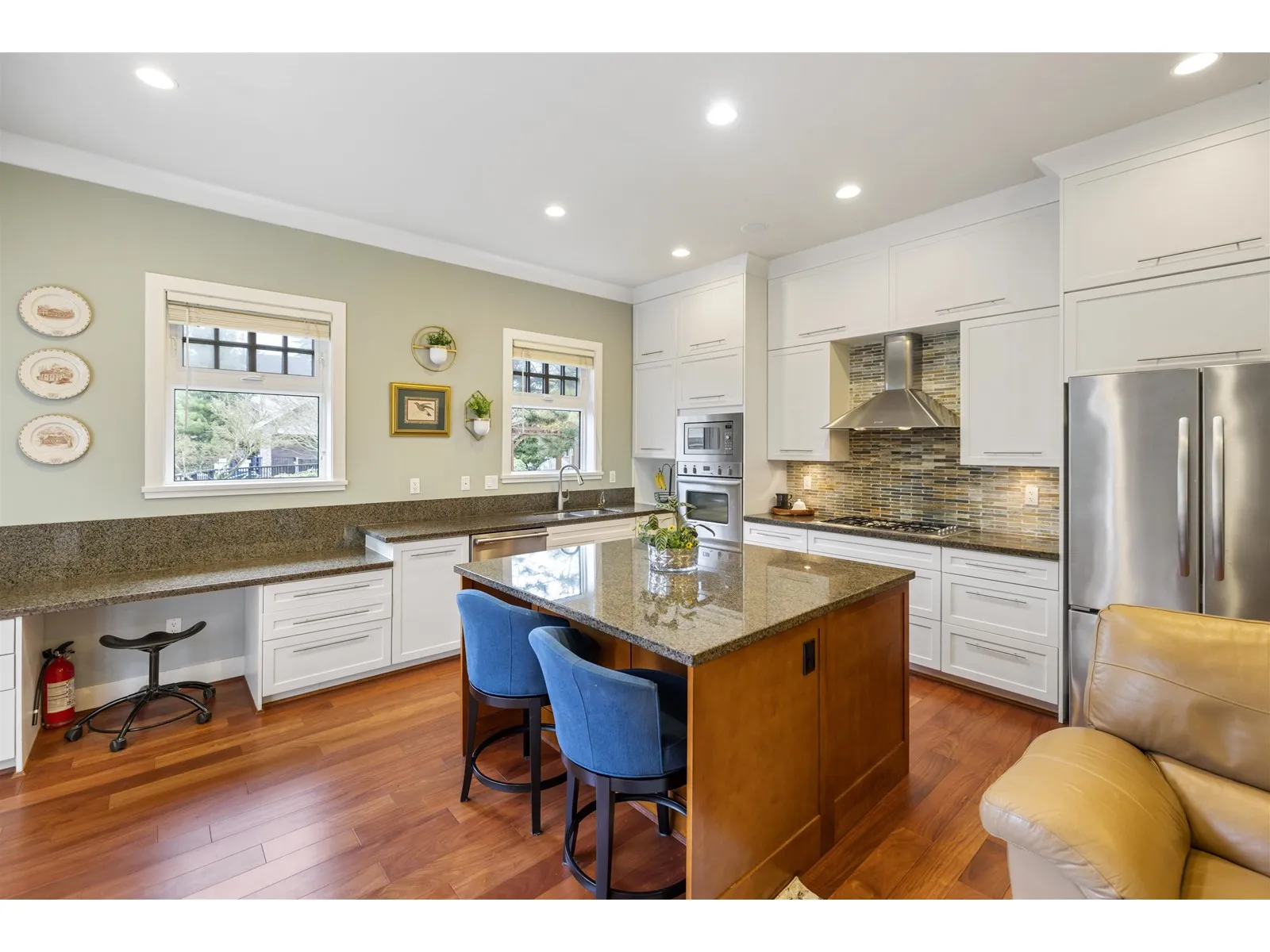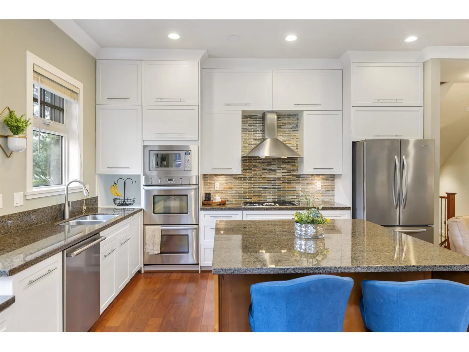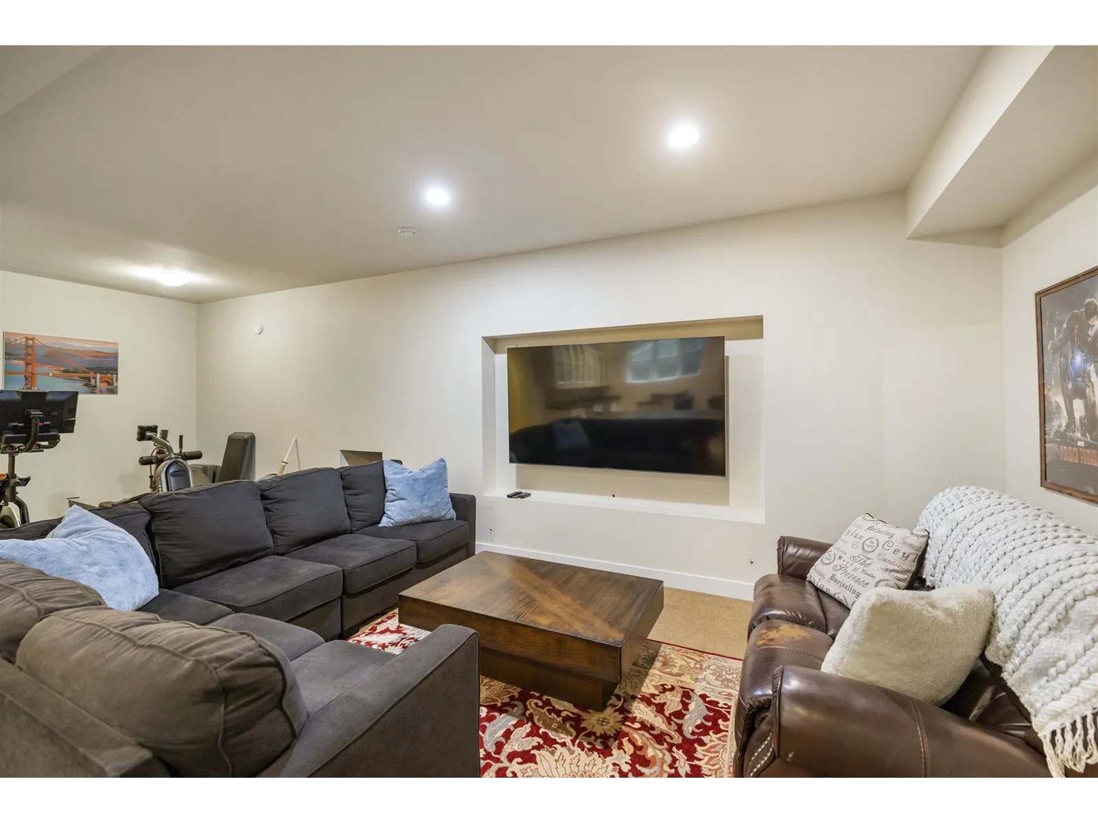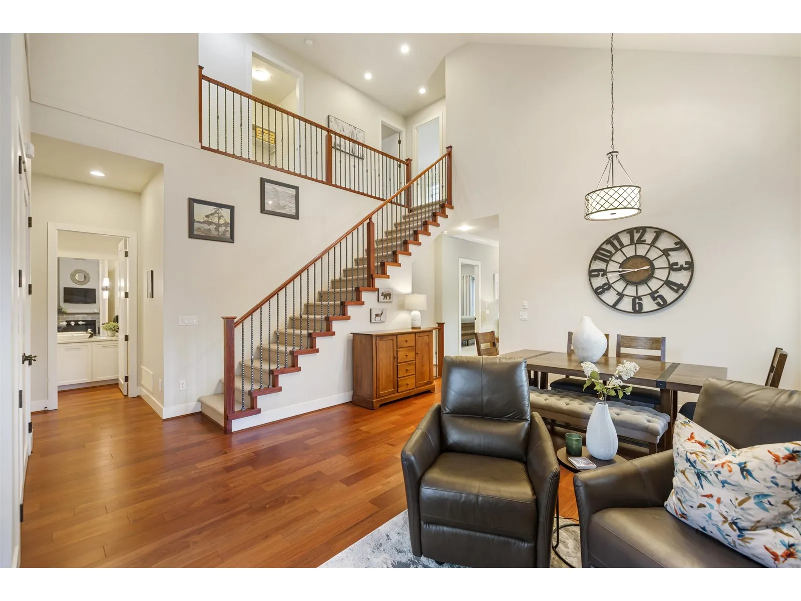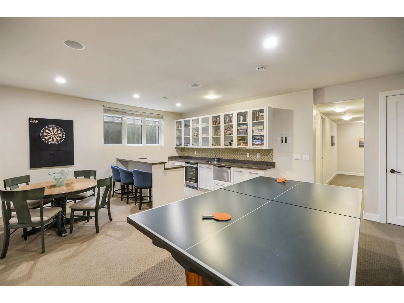 Welcome to WILLS CREEK, where luxury & comfort meet resort-style living. This 3723 sq ft 3-level, duplex-style townhome features 5 beds, 5 bath w/ 2 primary bedrooms, including one conveniently located on the main floor with a beautifully updated ensuite . Entertain in style beneath soaring 20-ft vaulted ceilings in the dining room or step out onto your private patio from the chef-inspired kitchen. The finished basement, boasts a media room and large wet bar-perfect for movie nights or gatherings. Stay comfortable year-round with geothermal heating and cooling. The clubhouse offers a pool, hot tub, and fitness centre, while scenic walking trails weave through the complex. Ideally located near Southridge School, Morgan Creek Golf Course, and Morgan Crossing Mall. This is truly a lifestyle! (id:27476)