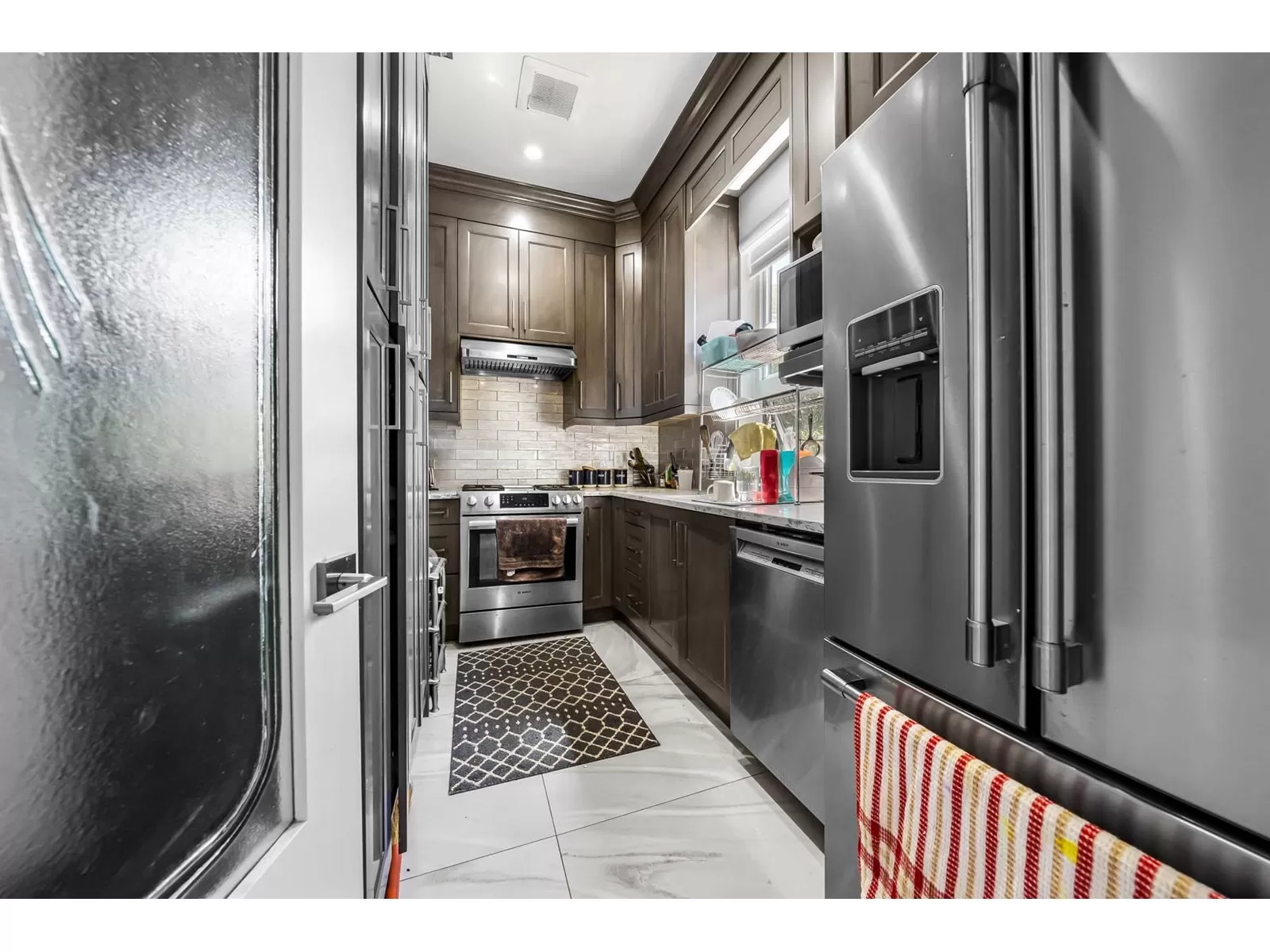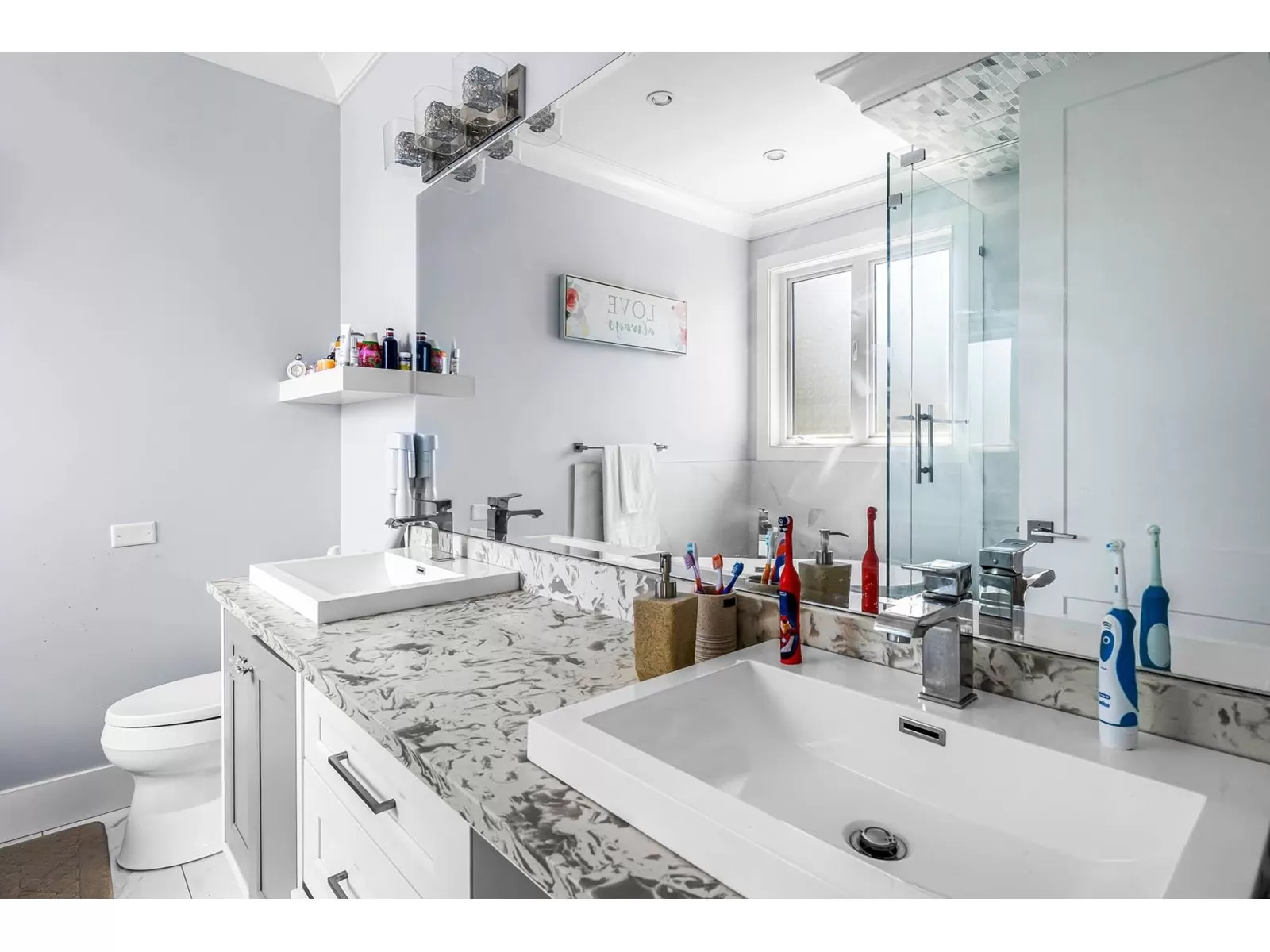 Experience luxury and comfort in this meticulously maintained 5,804 sq. ft. home, situated on a 7,663 sq. ft. corner lot and built in 2019. The main floor boasts soaring 10-foot ceilings, a spacious living and dining area, a bright family room, an open-concept kitchen with a separate spice kitchen, 2 bedrooms, 1.5 baths, and a full laundry room. Upstairs features 4 generously sized bedrooms each with its own ensuite, a large 17' x 15' flex space perfect for a second family room, and 2 private balconies. The basement includes a versatile rec room with a full bath, plus two income-generating suites (2-bedroom and 1-bedroom). Ample parking with space for up to 8 vehicles. Enjoy a large patio in the backyard and a cozy front porch. Located in a quiet, family-friendly neighborhood. (id:27476)