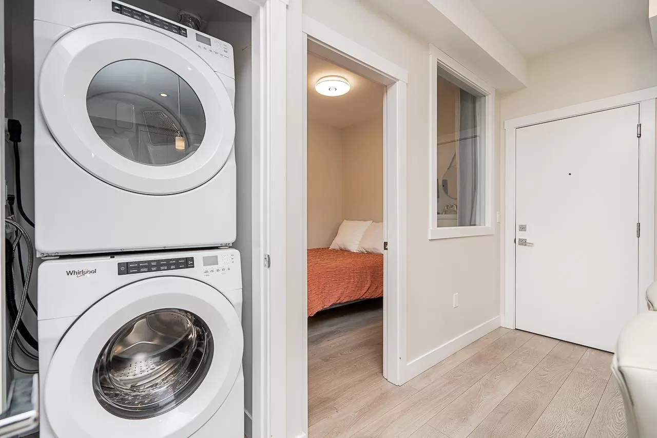 LOCATION LOCATION LOCATION! Welcome to Amson Square in Surrey's most desirable area. This 2 bed 1 bath condo features an open concept Living/Dining, Kitchen with soft close fixtures on all cabinetry for quiet living, engineered quartz counter tops, laminate flooring throughout & stainless steal appliances. Just steps away from local shops, restaurants, and services. Includes 1 parking stall and is FULLY AIRCONDITIONED! (id:27476)